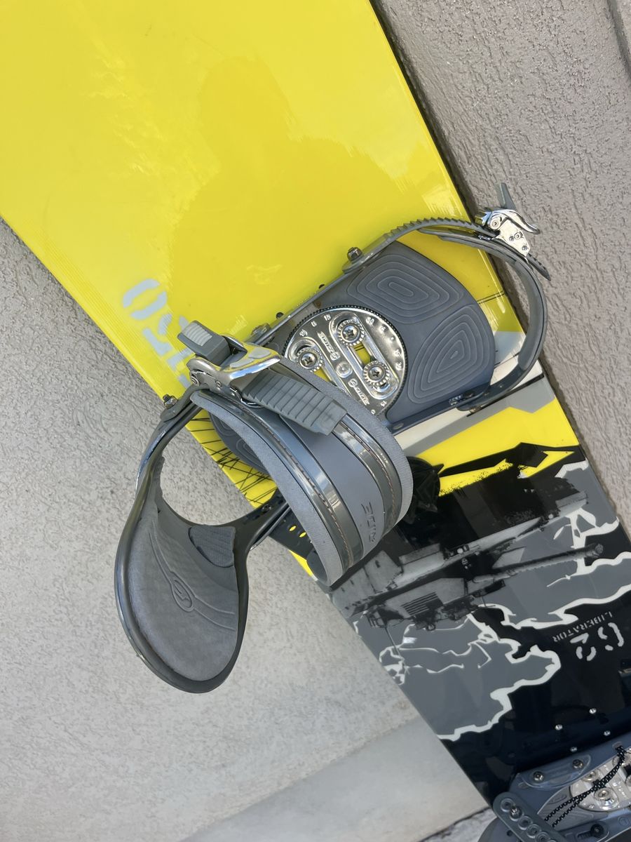 5150 Liberator 162 CM snowboard, extra wide. 10 and three-quarter inch inches wide with ride large bindings check pictures for more details located in Saratoga Springs Venmo or cash.