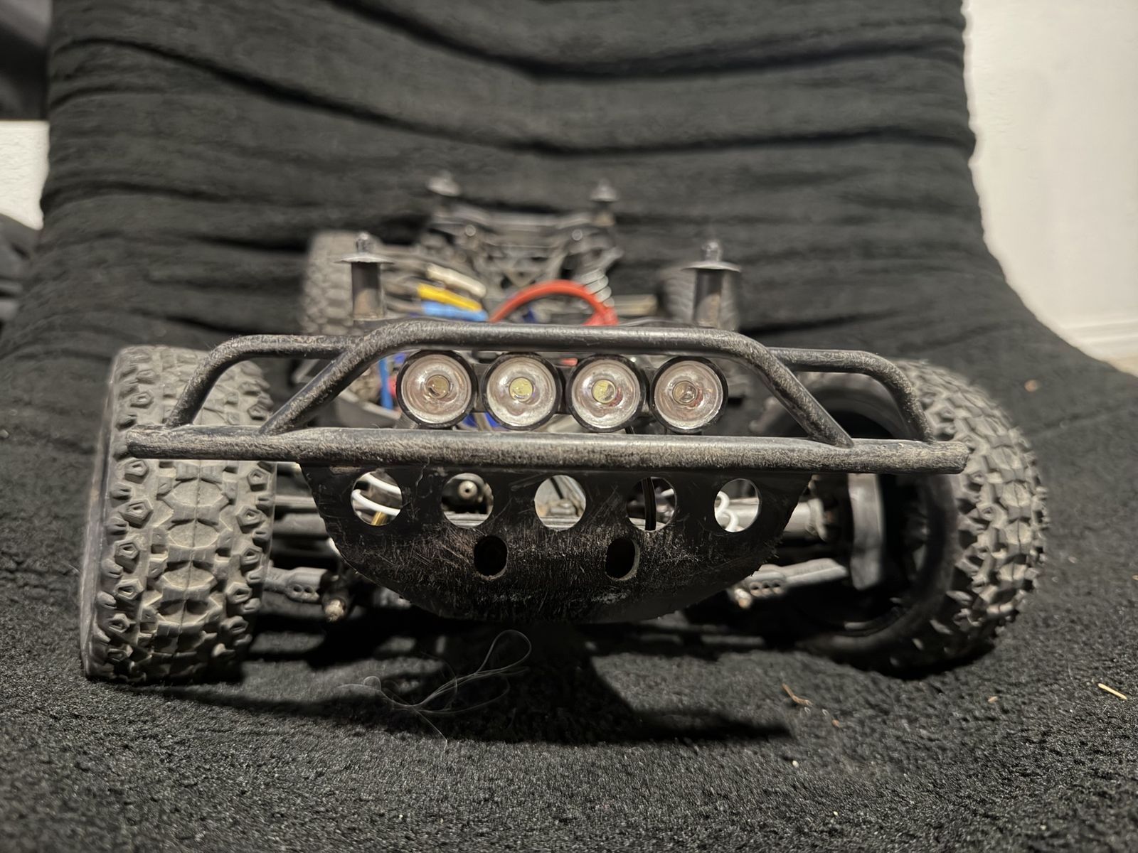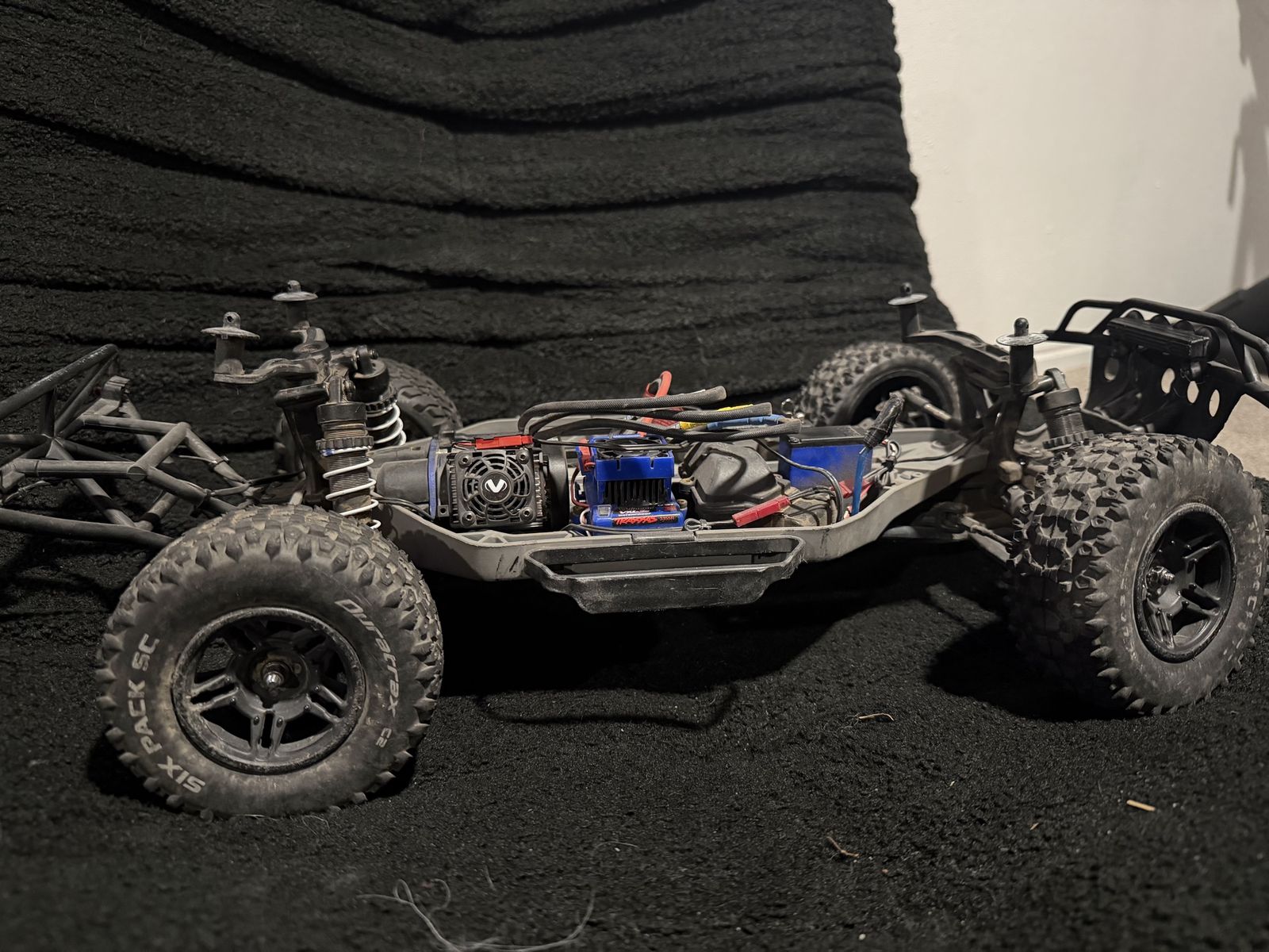 My upgrade list: Duralast c2 six pack sc tires Brushless motor conversion Upgraded driveshaft and driveline New shock towers New body (somewhat) Gtr racing shocks (nicest shocks you can put on a traxxas) Heat sync with fan Ecu fan 14 tooth and 54 tooth gearing (higher top end speed, less torque) Brand new freshly installed rear differential. Upgraded front sway bars Upgraded turning rods Upgraded rpm A-Arms