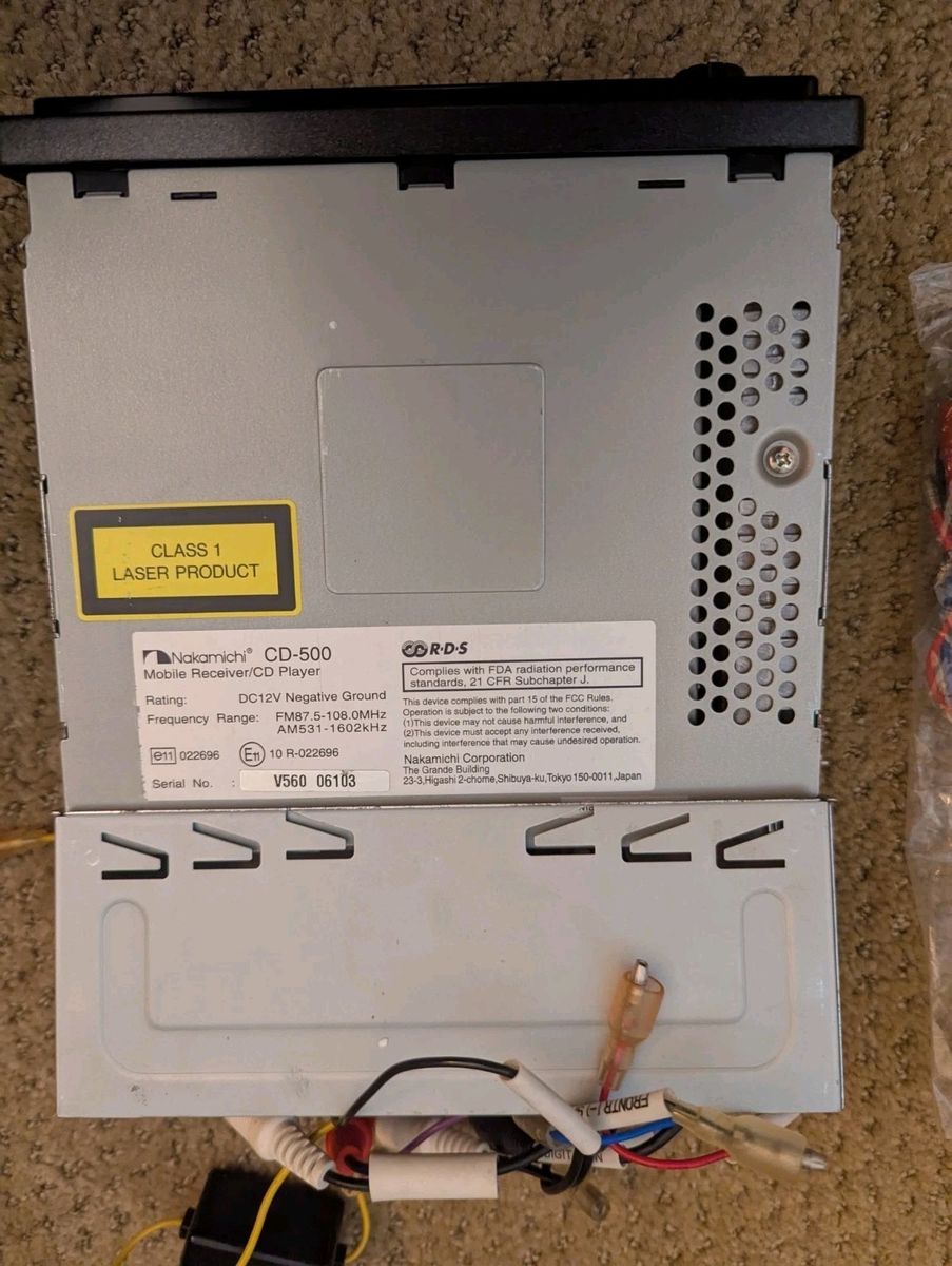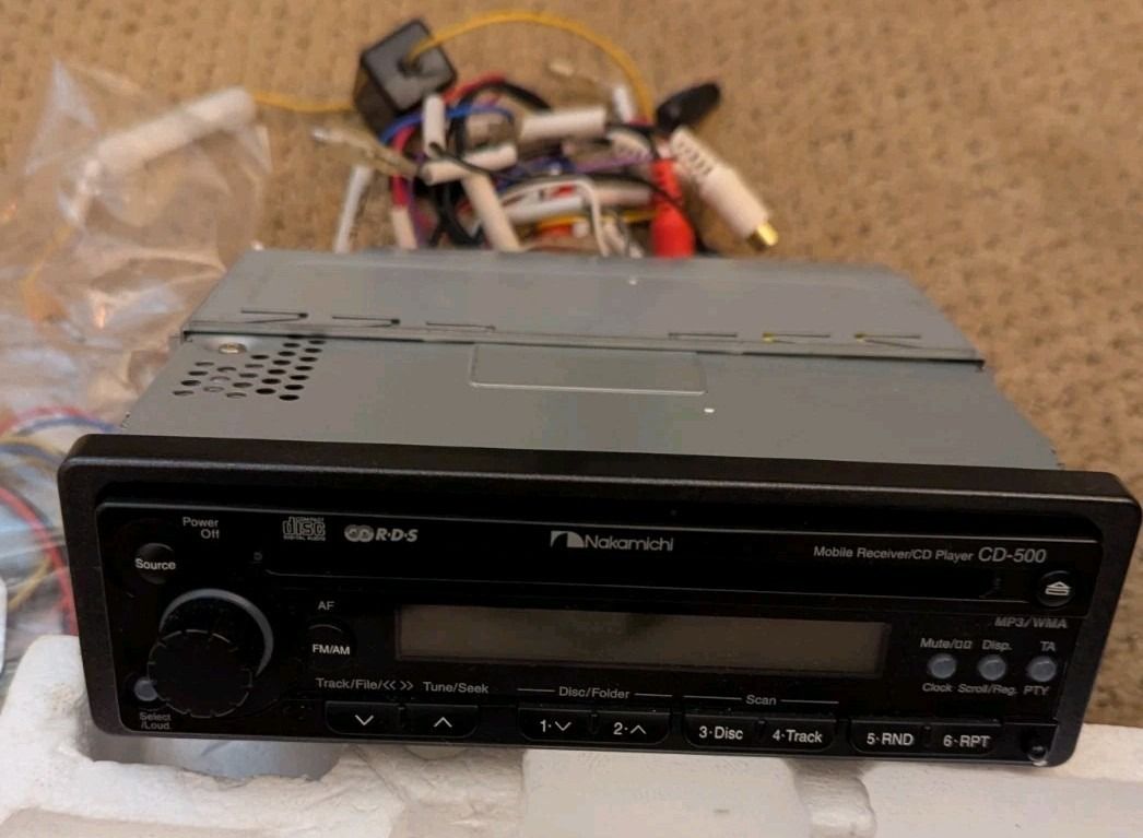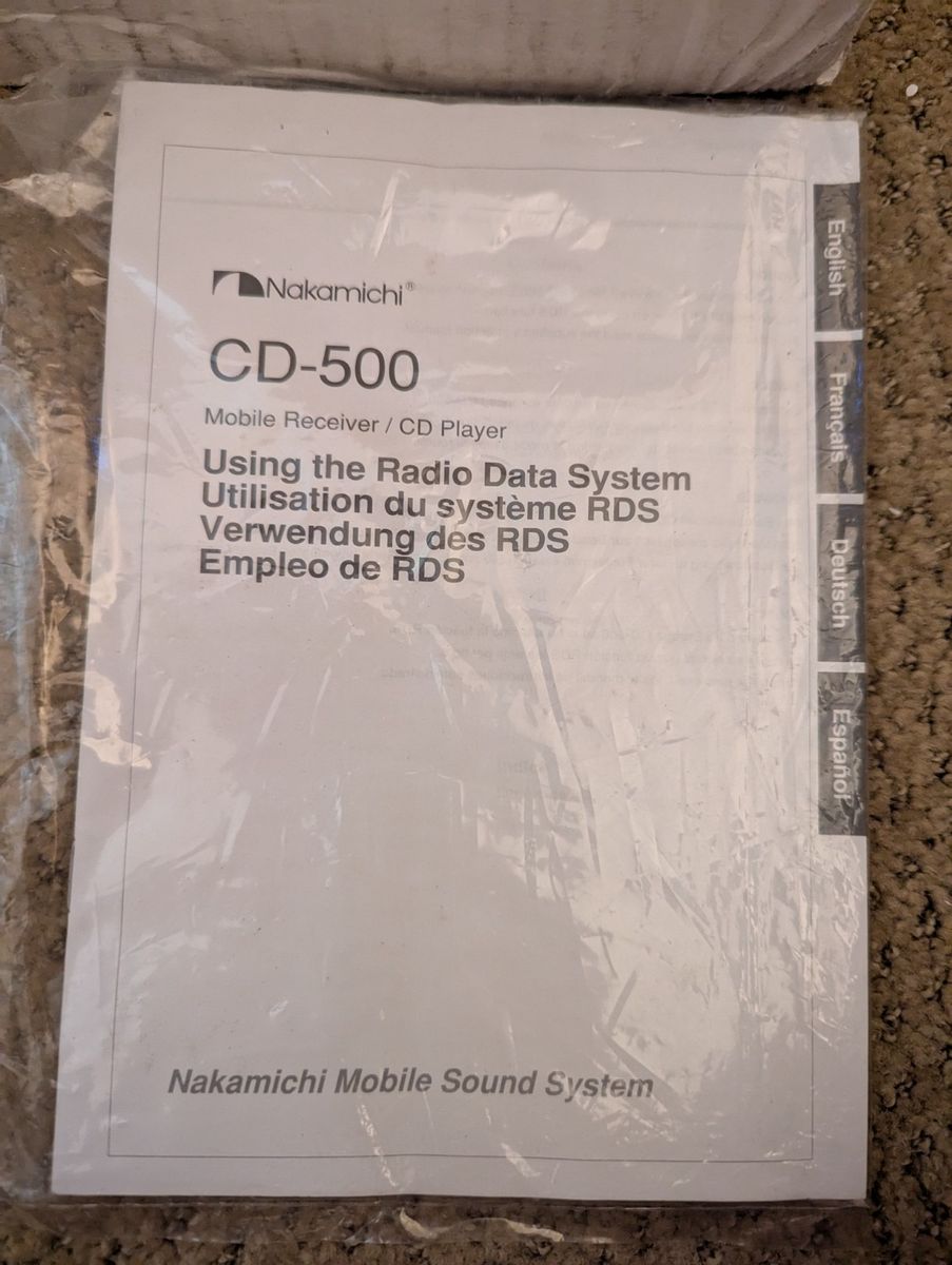 The Nakamichi CD500 is a rare display unit sold as-is. This brand-new, dashboard-mounted audio unit delivers high-quality sound performance and features a CD player, making it a sought-after choice for car audio enthusiasts. With its sleek design and superior sound quality, the Nakamichi CD500 is a valuable addition to any car audio system.