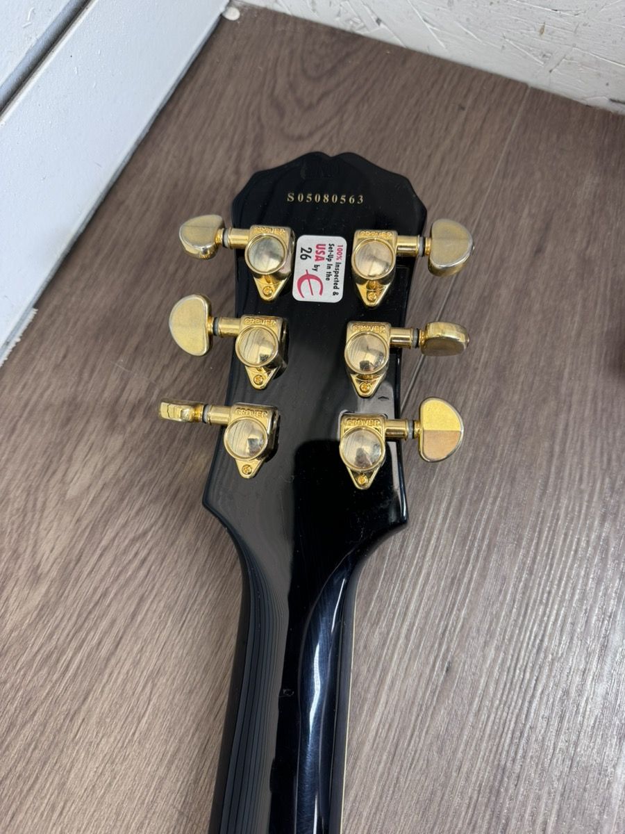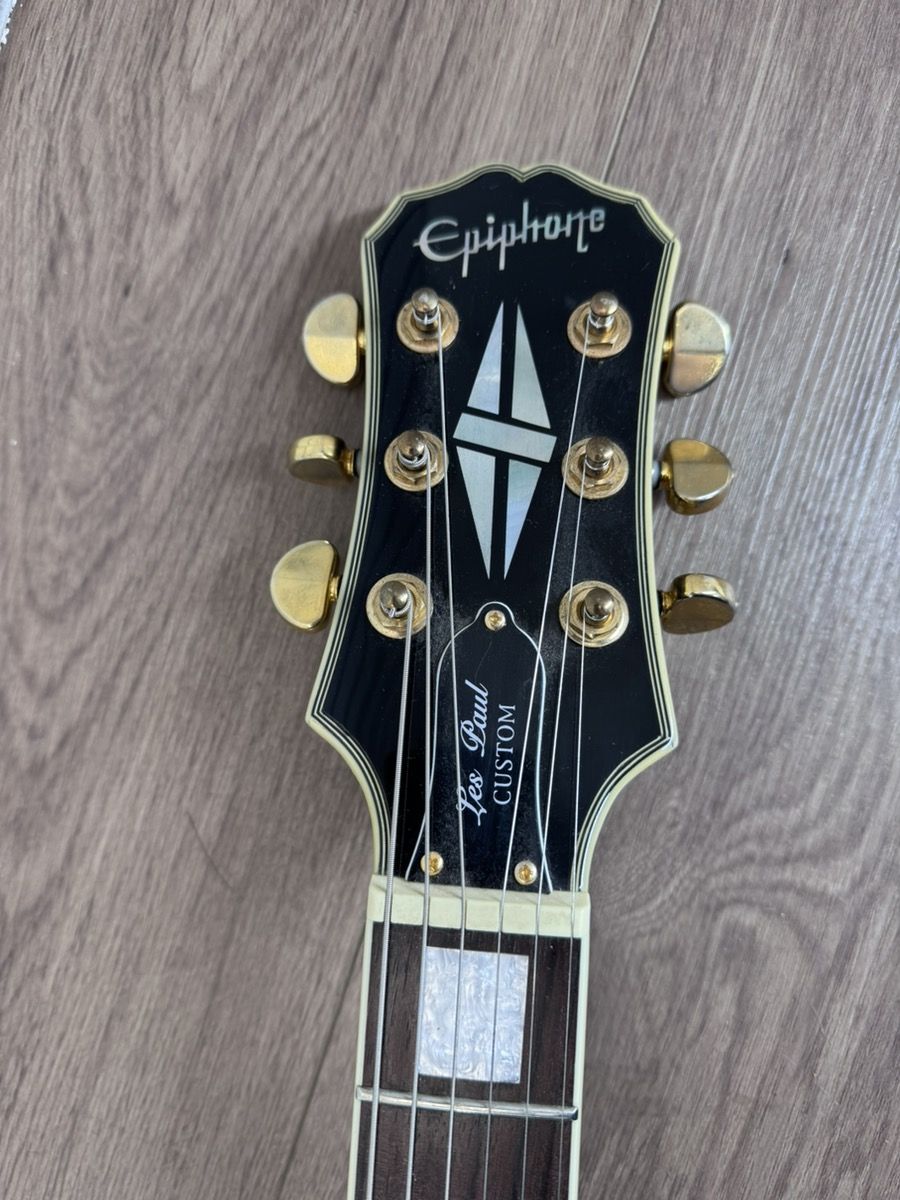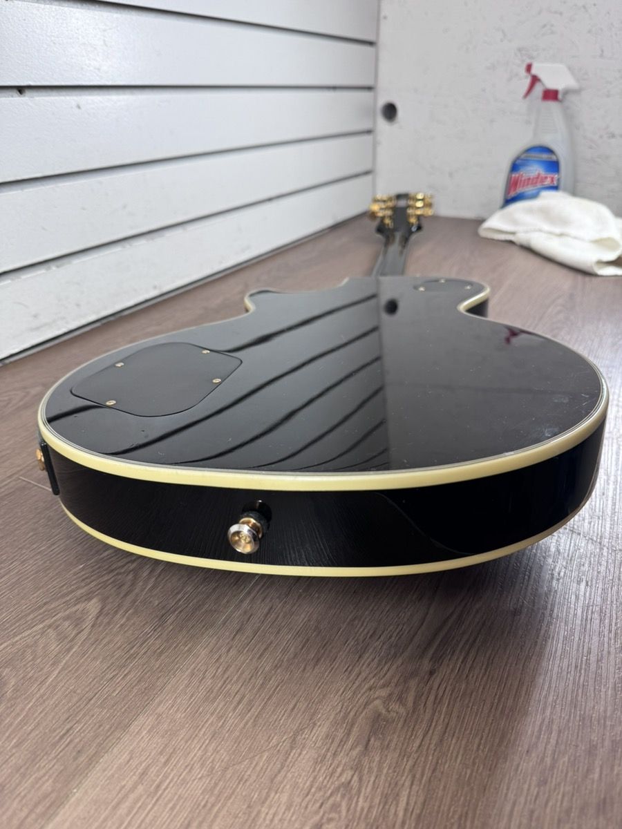 ZelleELECTRIC GUITAR: EPIPHONE MODEL LES PAUL CUSTOM, BLACK EBONY, SERIAL NUMBER S05080563, 6 STRING, RIGHT HANDED, NO CASE