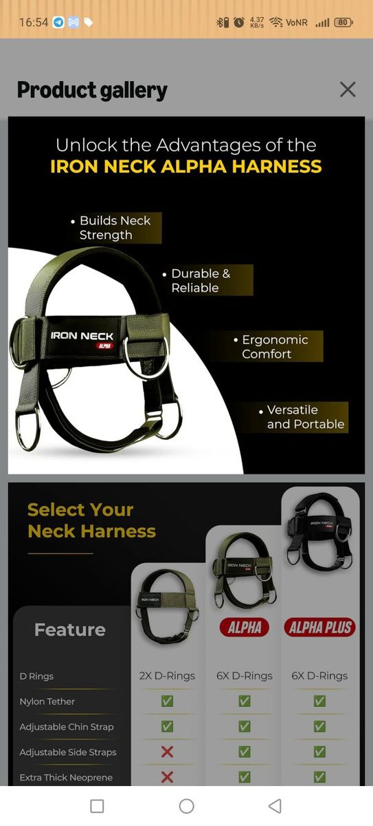 ADVANCED ERGONOMIC NECK TRAINER: This neck strengthener allows for side-to-side, up-and-down, and rotational movements. Featuring a 43-inch nylon tether and two carabiners to support small weight plates, this neck exerciser helps you build muscle strength comfortably and effectively. VERSATILE NECK HARNESS FOR STRENGTH TRAINING: A strong neck can improve athletic performance and contribute to overall strength and endurance. The Iron Neck Alpha neck harness for weight lifting is suitable for boxers, wrestlers, MMA fighters, weightlifters, athletes, and anyone aiming to strengthen their neck muscles. ADJUSTABLE AND SECURE FIT: This neck harness weight lifting tool fits most head sizes comfortably. The adjustable quick-fastening strap and chin strap of this exercise equipment are designed to keep your head and neck stable during exercises. PORTABLE NECK WORKOUT EQUIPMENT: The Iron Neck Alpha offers exceptional versatility for neck strengthening. This neck exerciser is lightweight and portable - a great gym accessories for men for training at the gym, on the road, or at home. METICULOUSLY CRAFTED AND DESIGNED: Made with breathable nylon and reinforced stitching, this neck trainer provides superior durability. Two tough D-ring metal connectors and an adjustable chin strap ensure long-lasting performance and comfort.