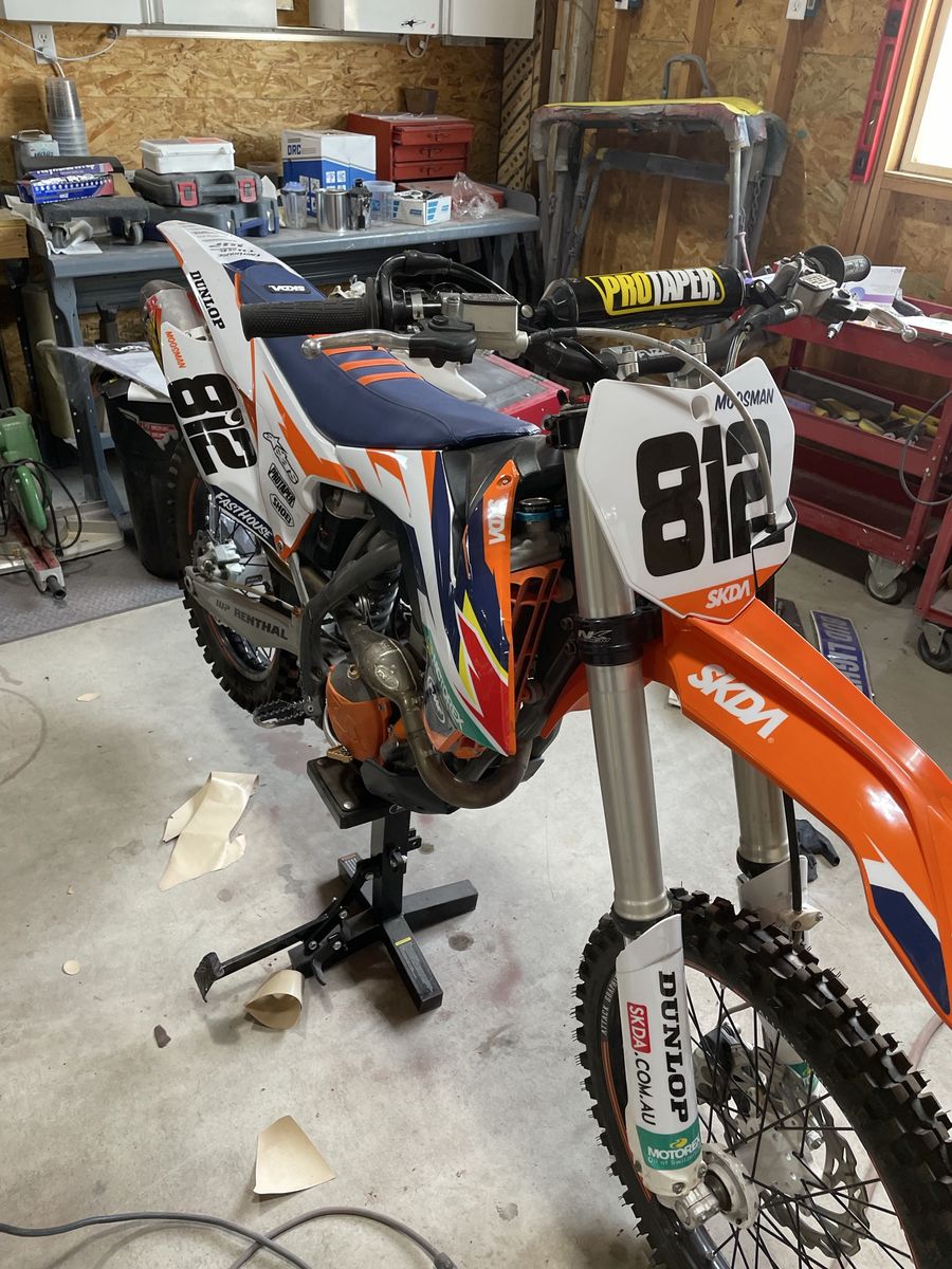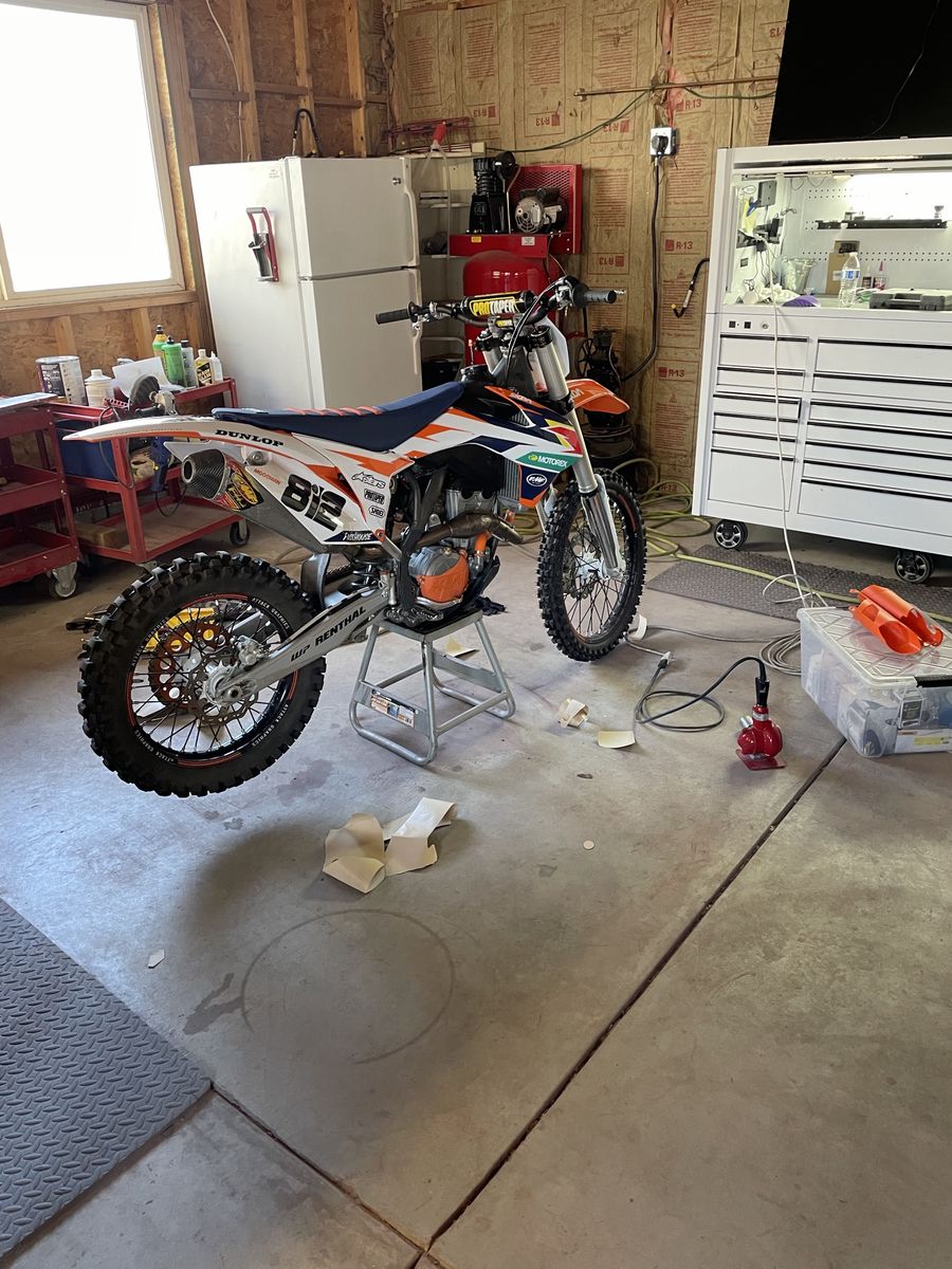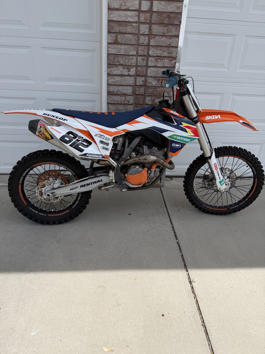 2014 ktm 350 sxf in amazing condition, awesome bike that is the perfect mix of 450 speed with 250 handling. Bike full of aftermarket parts including brand new plastics and graphics and FMF pipe and silencer, newer rims and tires, protaper bars, odi lock on grips, and more I’m probably forgetting. The bike also has electric start. There’s nothing wrong with the bike the only reason I’m selling is to get something newer.