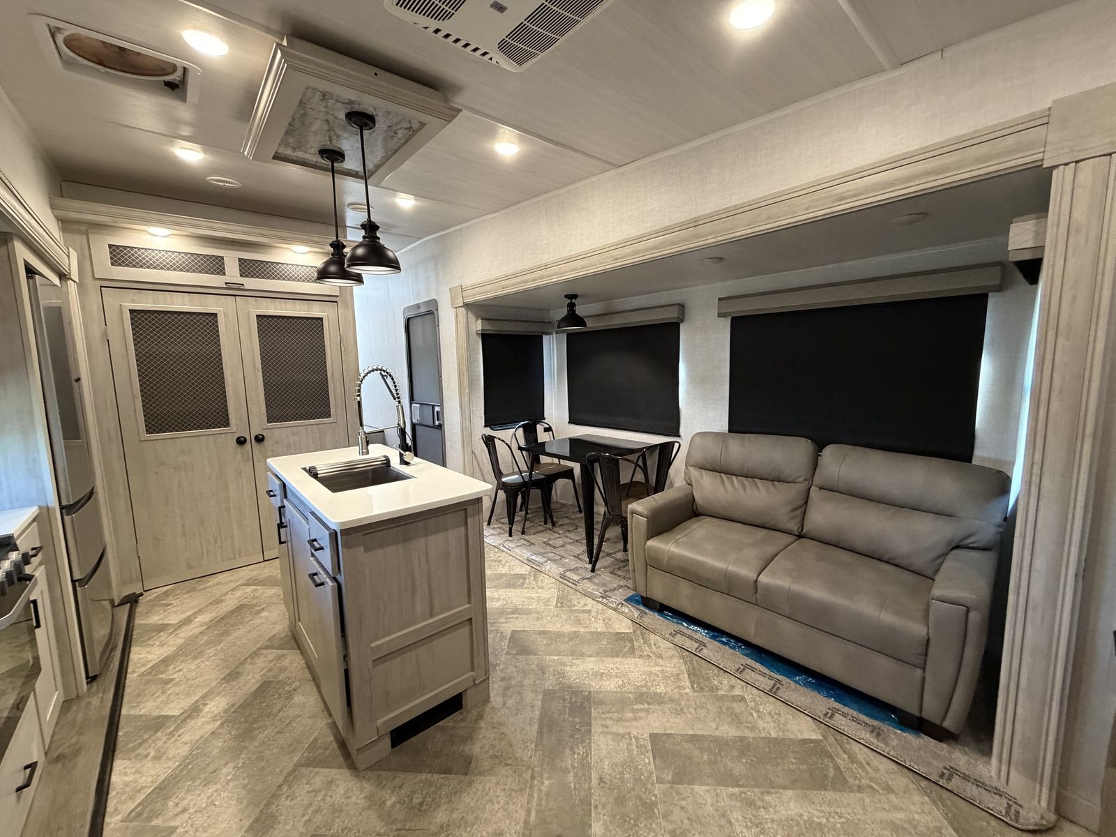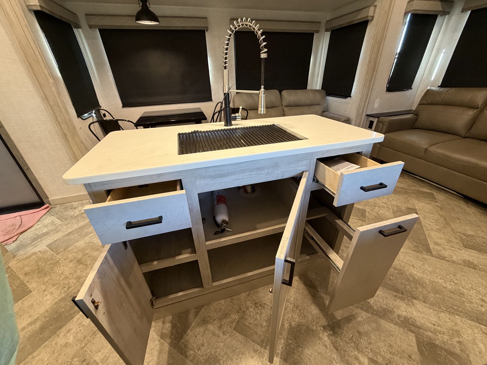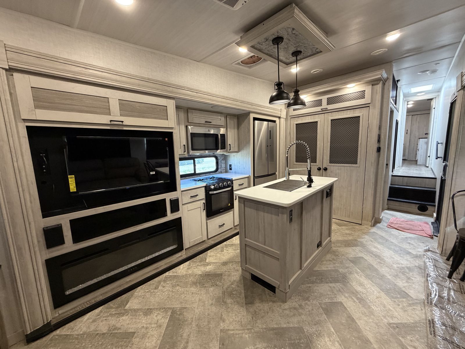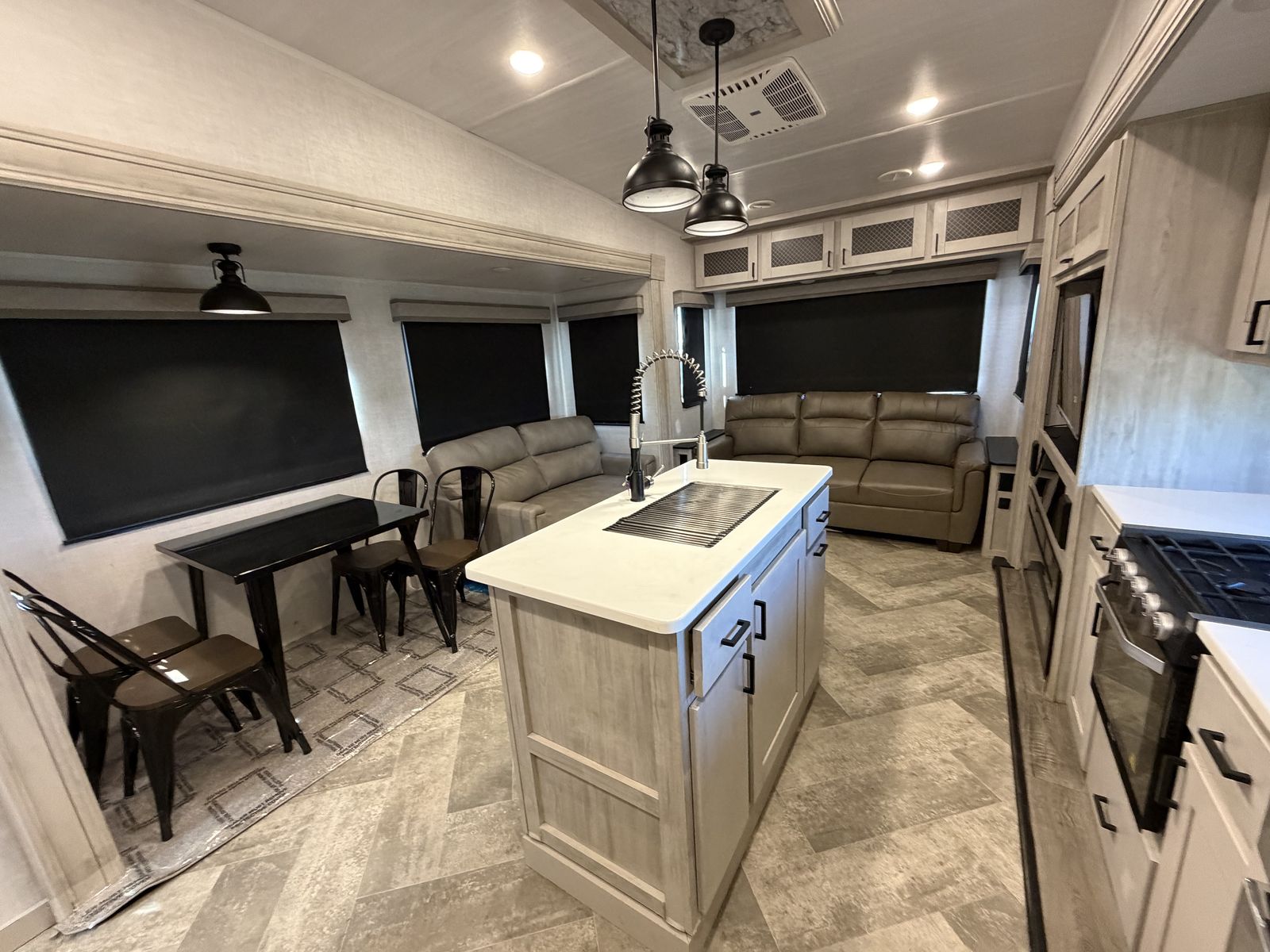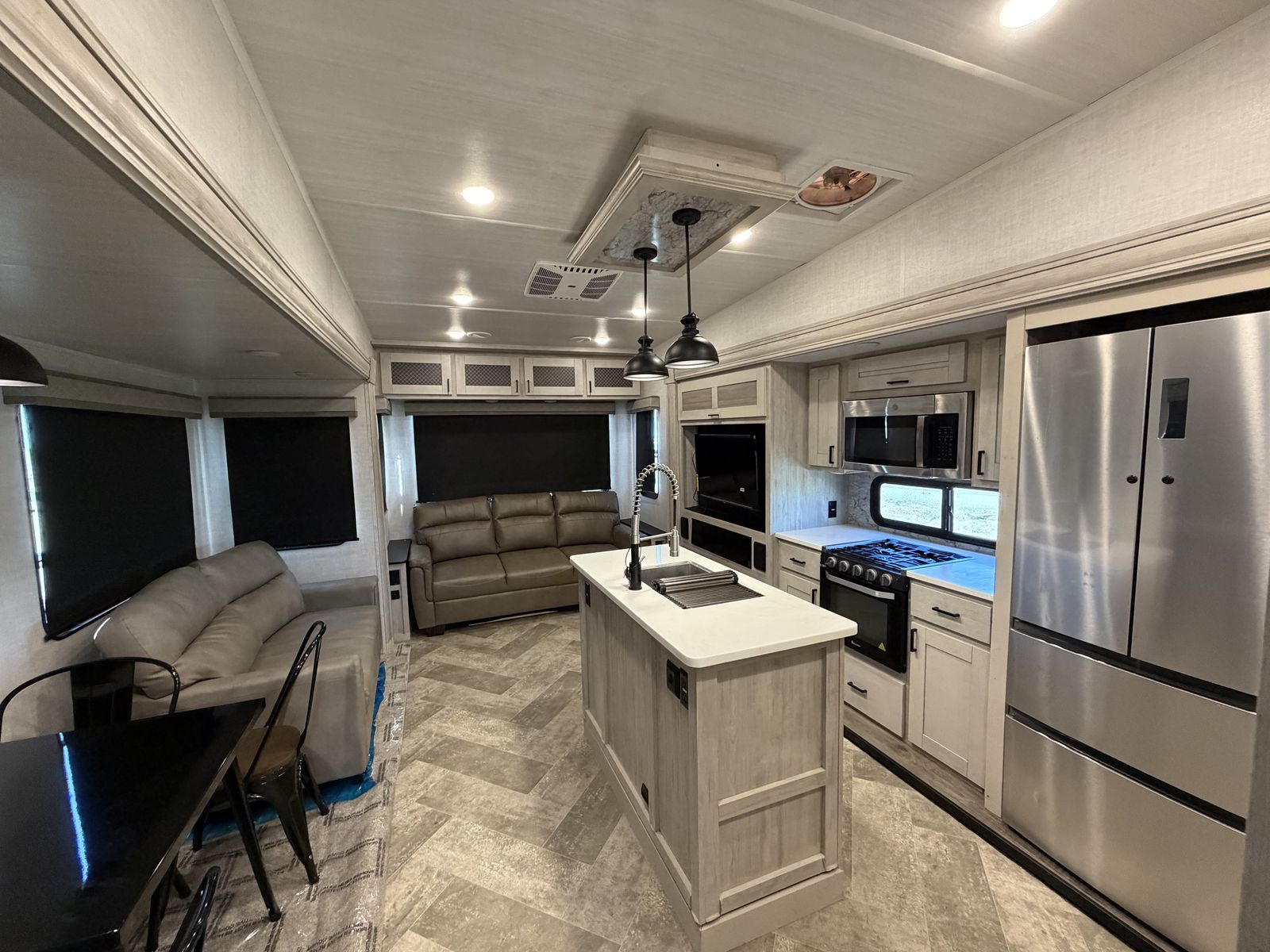 ️ Private mid-bunk room (office / kids / guests) ️ Huge rear living room with opposing slides ️ Residential kitchen — with Stainless french door fridge ️ King bed master suite with Washer/Dryer hook-up's in closet ️ Sleeps 9-11 guests comfortably