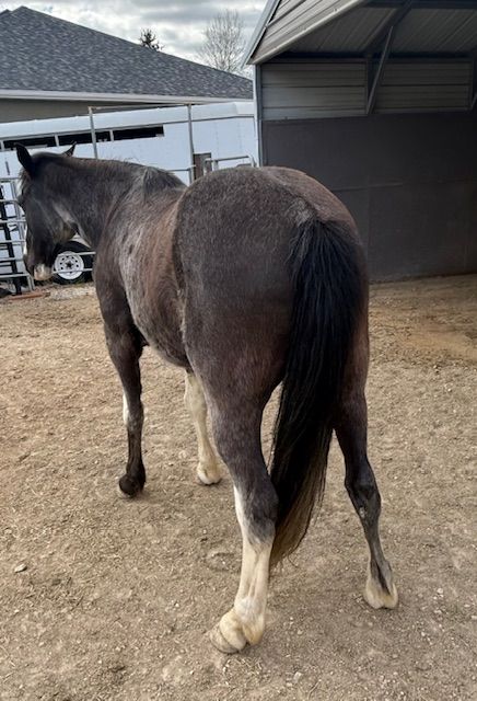 No bite, no buck, no bolt. Good ground manners. Patch is wicked smart - he catches on to clear direction and wants to please. The ideal home for Patch is someone who knows their way around horses and needs a good using horse.