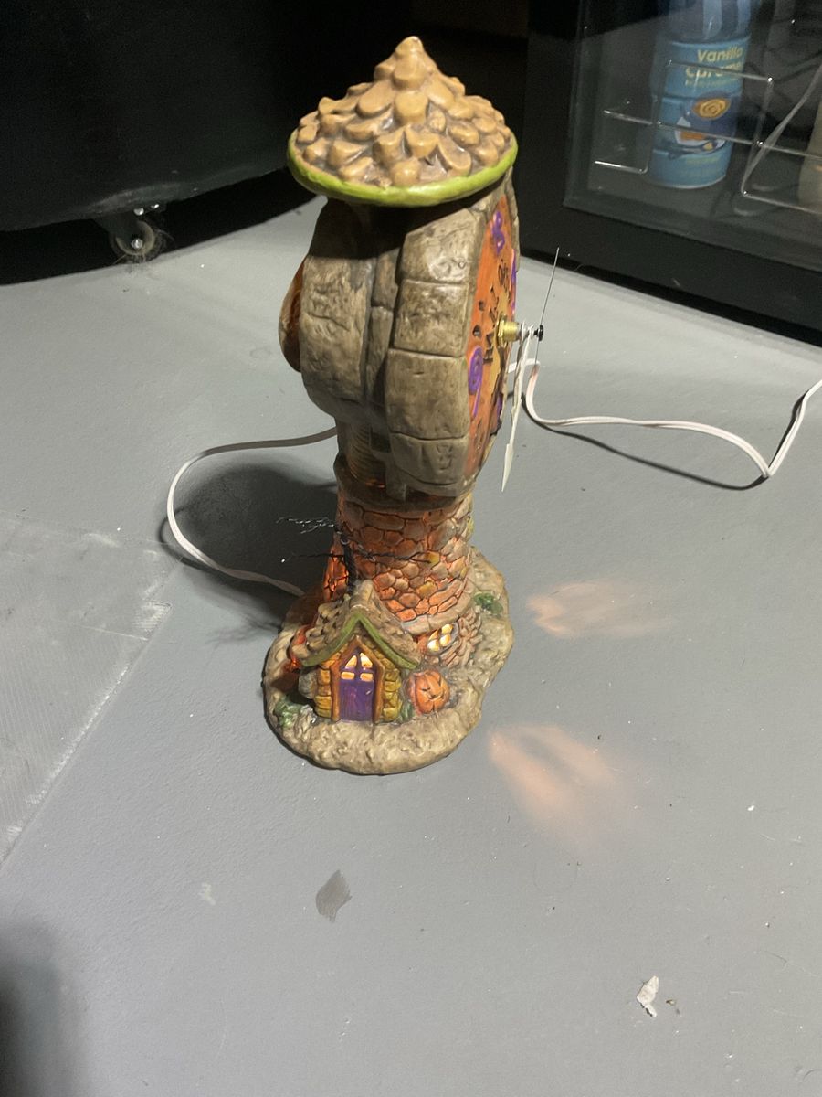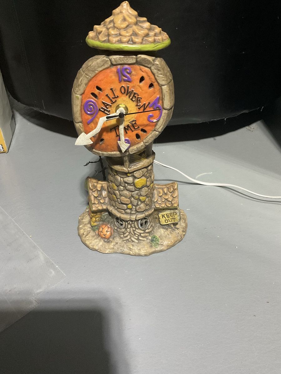 Has a new clock mechanism light works great. No damages Option of light on or off by a switch Clock works with AA battery
