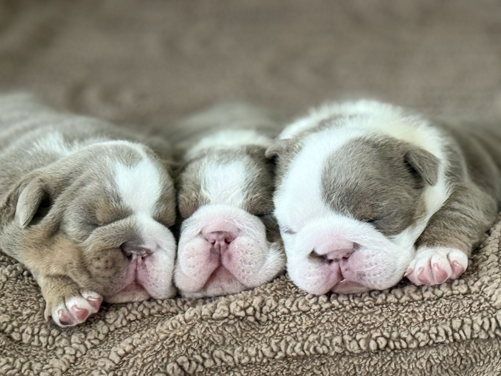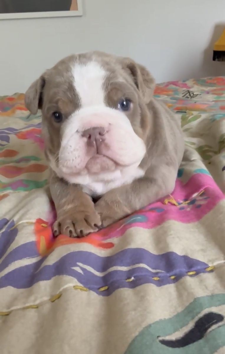 We made our puppy pick of the litter! Meet Ariel, daughter of Sir Leo. She has her daddy’s perfect personality. English bulldogs are very well tempered and the perfect family dog.