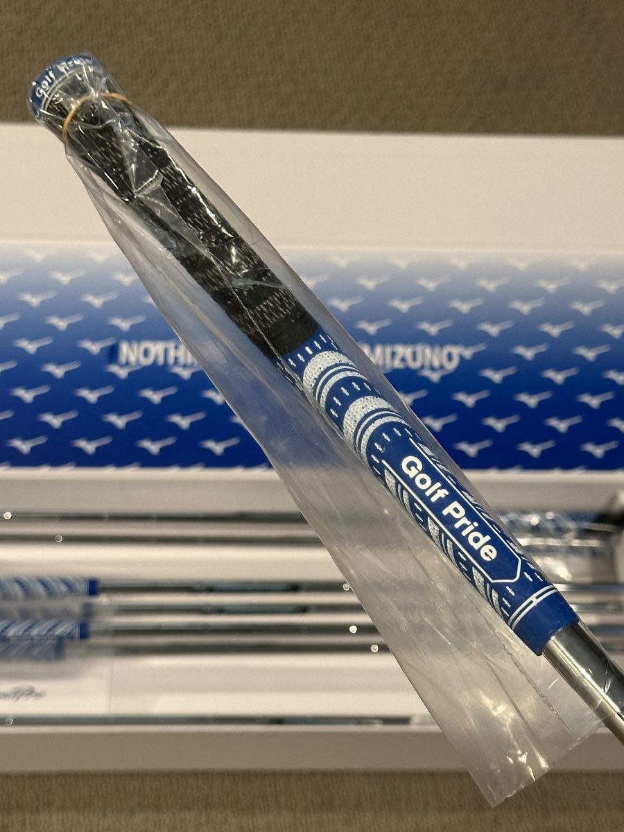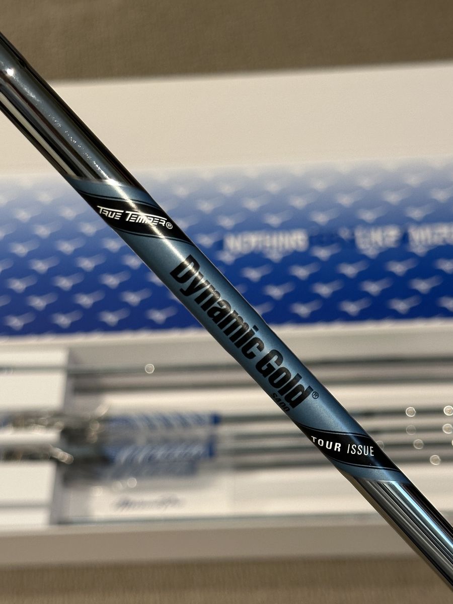 Steel Dynamic Gold Tour Issue S400 shafts with Blue-White Standard Golf Pride MCC grips and Blue-White ferrules.