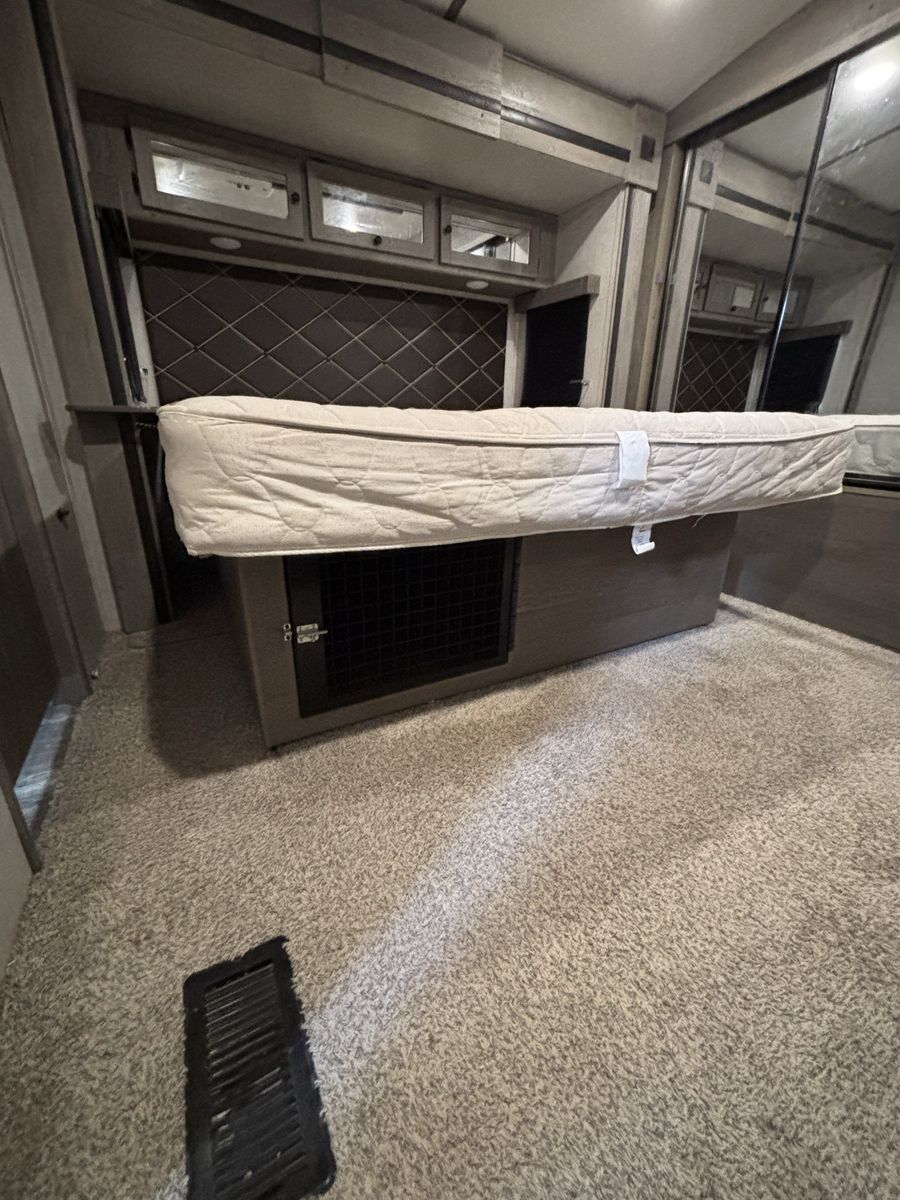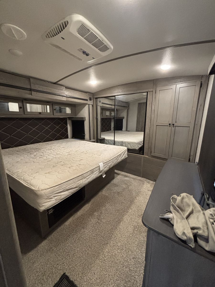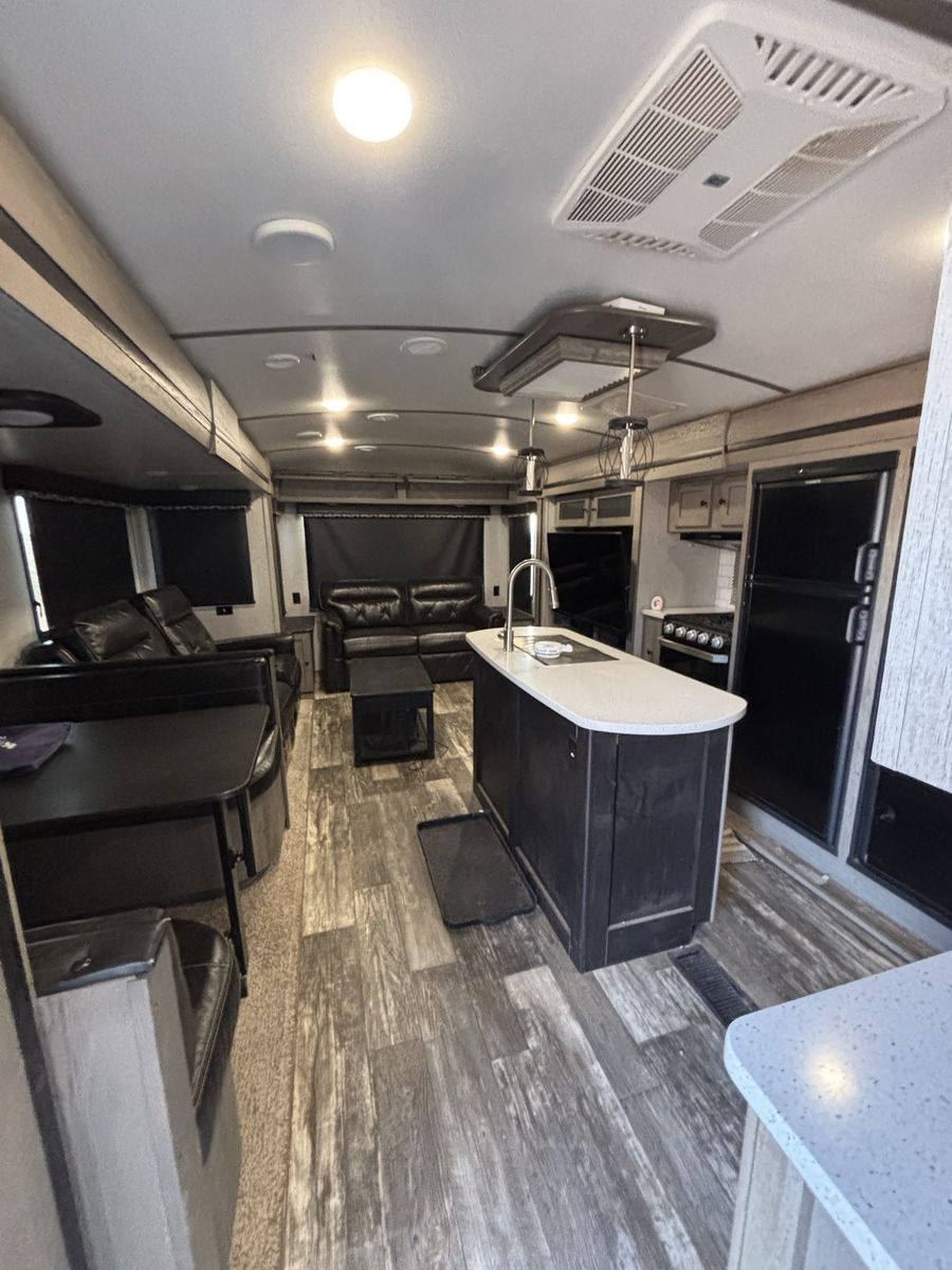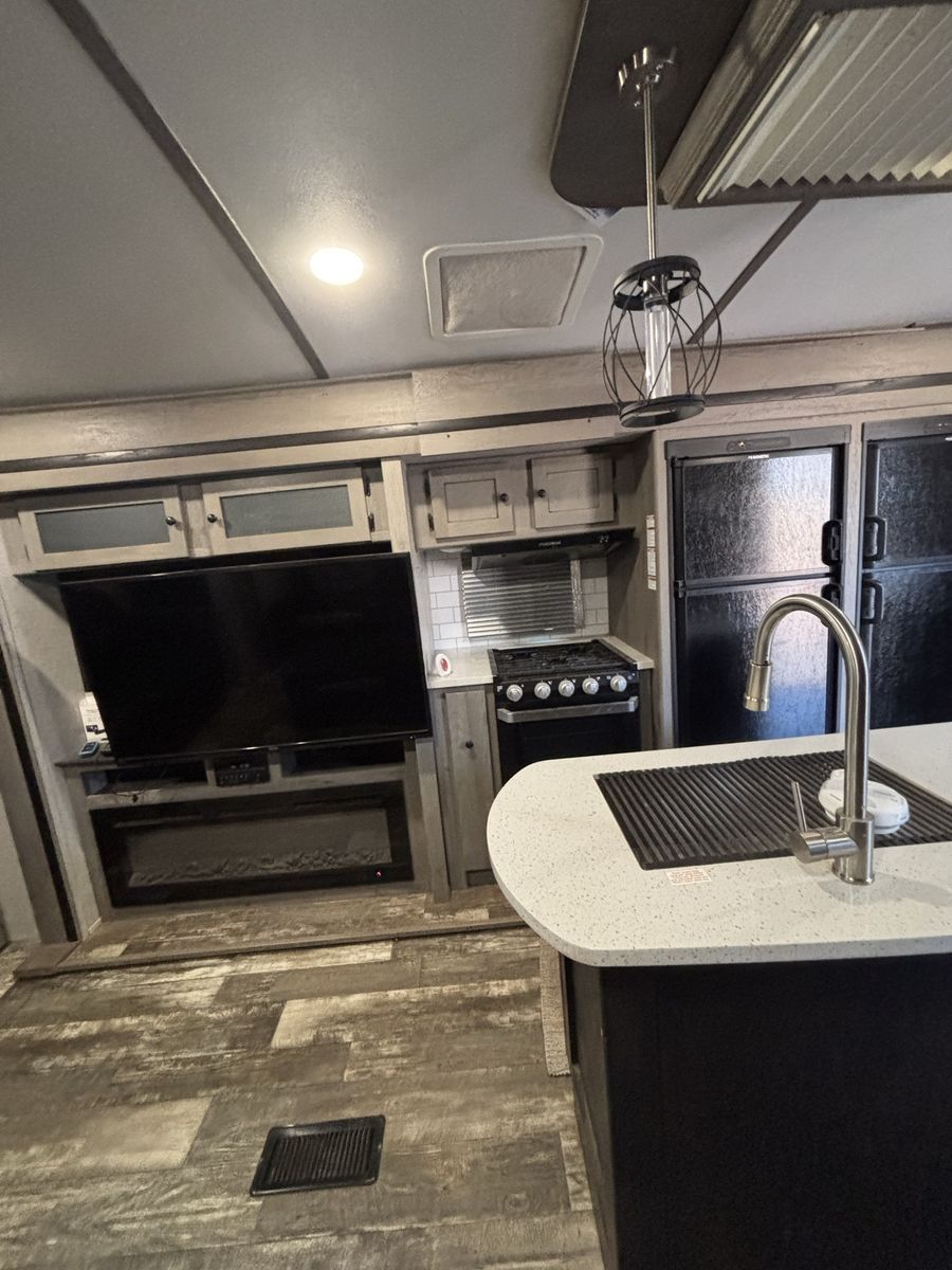 Super nice camper we just don’t have a need for it anymore. Has a fire place in the living room that is electric and then then heater for the whole camper is propane. It has the 2 fridges which is super nice. The dining table turns into a bed and the couch turns into a pull out bed. There is a dog kennel under the master bed and a large storage compartment. Has the arctic package. Let me know if you want more pictures or to come see it! Price is OBO