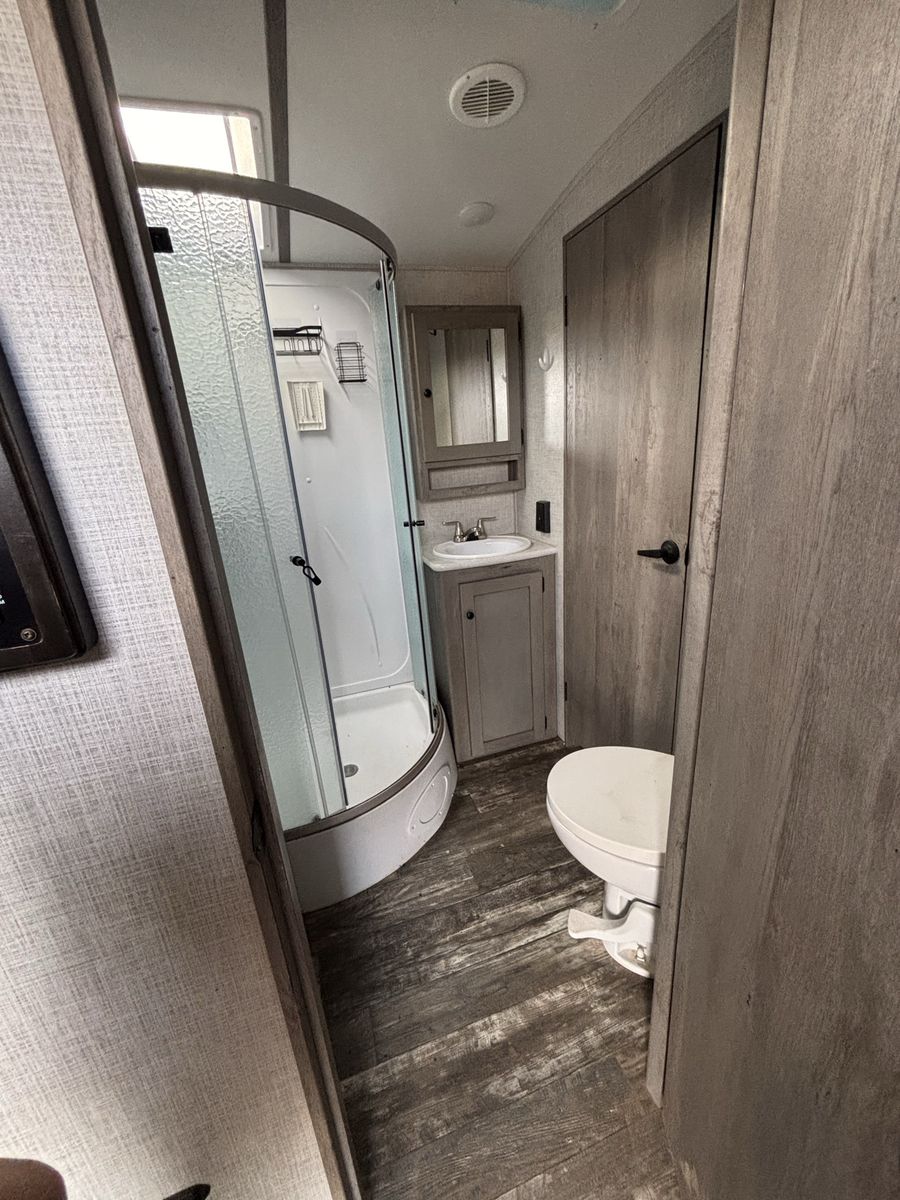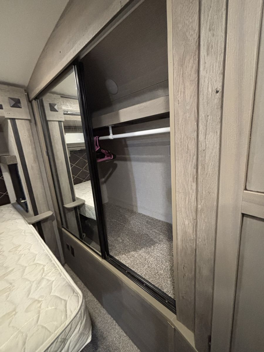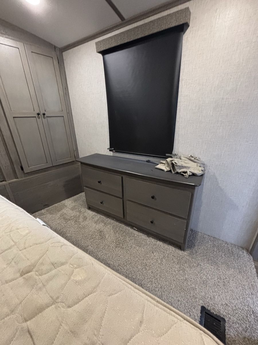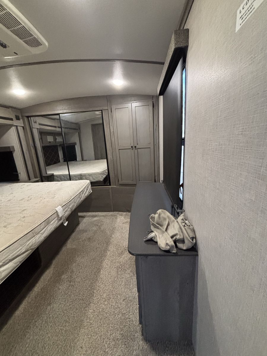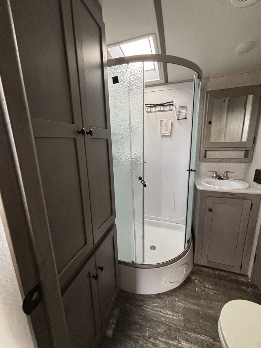 Super nice camper we just don’t have a need for it anymore. Has a fire place in the living room that is electric and then then heater for the whole camper is propane. It has the 2 fridges which is super nice. The dining table turns into a bed and the couch turns into a pull out bed. There is a dog kennel under the master bed and a large storage compartment. Has the arctic package. Let me know if you want more pictures or to come see it! Price is OBO