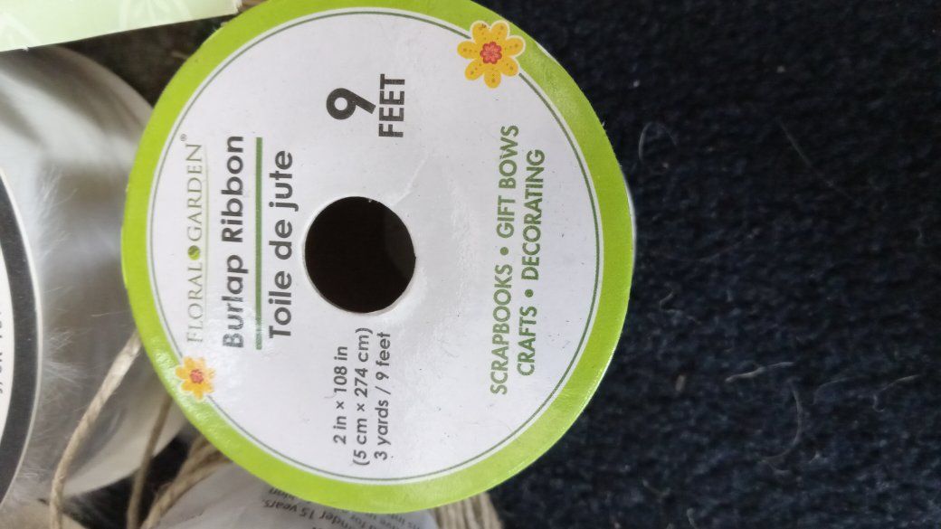 VenmoBurlap Ribbons, Burlap Garland, Raffia, Jute Cord, White Decorative Trim, and Jumbo Roll. all this stuff is in brand new condition. retail price for all this is around $80 worth and im only asking 40$