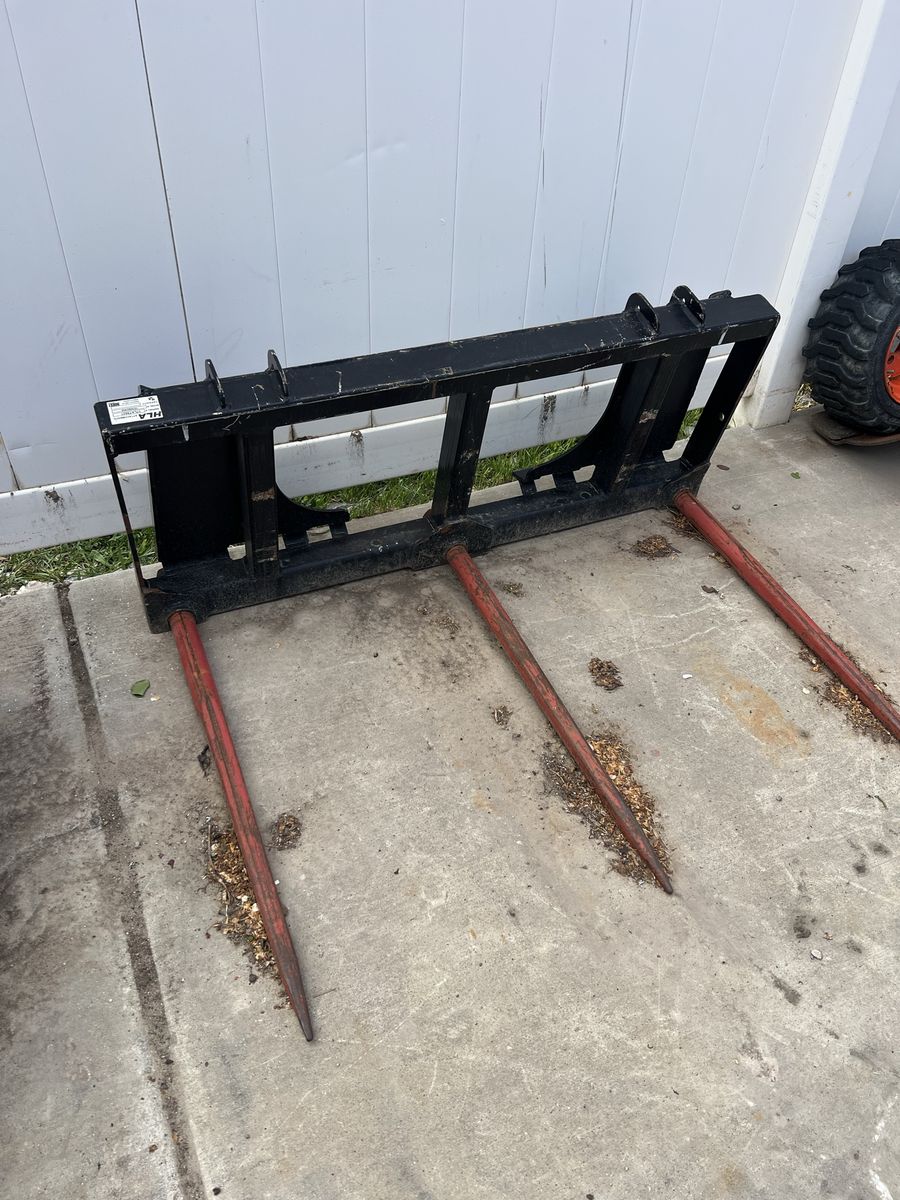 This is a skid steer style quick connect set of hay spears. Thick metal, well made