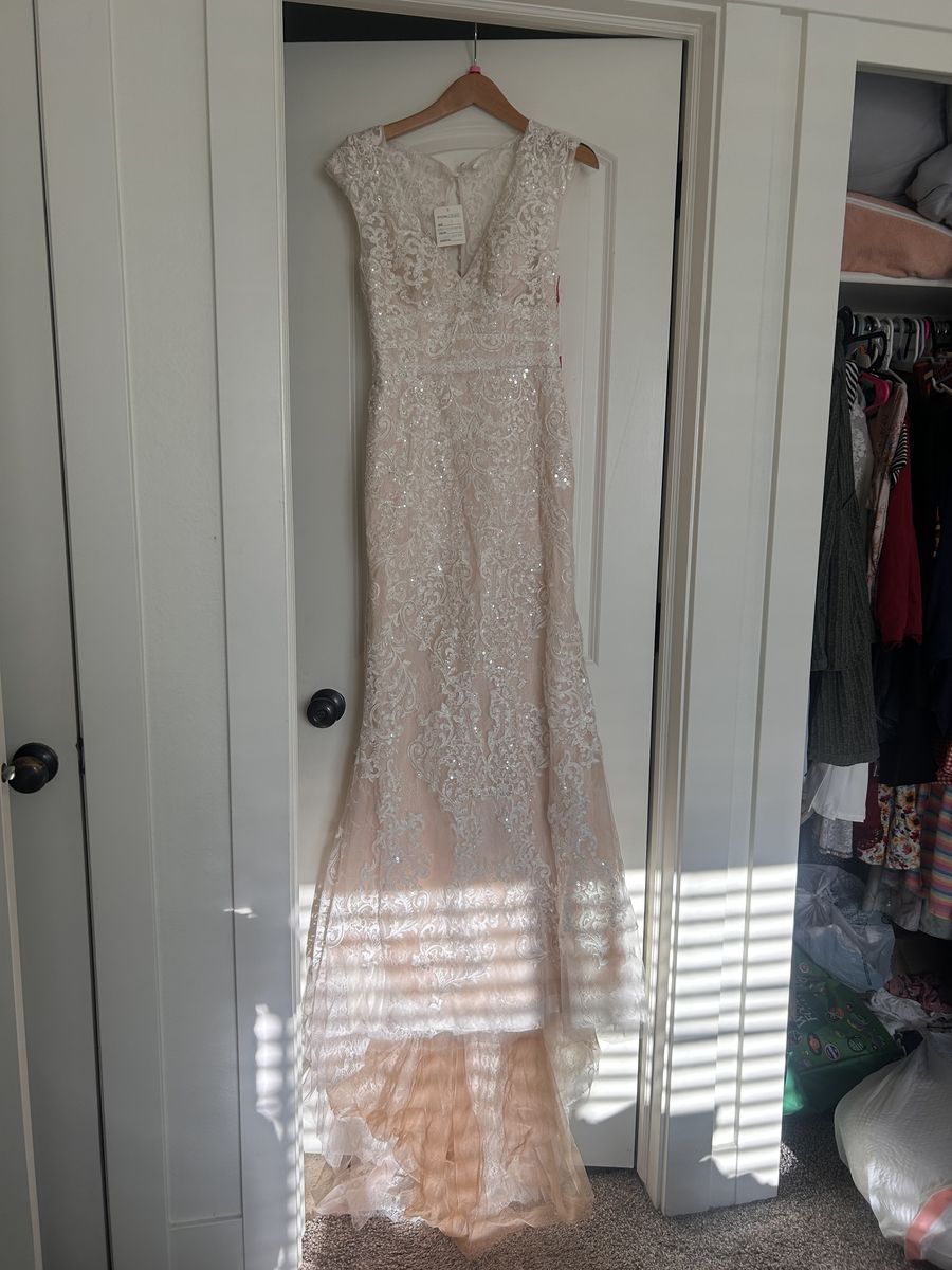 VenmoMake your special day unforgettable with this breathtaking Oleg Cassini designer dress. This gown is the perfect blend of elegance and romance, featuring intricate lace detailing and a flattering silhouette that will make you feel absolutely beautiful.