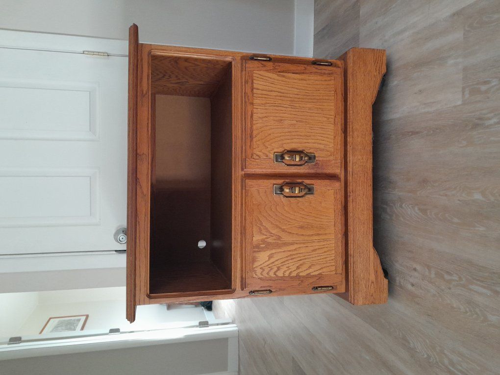 tv stand with cabinet bottom on wheels approximately 2ft deep, 3ft wide, 3ft tall