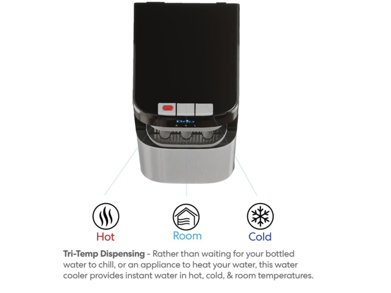 Brand new in box, Brio 400 Series 2-Stage Filtration Water Dispenser Tri-Temp, Connects to your water line, Height 41.05" Sleek Design: The 40-inch tall cooler is slender enough to fit perfectly in any home or office space while adding to your unique interior aesthetics. Advanced Filtration: Revolutionary filters remove a vast array of harmful contaminants commonly found in tap water, such as dirt, dust, and chlorine, with a filter capacity of 950 gallons. Bottle-less Technology: Enjoy a free, unlimited water supply right in your own home with a user-friendly installation process. Tri-Temperature Dispensing: Dispense filtered cold water as low as 39 degrees, hot water up to 194 degrees, and room temperature water for the perfect beverage on any occasion. Replacement Filters: For replacement filters, search for MIB200PKF" 2-Stage Filter Replacement Kit. Health and Convenience: Experience a water cooler that brings safety, health, and convenience to your fingertips.