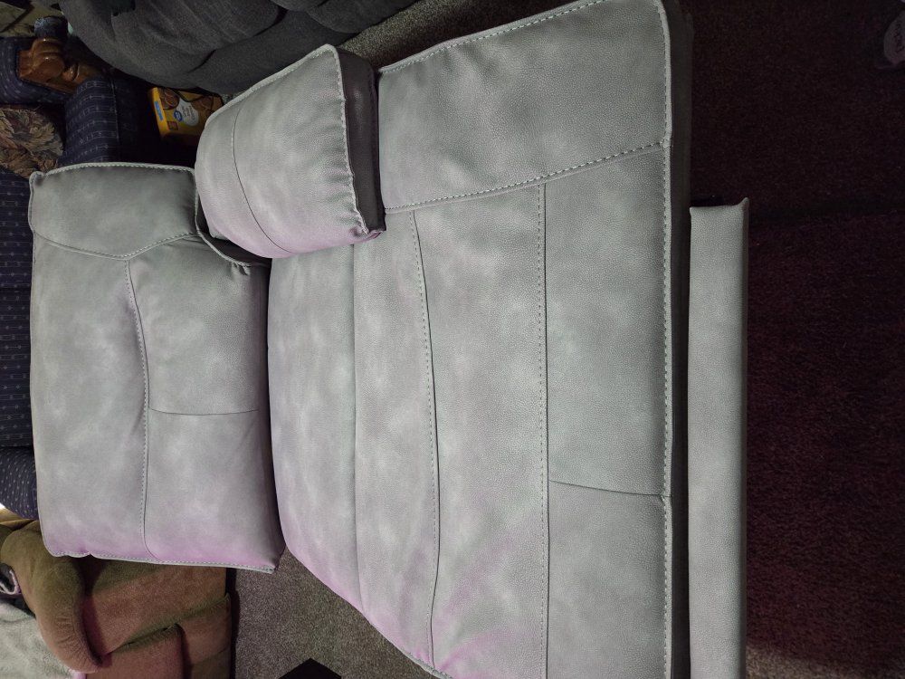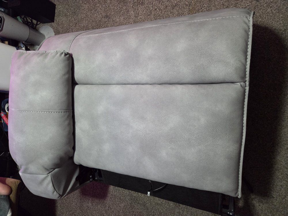 1 piece of a sectional. We only have this piece. Everything works fine, but we haven't used it. Just been covered in the basement. Nice for a gaming or small cave/theater room. Asking $10