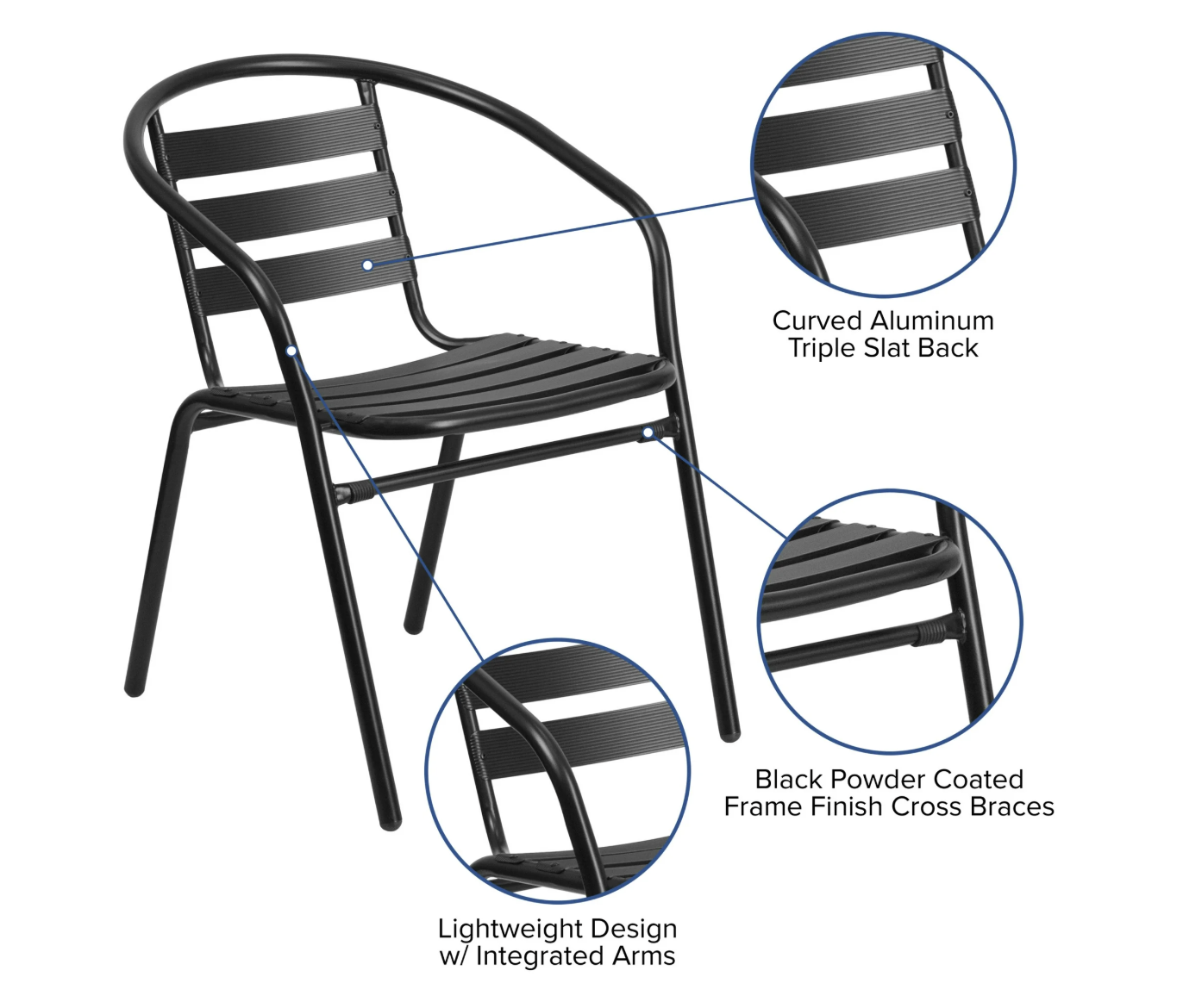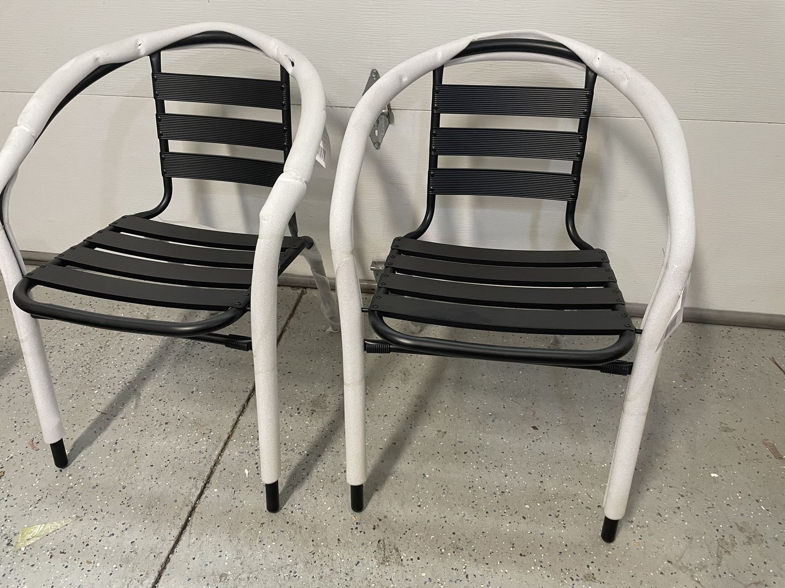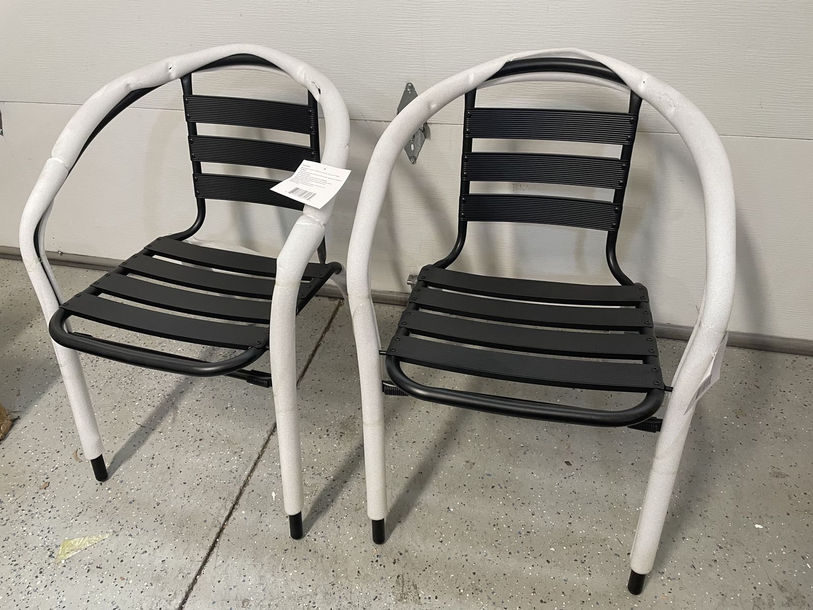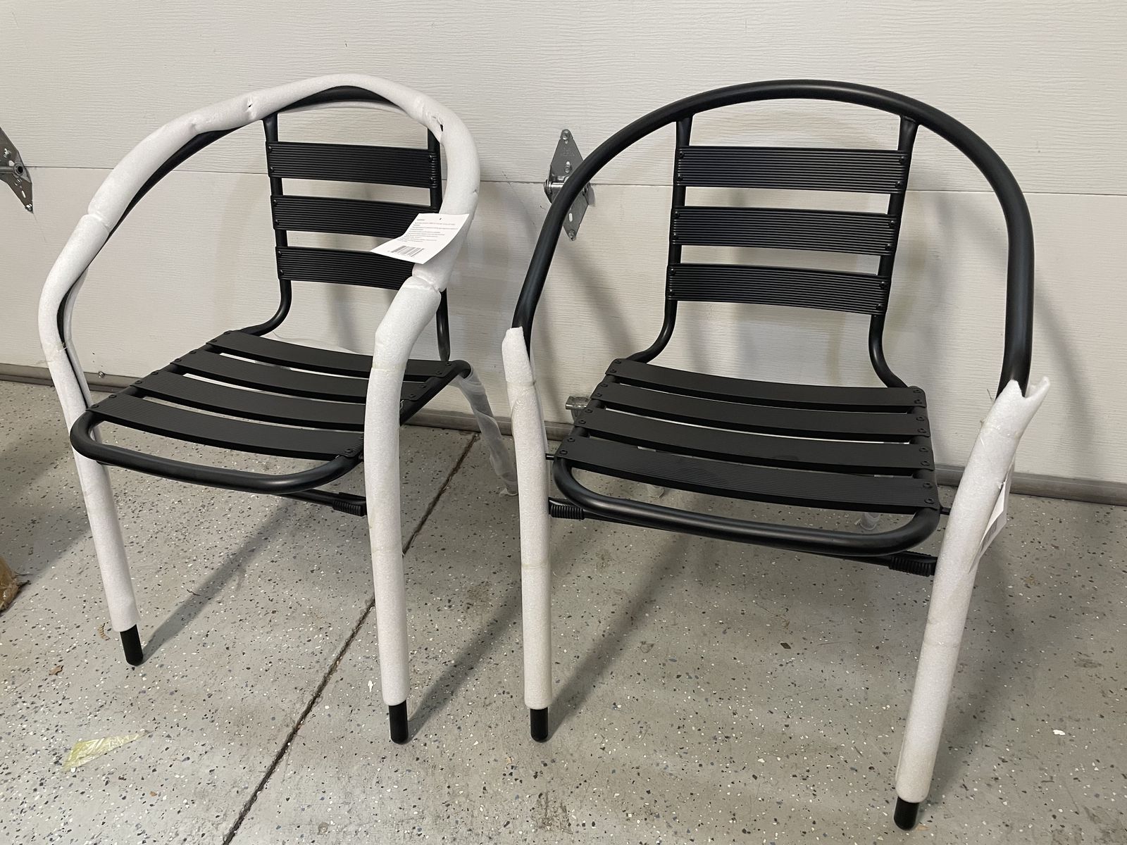 Brand new set of 2, Aluminum Slat Back Stacking Outdoor Restaurant Chair, Black