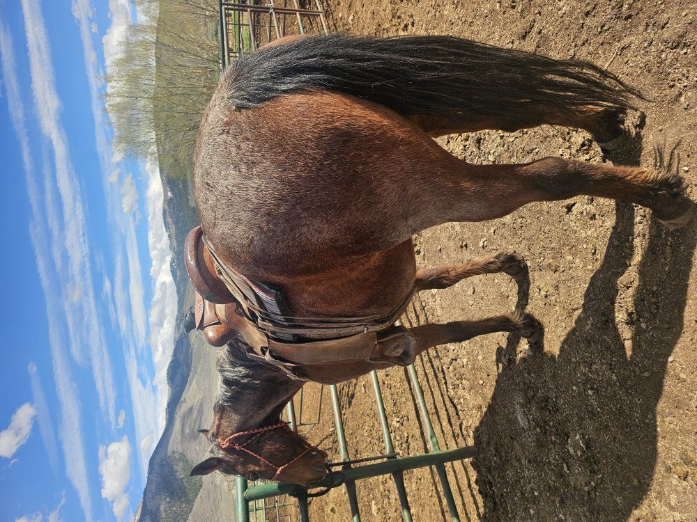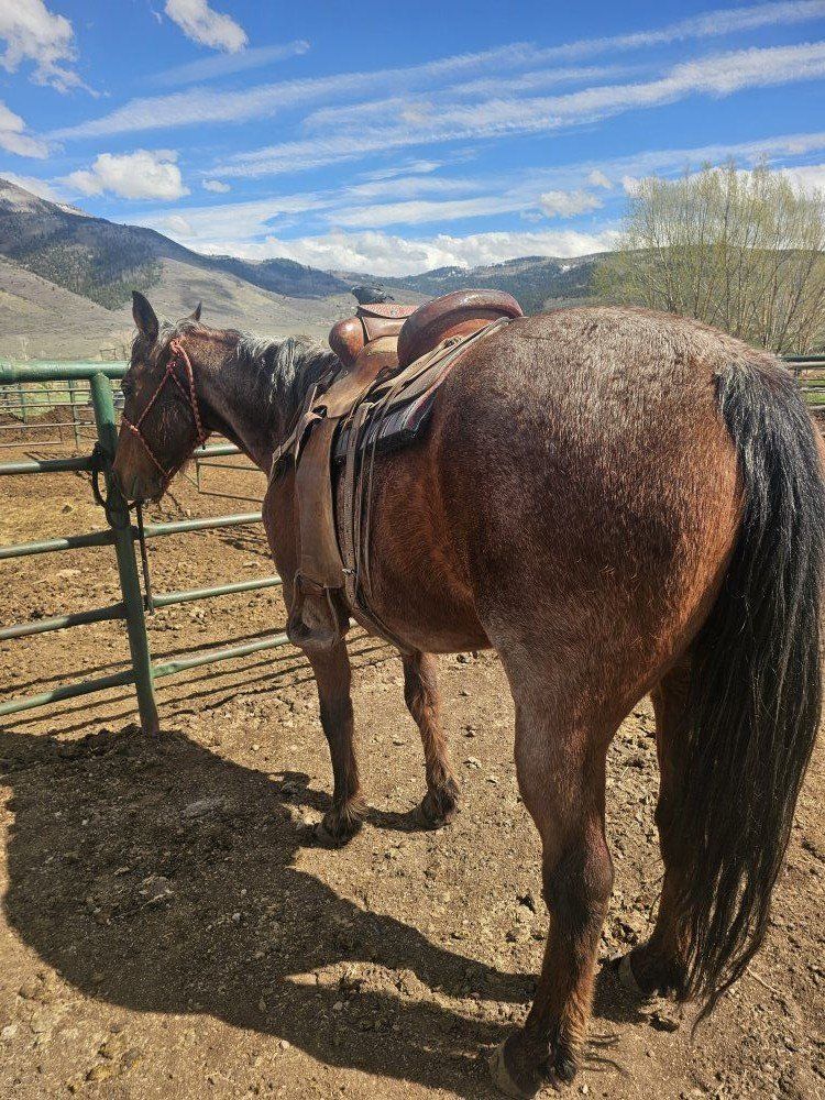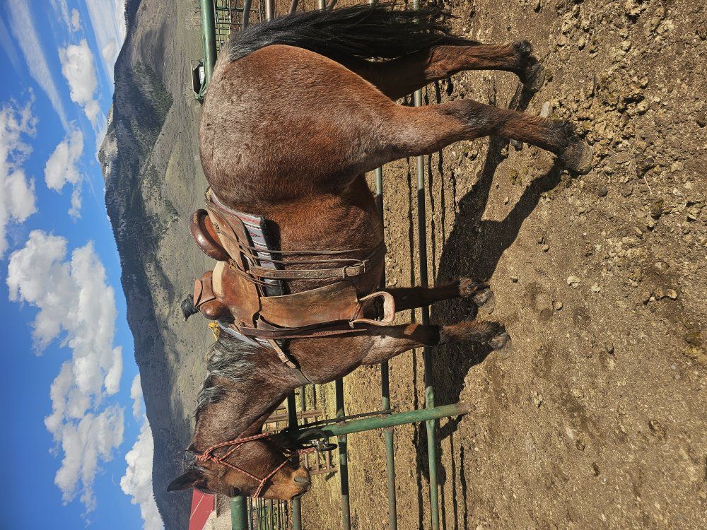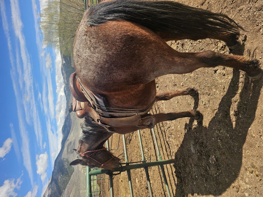 12 year old roan geilding awesome trail horse great with beginners loads shoes no problem has been roped off quite to be around fun to ride