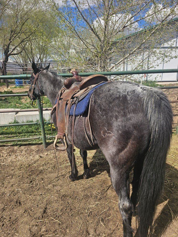 13 years old blue roan geilding awesome beginners horse great any ones horse great for the farrer ties loads no problem is a great kids horse