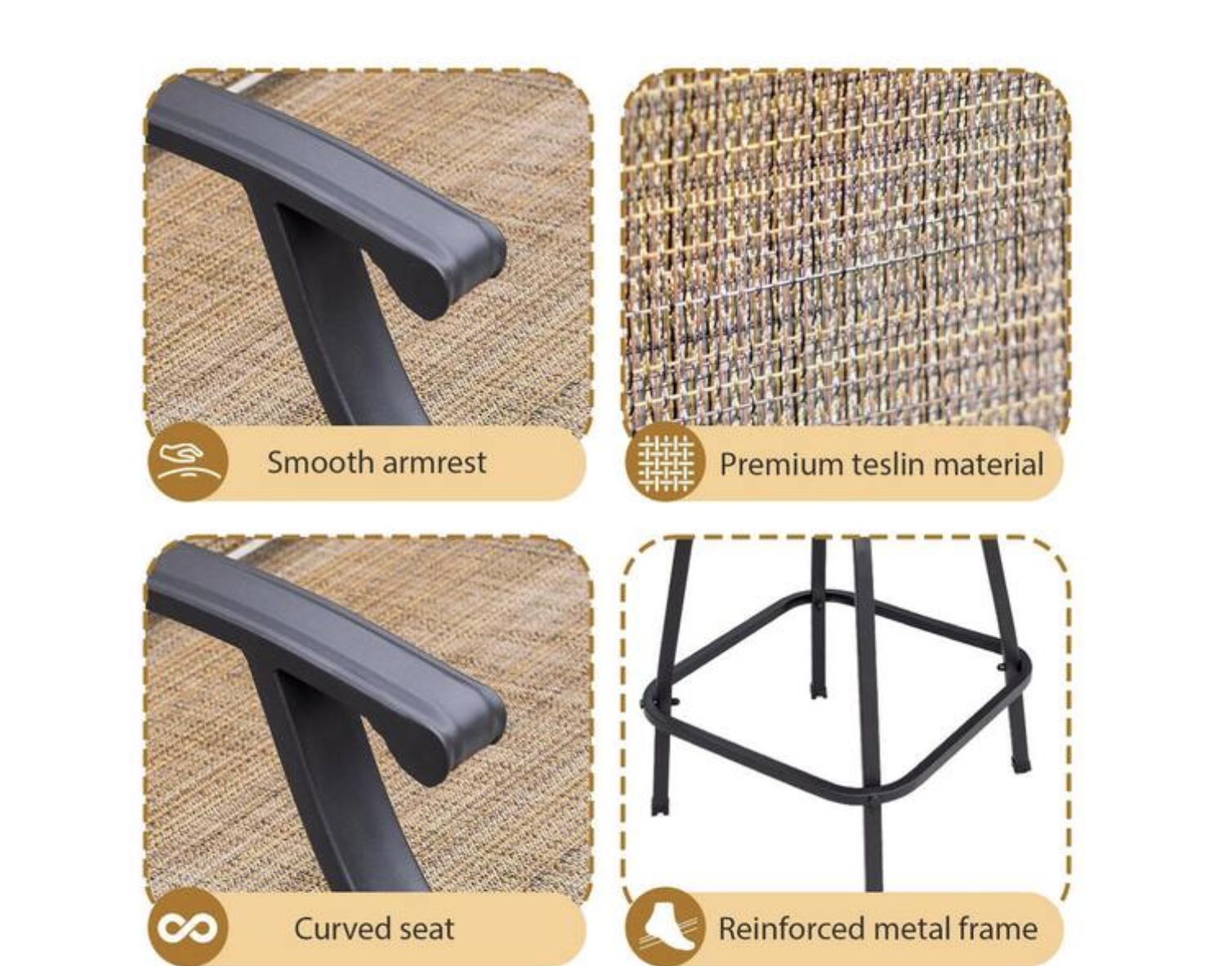 Brand new in box, unassembled, 2-Pieces Metal Textile Outdoor Bar Stool, Brown