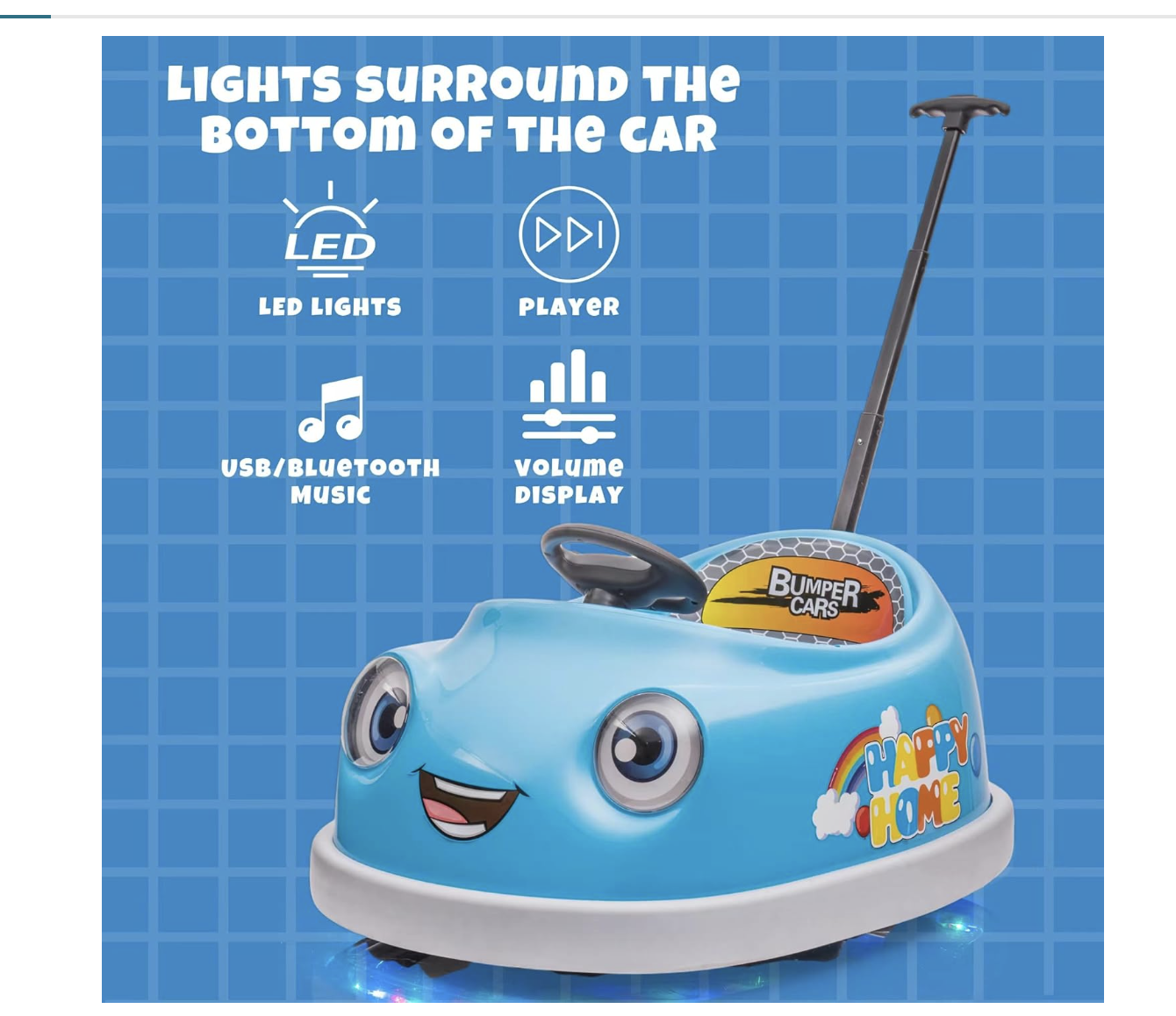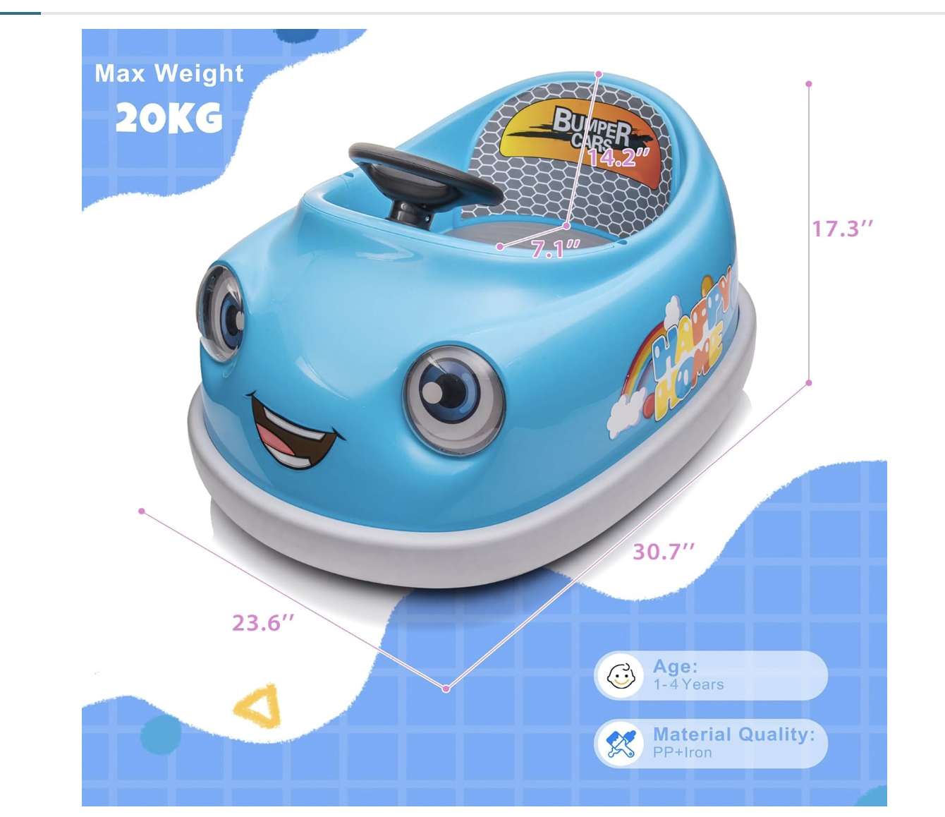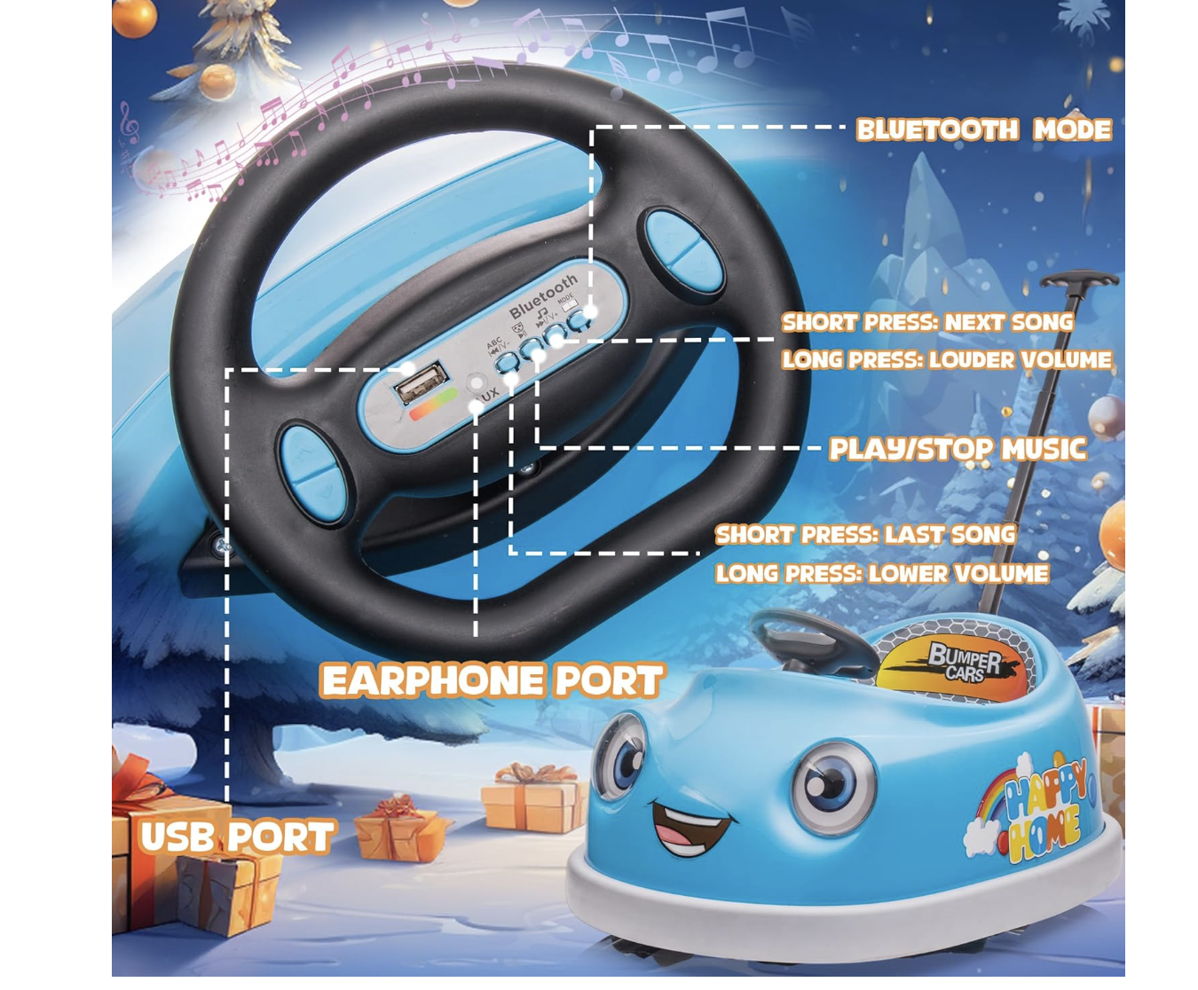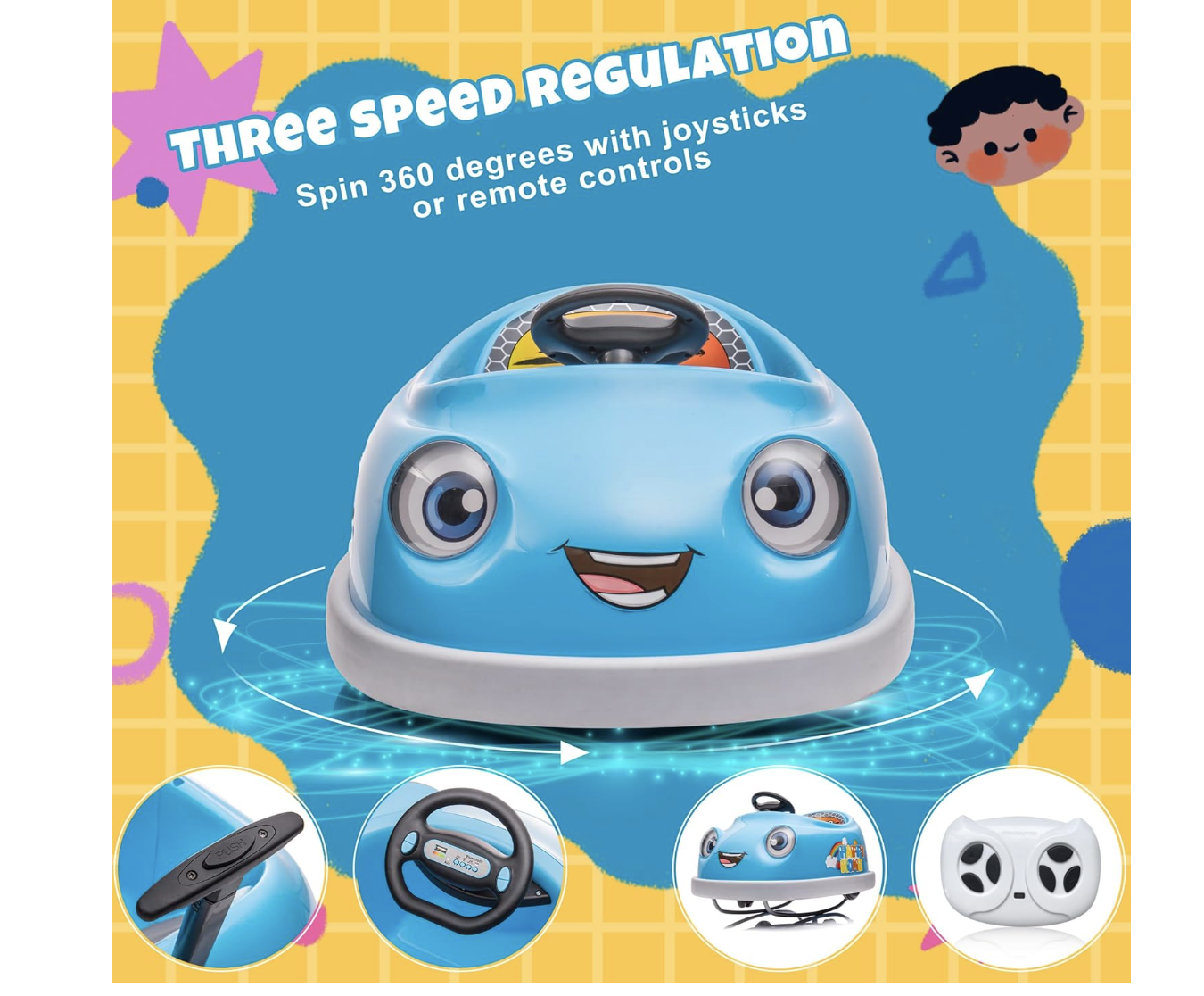 Brand new in box, unassembled, 12V Dual Battery Electric Ride on Kids Bumper Car w/Remote Control,360 Degree Spin,Push Rod Rocker Horse Function,3-Speeds Babies & Toddlers Bumping Car Ride on Toy Gift for 1-4 Years Children (Blue)