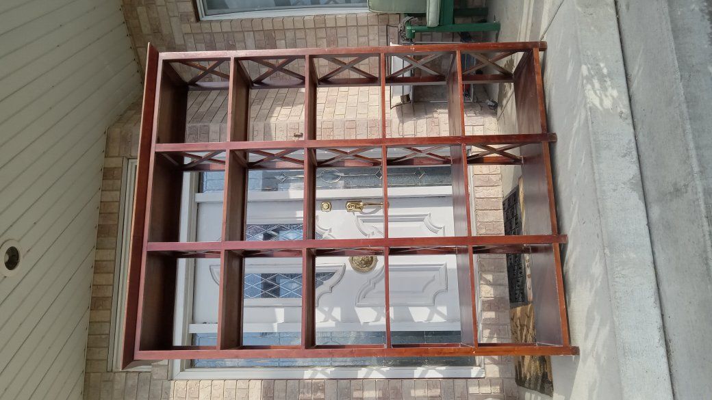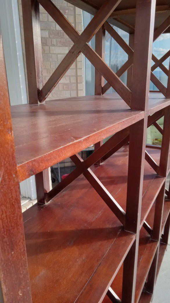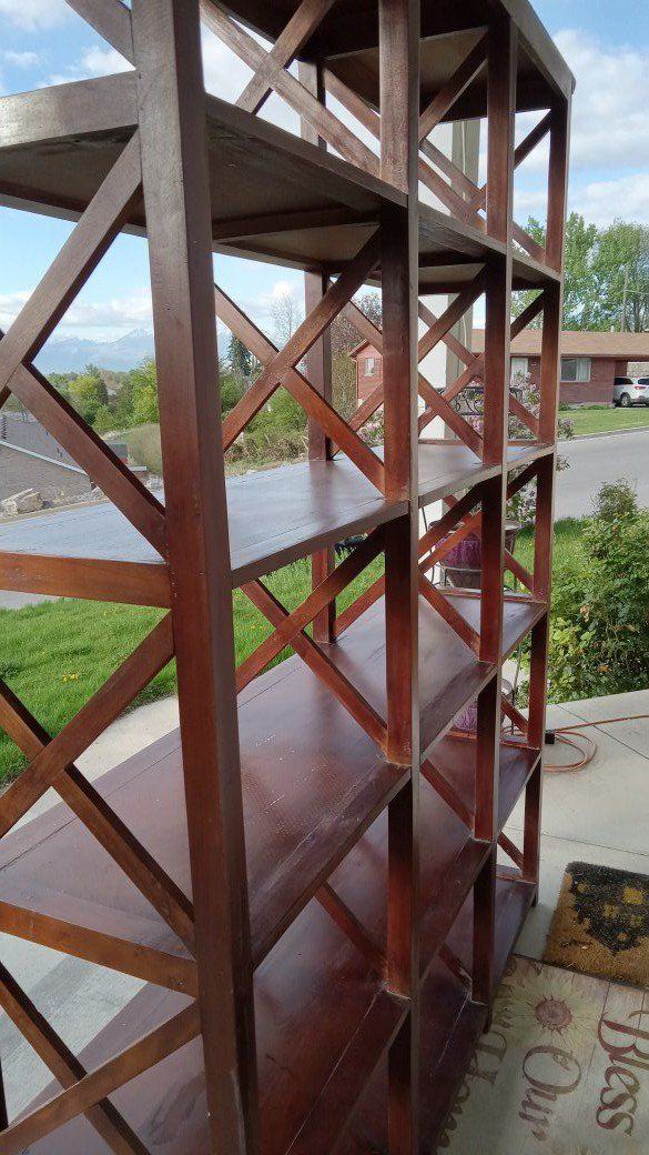 VenmoBig Wooden X Framed 5 Shelf Long Tall Sturdy. This Shelf is in great condition with no damage.