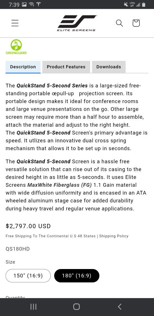 PayPalTheQuickStand 5-Second Seriesis a large-sized free-standing portable œpull-up projection screen.Its portable design makes it ideal for conference rooms and large venue presentations on the go.Other large screen may require more than a half hour to assemble, attach the material and adjust to the right height. TheQuickStand 5-SecondScreen's primary advantage is speed.It utlizes an innovative dual cross spring mechanism that allows it to be set up in seconds.