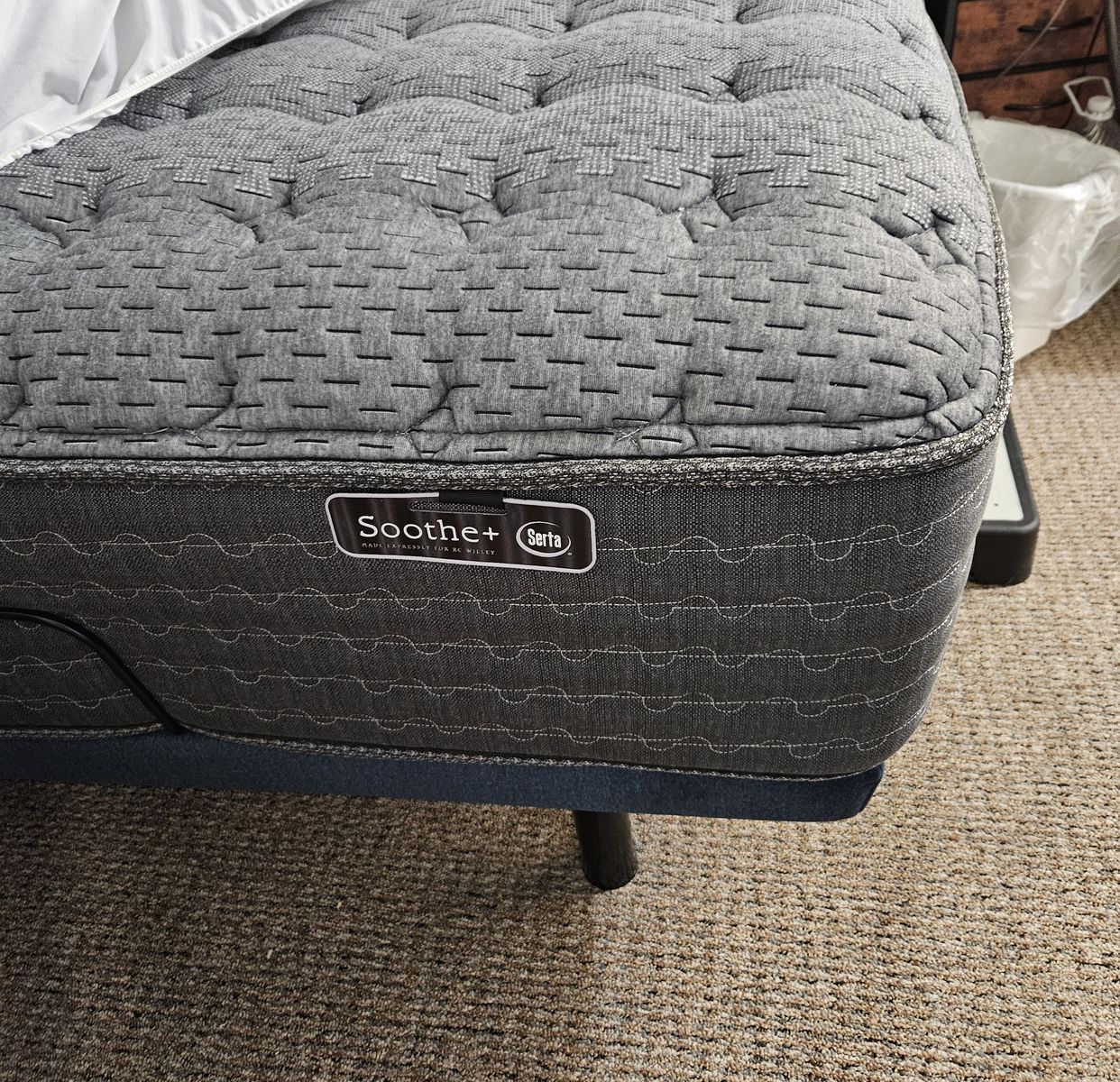 King adjustable bed with Serta mattress. One year old. Head and foot adjust. Paid $3000 one year ago.