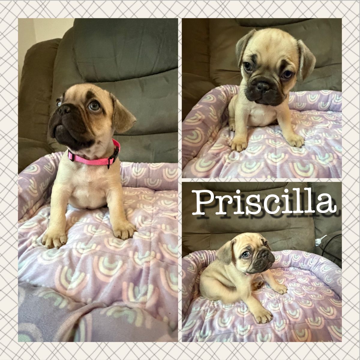 ApplePayPriscilla is the last of 4 puppies. Her birthday is January 7th. She is fully vaccinated including rabies (all given at vet clinic). She is shy upon meeting but is very lovable and full of energy. Her coat is very soft. I own both parents and they are registered with AKC.
