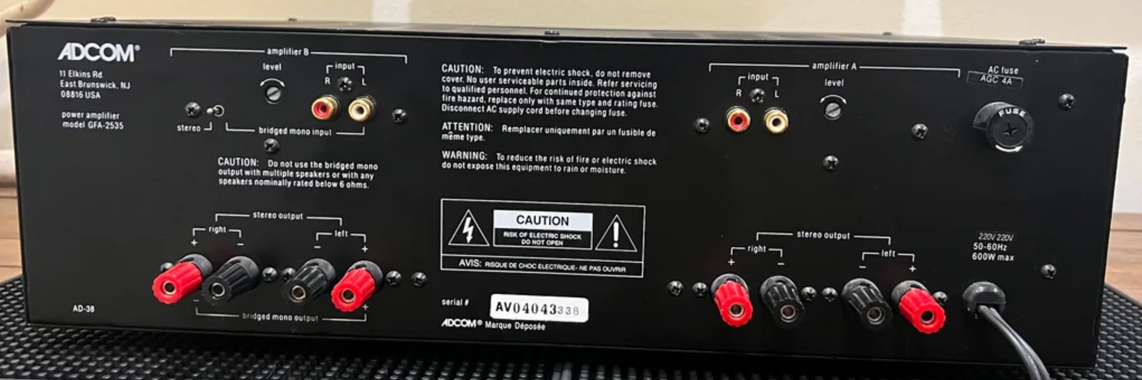 VenmoThe Adcom GFA-2535 is a versatile 4-channel power amplifier, often described as two GFA-535 units in one chassis, delivering 60 watts per channel into 8 ohms, or 200 watts per channel when bridged into 3-channel mode. Known for its "mini-sledgehammer" power, this robust, high-current amplifier is ideal for bi-amping or home theater systems.