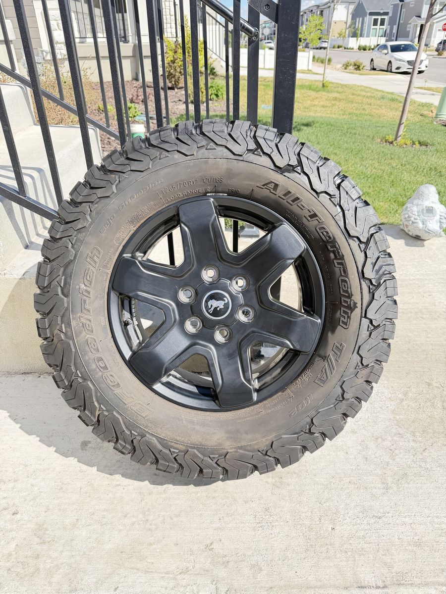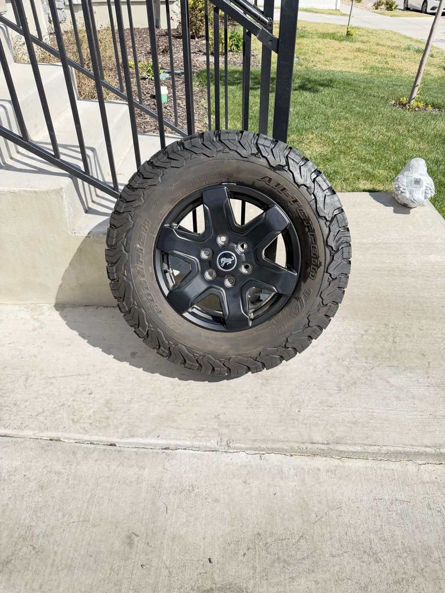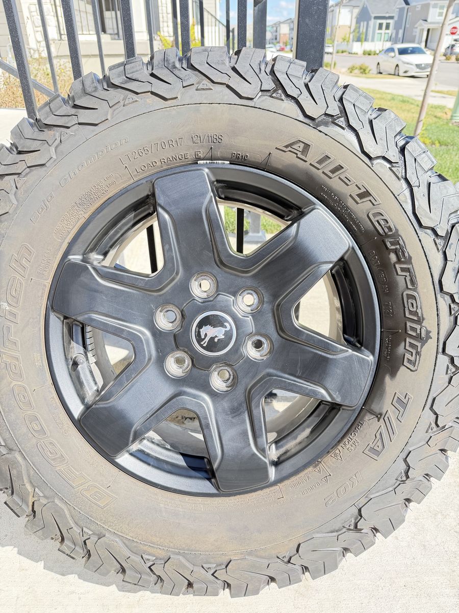 ApplePaySet of 5-Ford Bronco Rims and Tires 265/70R17 Bfgoodrich Ko2 Load E only 1000 miles in great condition,asking $1300 Rims are in excellent condition no curb rash Tires are almost new 4 tires are 265/70R17 bfg ko2 only 1000 miles Spare is 265/70R17 General grabber new stock I can sell the rims or tires separately Bolt pattern 6-5.5 or 6-139.7 Text anytime 385-402-2292