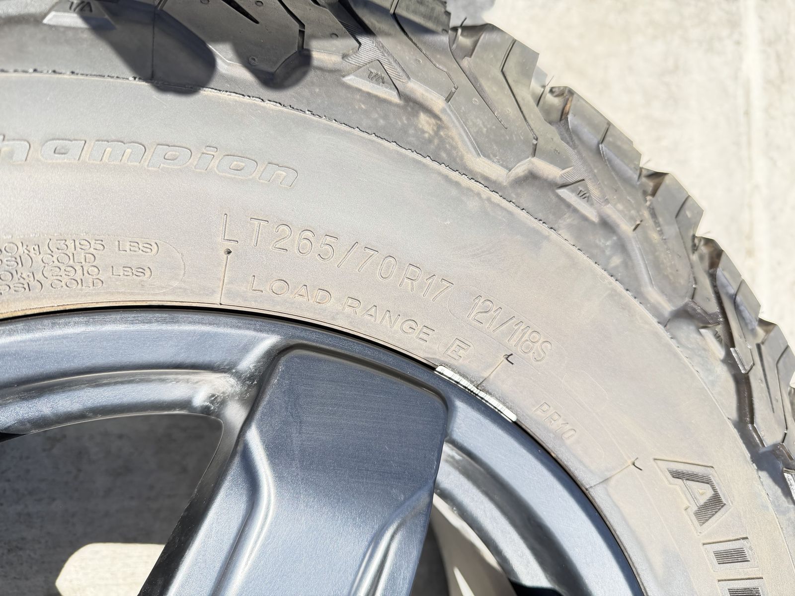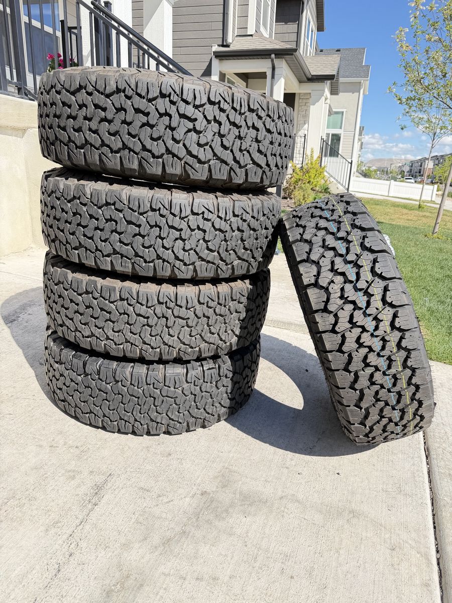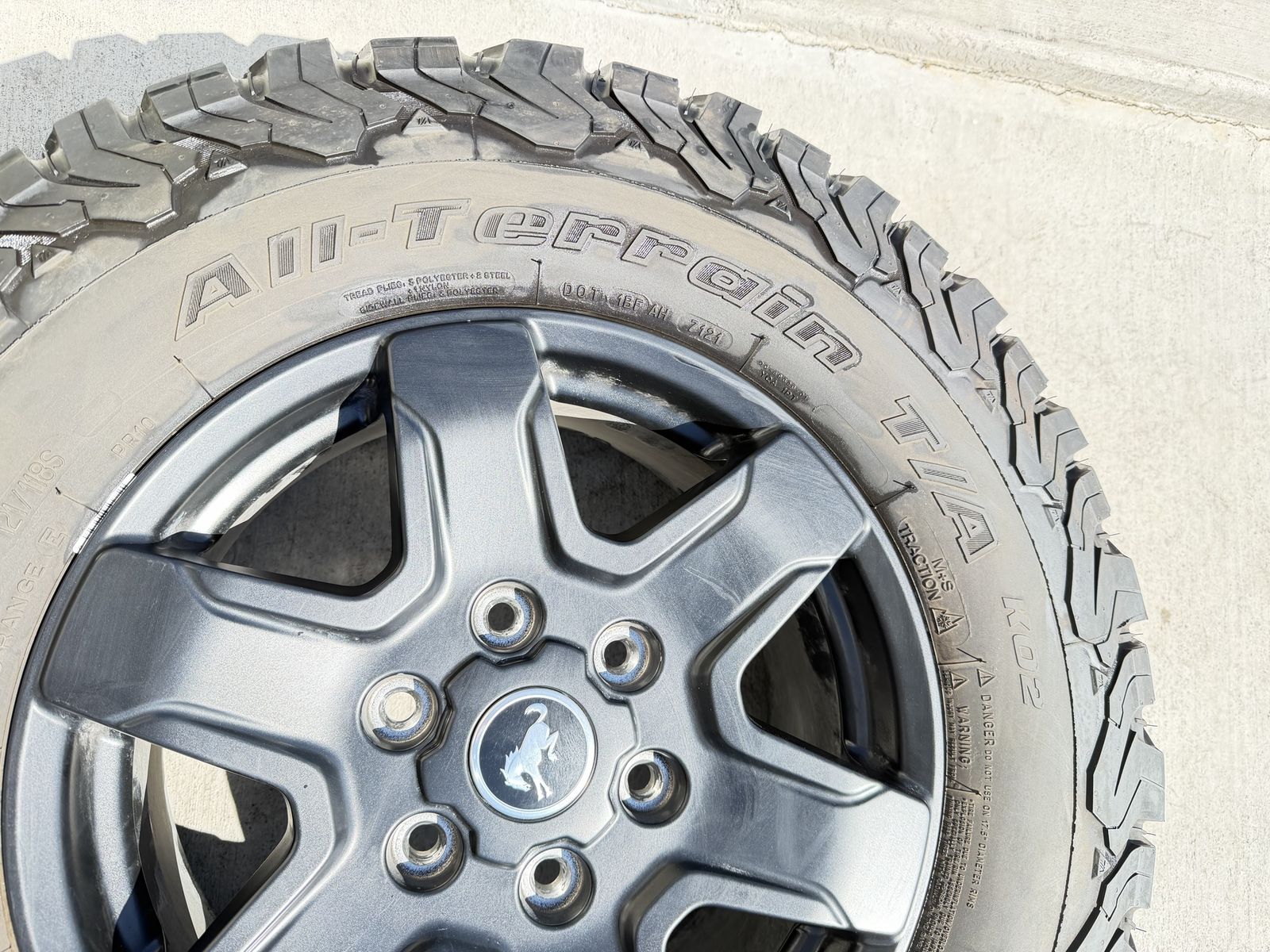 ApplePaySet of 5-Ford Bronco Rims and Tires 265/70R17 Bfgoodrich Ko2 Load E only 1000 miles in great condition,asking $1300 Rims are in excellent condition no curb rash Tires are almost new 4 tires are 265/70R17 bfg ko2 only 1000 miles Spare is 265/70R17 General grabber new stock I can sell the rims or tires separately Bolt pattern 6-5.5 or 6-139.7 Text anytime 385-402-2292