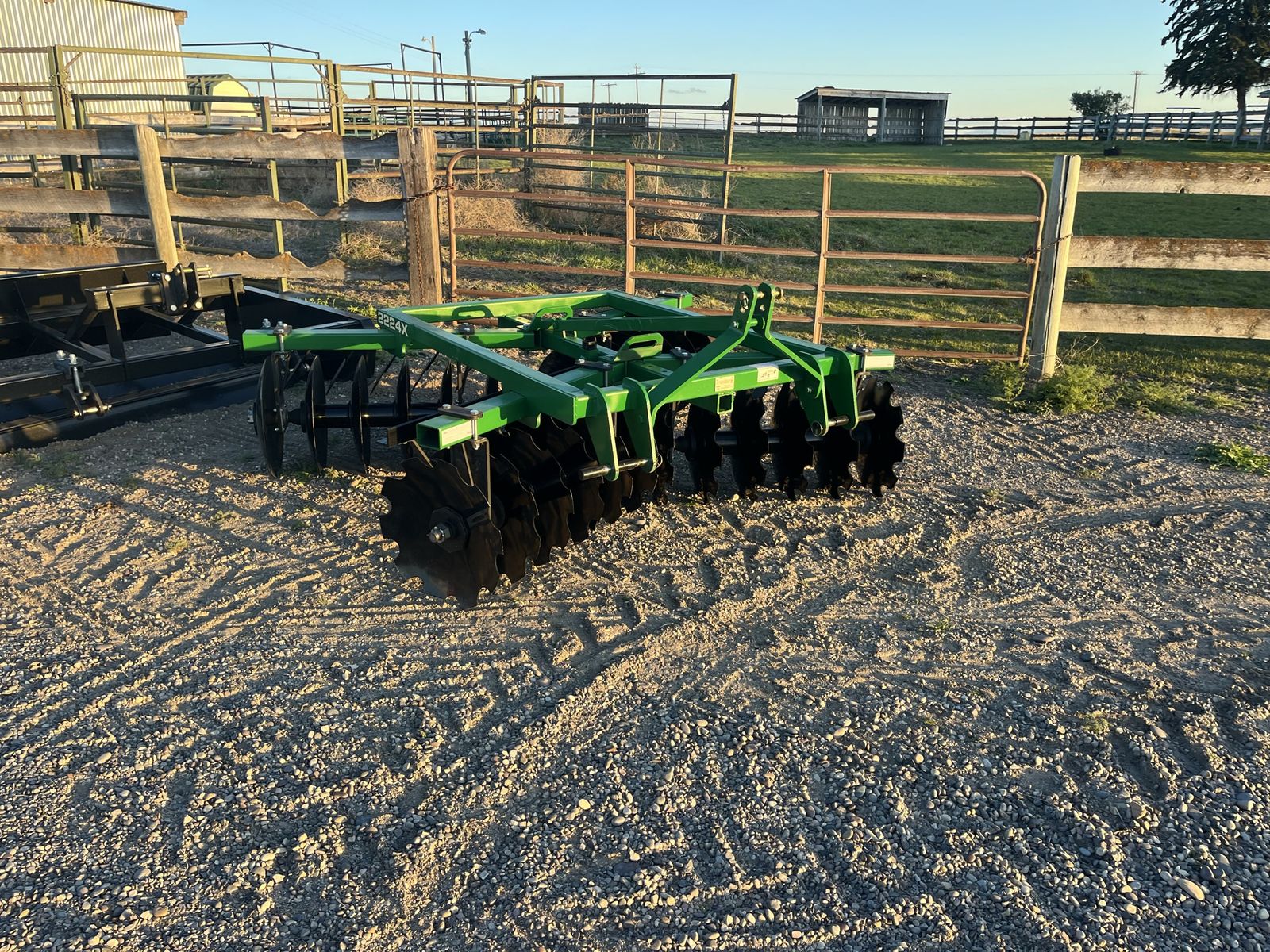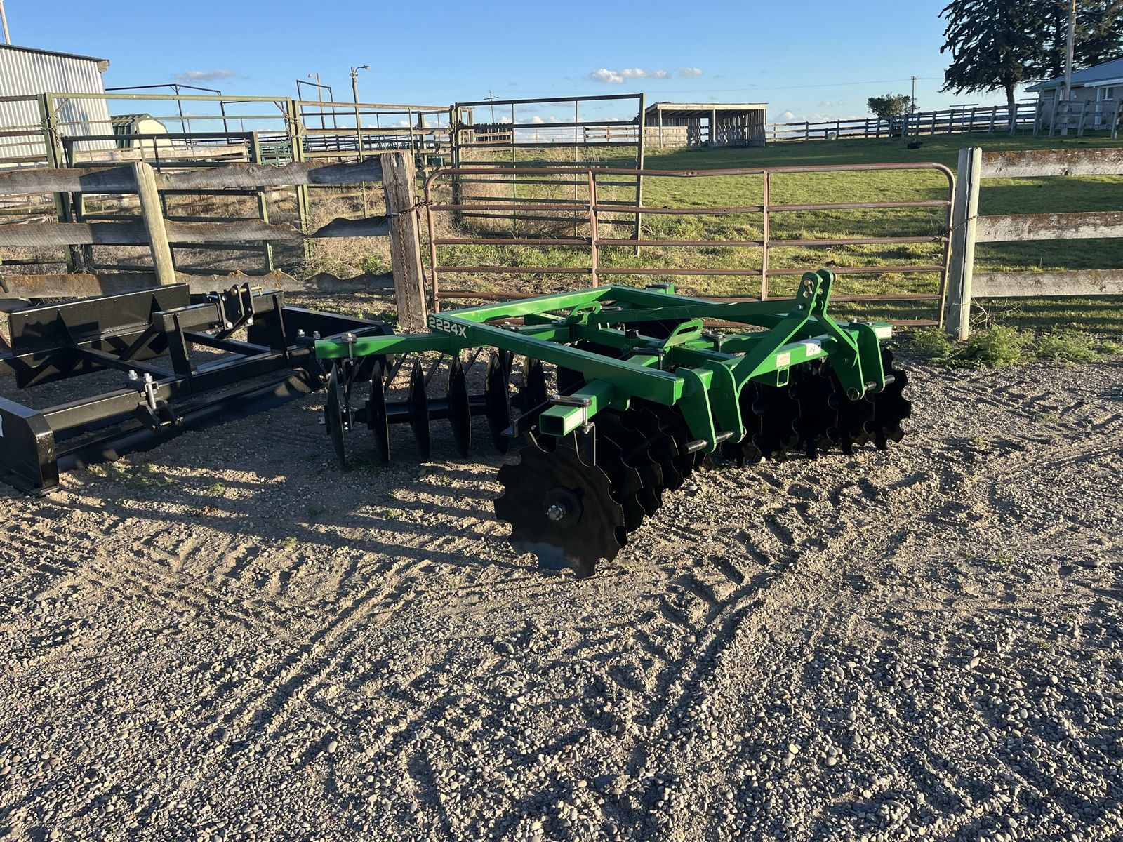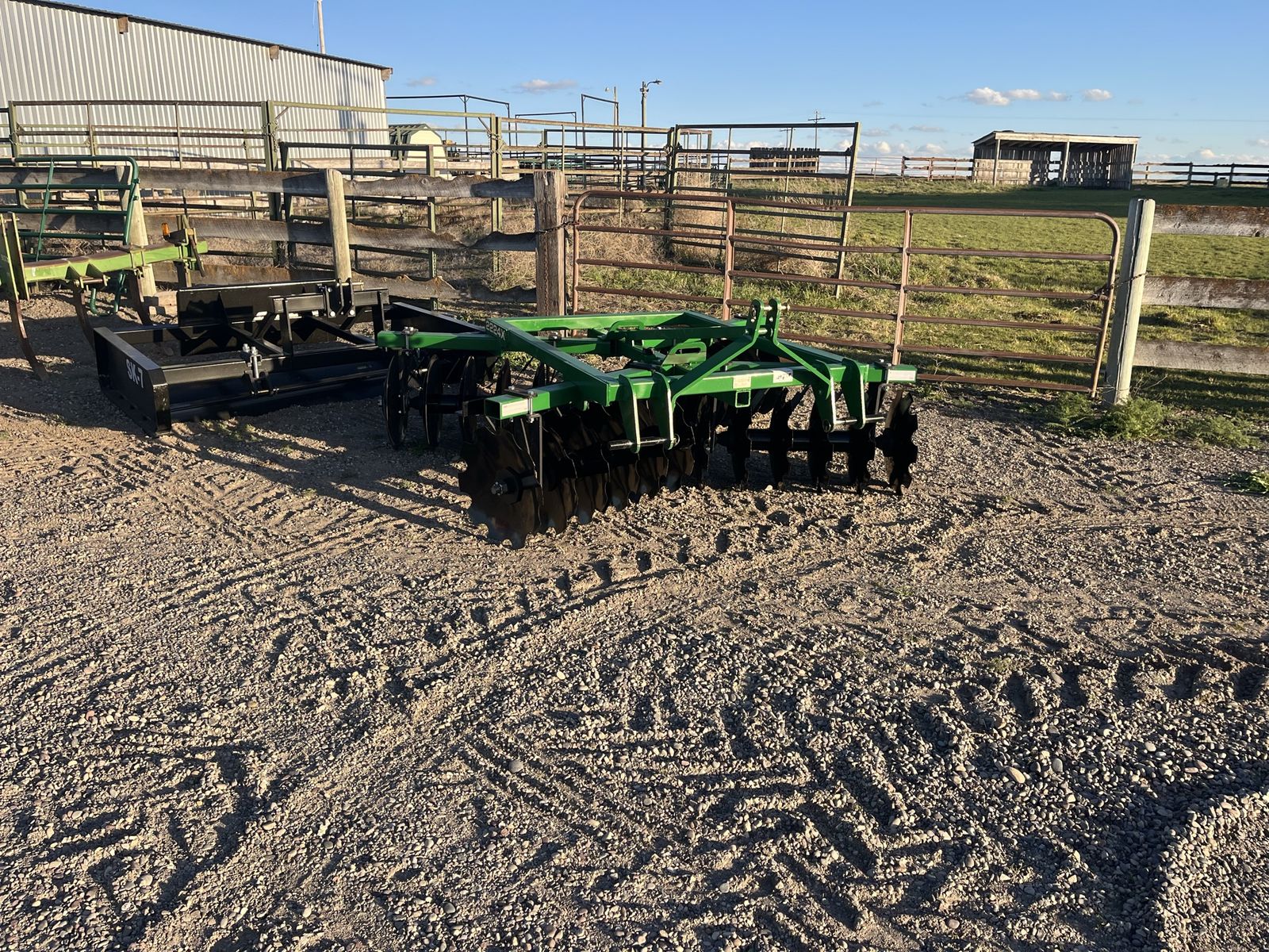 VenmoIndustries America 3 point 8 ‘ 6 foot . h d disk 22 inch disk blades adjustable gang angle . category, 1 and two 3 point grease sealed bearings scrapers has middle buster shank very well designed and heavy built ..