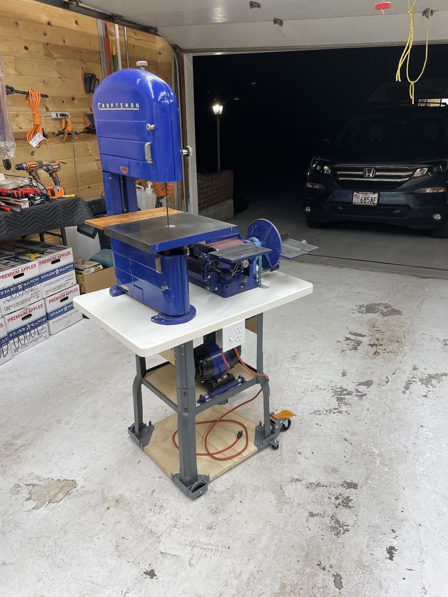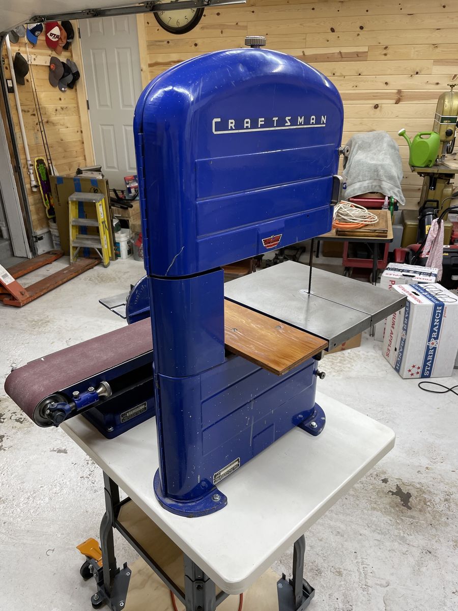 The perfect hobbyist combo machine. These are the old heavily built all steel and cast iron machines. Machines aren’t made this well anymore not even the expensive ones. The band saw has had all bearings replaced plus the tires and has new blades runs and cuts perfectly. The sander works great it can be use vertically or horizontally comes with multiple tables and extra sanding belts. It has an auxiliary switch with extra outlets so you don’t have to bend down to turn it on and you can plug other things in to it like lights or a shop vac. I have over $250 just in new parts and supplies to put this all together plus the value of the 2 machines my asking price is a very good deal. I have it on a mobile base which is an extra $50 if you want it also.