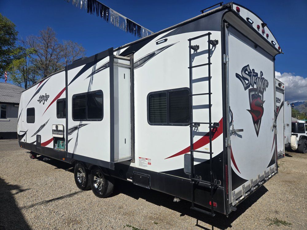 We've got a 2017 Cruiser RV Stryker 2912 for sale! This thing is fully loaded and is ready to be taken out on its next adventure! Rebuilt title Extended Season Package Brand new battery 2 full propane tanks On baord generator 500 hours On board fuel station 30 gallons Solar pannel installed Tires in great condition Garage dimensions: 195x74x82 Roof is solid Interior in great condition 34 feet long Dry weight: 7k pounds GVWR: 12,800 pounds 100 gallon fresh water 60 gallon black water 60 gallon gray water Lots of storage And so much more!! Overall, this is a great trailer for the price and it is ready to be taken out! It does hold a rebuilt title due to some minor delamination. We are a small family owned dealer and take pride in our trailers! We only charge a doc fee and no other hidden fees! Asking 22,800 or best offer DL #641B