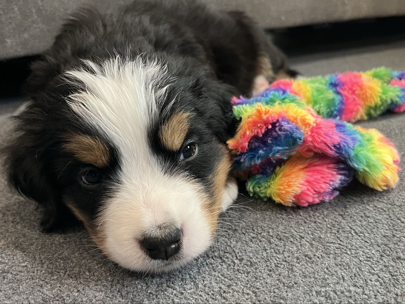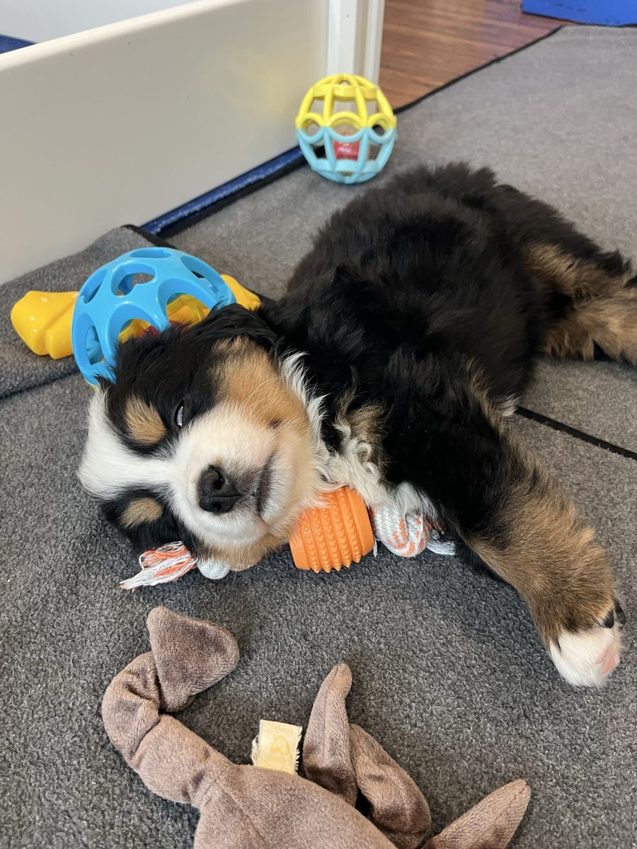 Parents have both had genetic testing done and are the epitomy of what a true Berner is ... loving, loyal, great with kids and other animals, good natured and love to be with their humans. Their mom, Gilly, is 80 lbs and their dad, Gane is 120 lbs. Both parents make beautiful, healthy, family oriented, trainable, wonderful puppies. Their puppies are so sweet and playful, and love to cuddle which make them the perfect addition to any home and family.