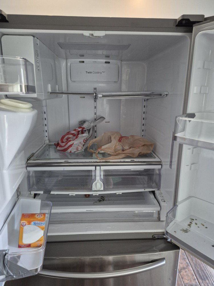 Condition: Good working condition. Normal cosmetic wear from use. One interior shelf has some damage, but the refrigerator functions well.