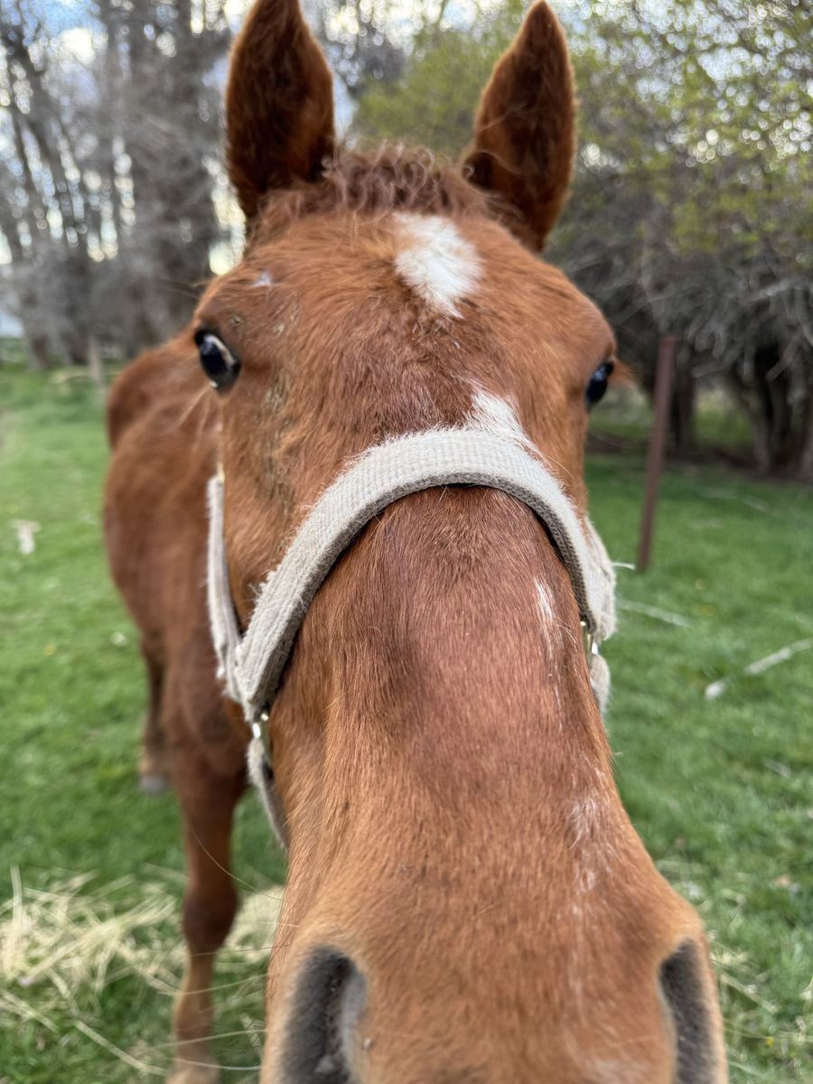 ZelleThis guy is a 2 year old grade quarter horse colt. He was purchased in the beginning of march as untouched unhandled. I brought him home and got right to work with him. I spent 4 weeks intensely working with him for a competition. He is such a rewarding horse to work with as he is very smart. Things take a while for him to understand, but once it clicks, it clicks! It has been fun working with him. He is one I would like to keep because he is going to make an awesome horse. He’s smart and very athletic. He just doesn’t fit in the program we’re wanting to build so he unfortunately needs to find a new home. I’ve gentled him to where you can pet/brush him all over, pick up all four feet, catch and halter in a big area, load in the trailer, I’ve had a saddle on him quite a bit while working him and have been on him 4 times. I wouldn’t say they were rides but I’ve been up on his back in the round pen letting him maneuver around. Everything I’ve done has been pressure and release. I feel like this method lays a firm foundation for them to remember what you’ve taught them and a good teaching method going forward. Let me know if you have any questions or would like to come meet him.