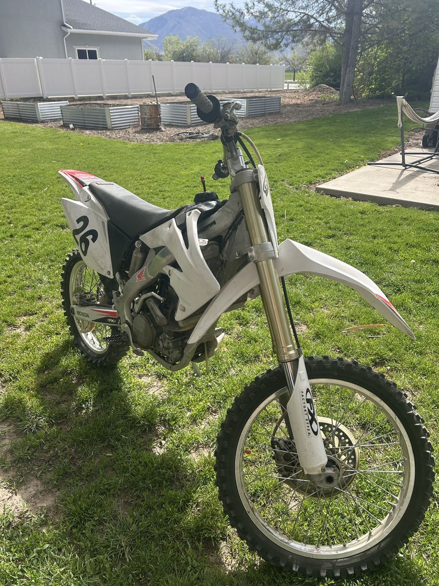 Clean 2006 Honda CRF 250R in good condition, starts and runs good with no major issues. The bike has been well maintained but hasnt been ridden in maybe 5 years. The previous owner rebuilt the top end with possibly around 100 hours total. Only thing it really needs is a new back tire and fluids. Also has tusk shifter, new rear sprocket, and a kickstand.