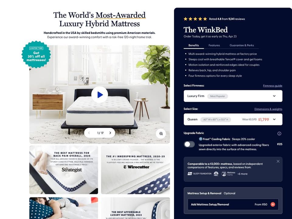 Premium WinkBed luxury hybrid mattress — high-end construction designed for comfort, support, and long-term durability