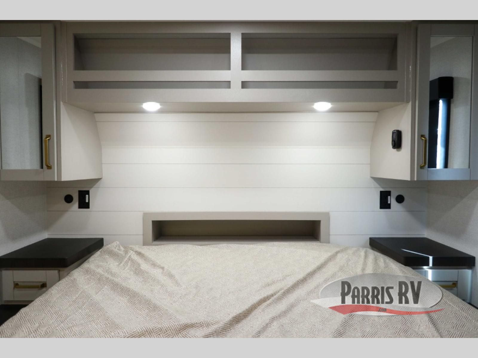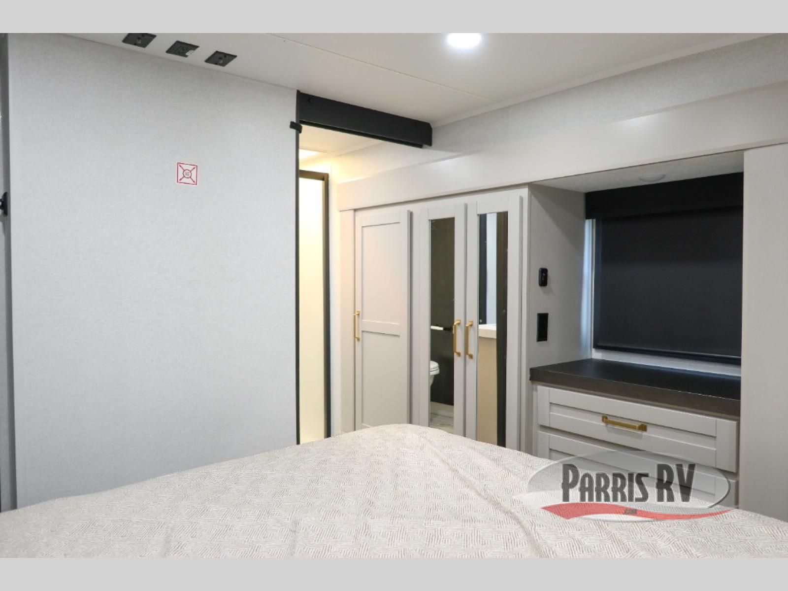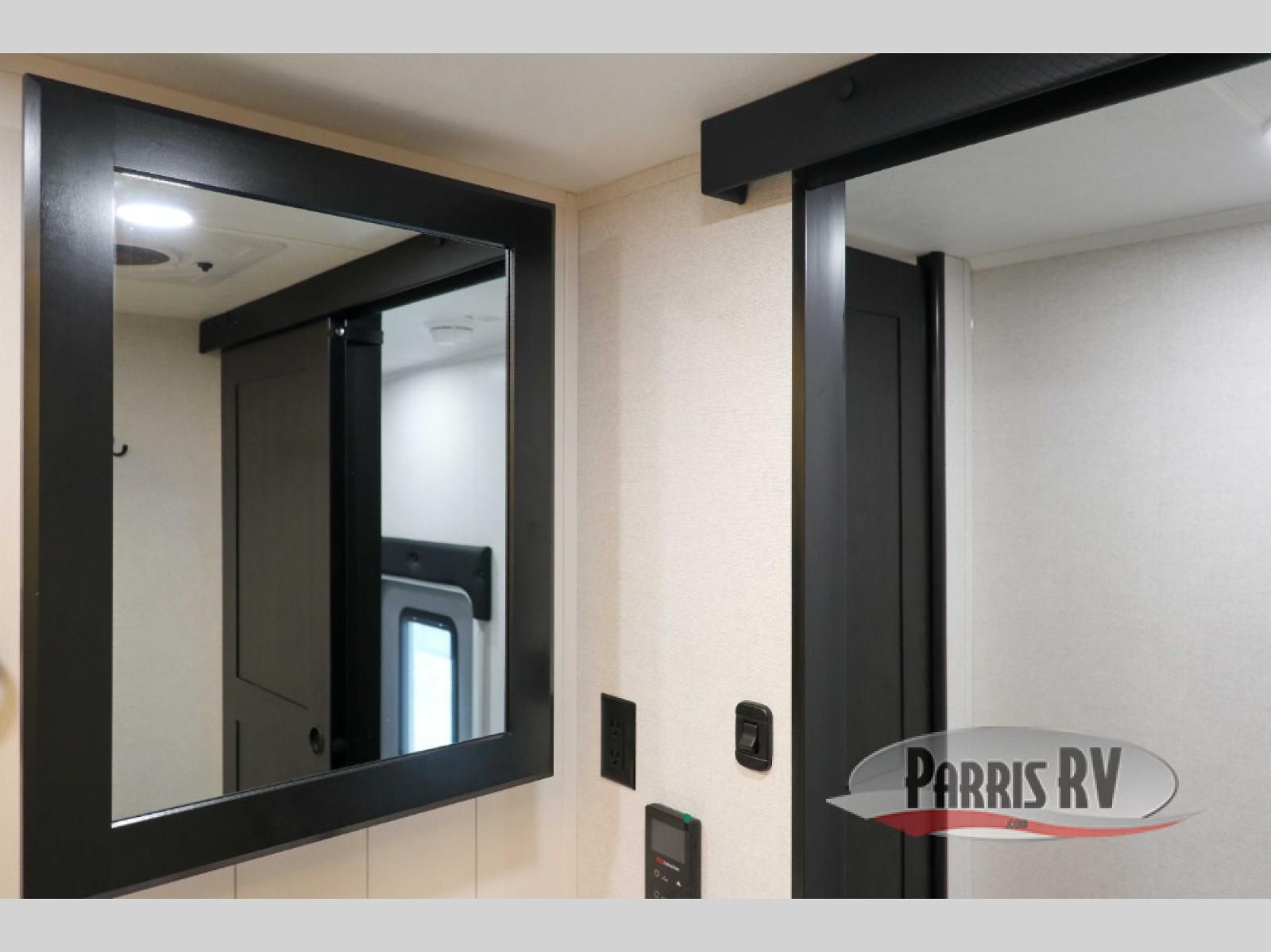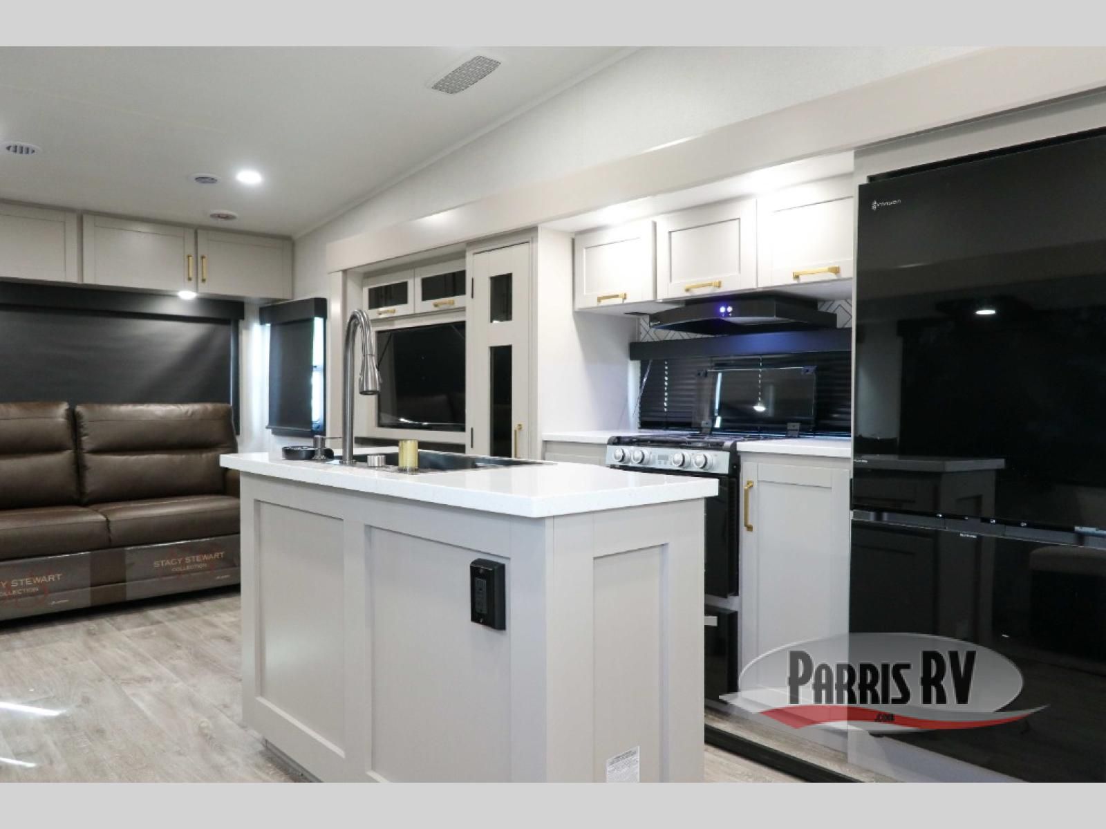 This Sundance Fifth Wheel offers a luxurious living experience on the road! The rear living area is the heart of the RV, featuring a tri-fold sofa that's perfect for relaxation and entertainment. The theater seating provides ample seating for family and friends, while the entertainment center offers endless entertainment options. The kitchen is equipped with a pantry, a kitchen island that offers additional counter space and storage, a refrigerator, a sink that's conveniently located for food preparation and cleanup, and a microwave. Plus, a table with chairs and a bench seat offers a comfortable dining space. The full bathroom is designed for comfort and convenience, providing a private space for personal care. The serene front bedroom features an Olympic bed that provides a comfortable sleeping space