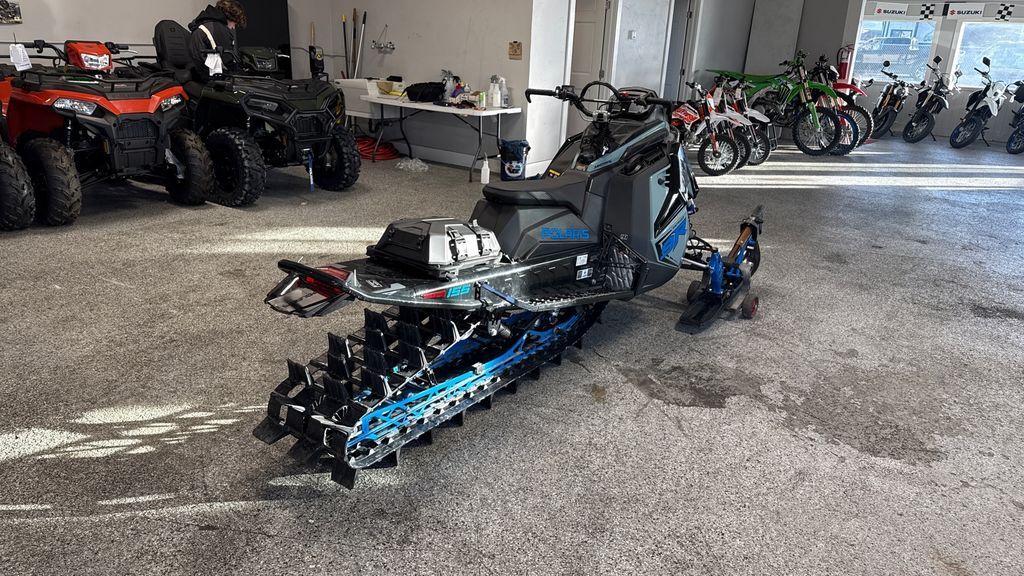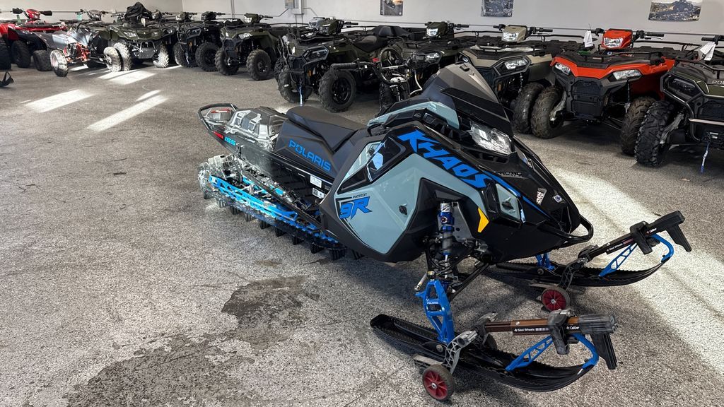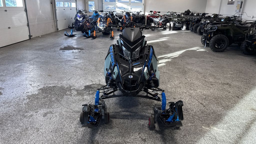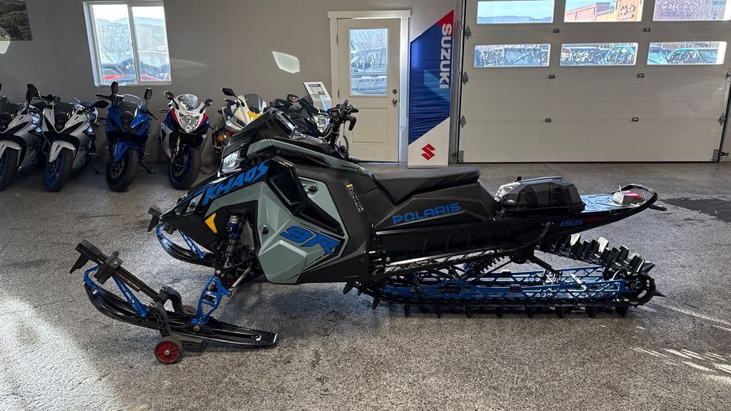 2026 Polaris® Patriot 9R RMK Khaos 155 Hemlock Blue / Black / Velocity Blue The Ultimate in Dynamic and Agile All-Mountain Performance The RMK Khaos delivers transfer and traction for a wild and playful ride in the backcountry. RMK Khaos models are lighter than the competition for easier maneuverability and better flotation in deep snow conditions. Features may include: Quicker Response. Higher Track Speeds. QuickDrive is the lightest drive system in the industry and produces the lowest inertia for optimum response. Choose between the 325 Series 9 Track for instant traction and forward drive in deep snow or the 275 Series 8 track for versatility and traction in varying snow conditions. Float And Fly The RMK Khaos Rear Suspension features geometry that provides transfer and traction for light, playful handling, along with the best response and control in all riding zones. Available in 146, 155 and 165 lengths. Big Time Shocks for Big Time Terrain Ultra-premium Walker Evans Hi-Lo Shocks are the best of the best in extreme mountain conditions. They feature remote reservoirs for increased oil capacity to ensure all-day performance and durability, along with high and low-speed compression adjustment to dial in the ride.