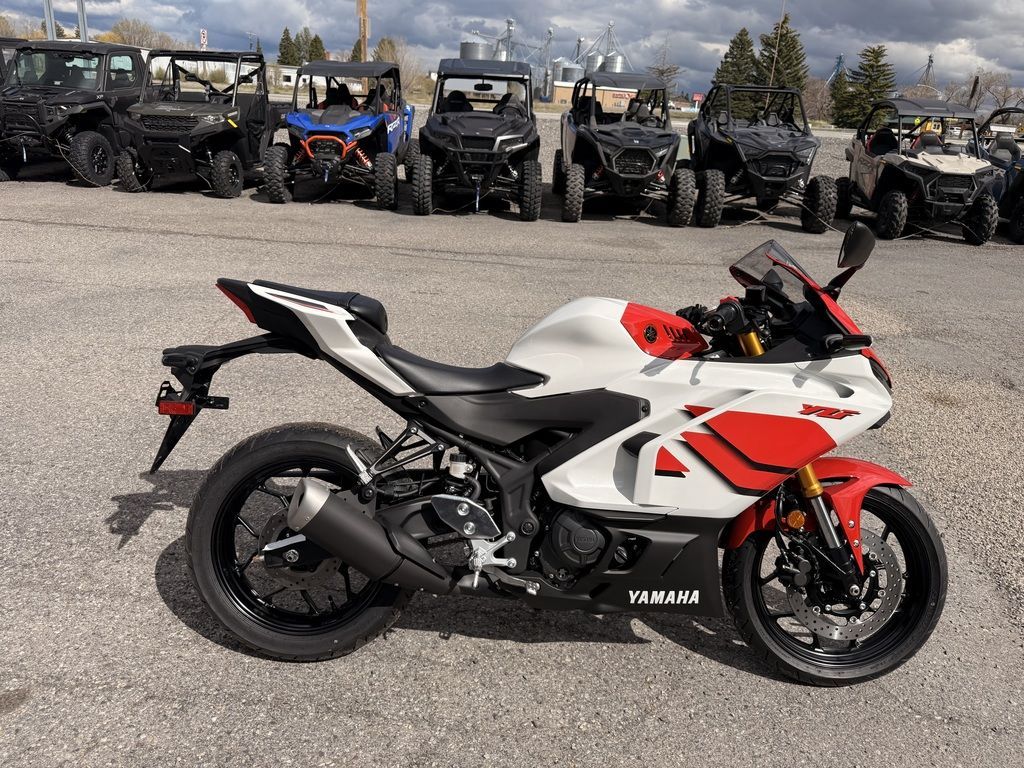 Call for OTD pricing on this good looking machine! 2026 Yamaha YZF-R3 70th Anniversary EditionR WORLD IS CALLINGYamaha's celebrated entry into R World, the YZF-R3 is powered by a high-revving 321cc engine with an emphasis on lightweight, nimble handling and real-world practicality. A perfect choice for everyone from beginning riders to experienced track day enthusiasts, the R3 strikes the right balance of thrilling Supersport performance and everyday comfort in a fun, sporty package that shows off its distinctive R-Series pedigree from every angle.Features may include:Next Generation R-Series StylingInspired by the flowing aerodynamics of Yamaha's YZR-M1 MotoGP® race bike, the 2026 YZF-R3's distinctive R-Series pedigree is recognizable at a glance with its aggressive front fairing, sleek side panels and a sporty tail section with signature R-series tail wing.Iconic 70th Anniversary Edition StylingCelebrate seven decades of motorsports excellence with the 2026 YZF-R3 70th Anniversary Edition. Throwback white and red speed block livery, gold Yamaha Tuning Fork emblems, and Anniversary Edition badge combine with the R3's sleek, modern R-Series design to commemorate the 1955 birth of Yamaha Motor Company in standout style.Modern LED LightingAdvanced LED lighting adds a modern look, including a single projector-type headlight flanked by four-element position lights, along with LED tail lights and turn signals.Smartphone ConnectivityThe 2026 YZF-R3 features Yamaha Motorcycle Connect (Y-Connect) smartphone connectivity which works in conjunction with the free-of-charge Y-Connect app (available for iOS and Android) to enable a direct connection between motorcycle and smartphone. Y-Connect capability for the R3 includes the ability to view incoming call, email and message notifications. Additional useful functions include monitoring and notifying the rider or other contact of motorcycle technical issues, and also the ability to track and record key motorcycle ride data within the app, including distance covered, fuel consumption, acceleration, motorcycle location and much more.LCD Instrument DisplayAn LCD instrument cluster displays connected smartphone information along with vital vehicle data. There is also a USB-A socket located next to the display providing convenient power for phone charging or heated gear.Advanced Assist & Slipper ClutchThe Assist & Slipper clutch utilizes an assist cam and slipper cam to help inhibit excessive engine braking for a smooth, easy-to-handle feeling during downshifts while also reducing the amount of force required to pull the clutch lever for less hand fatigue.