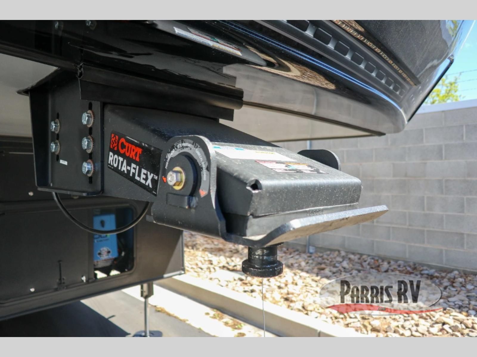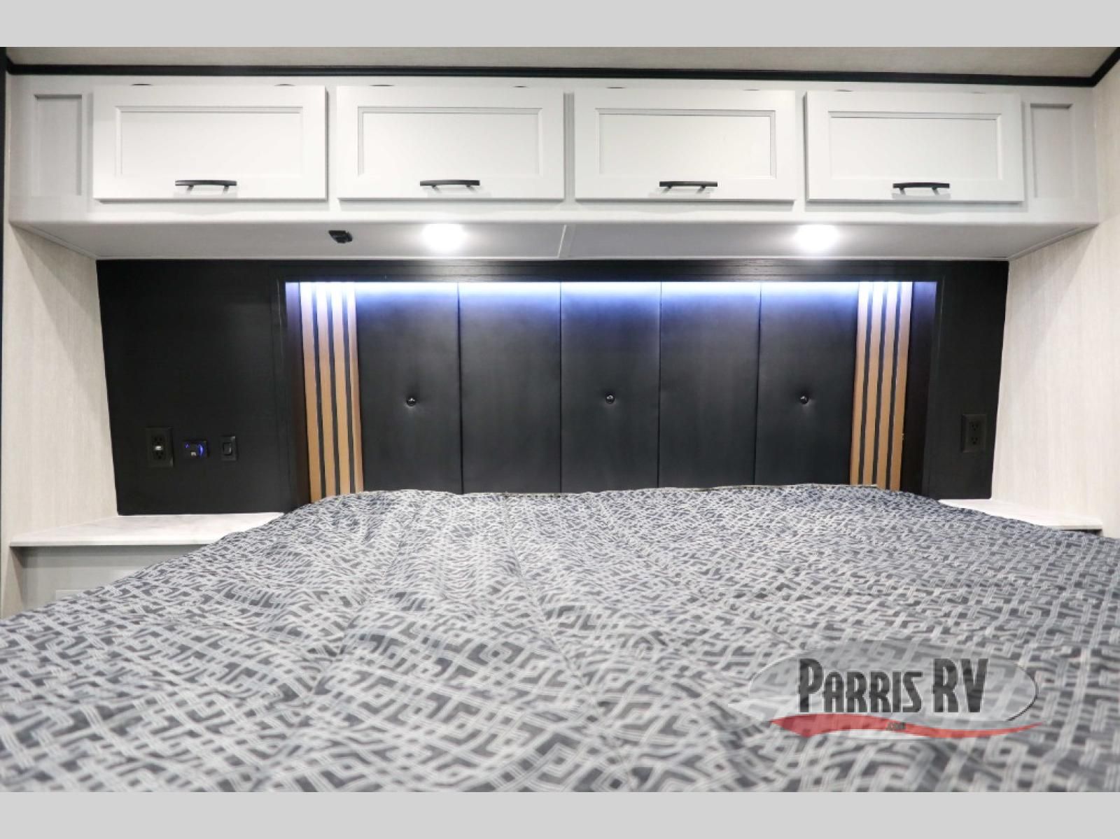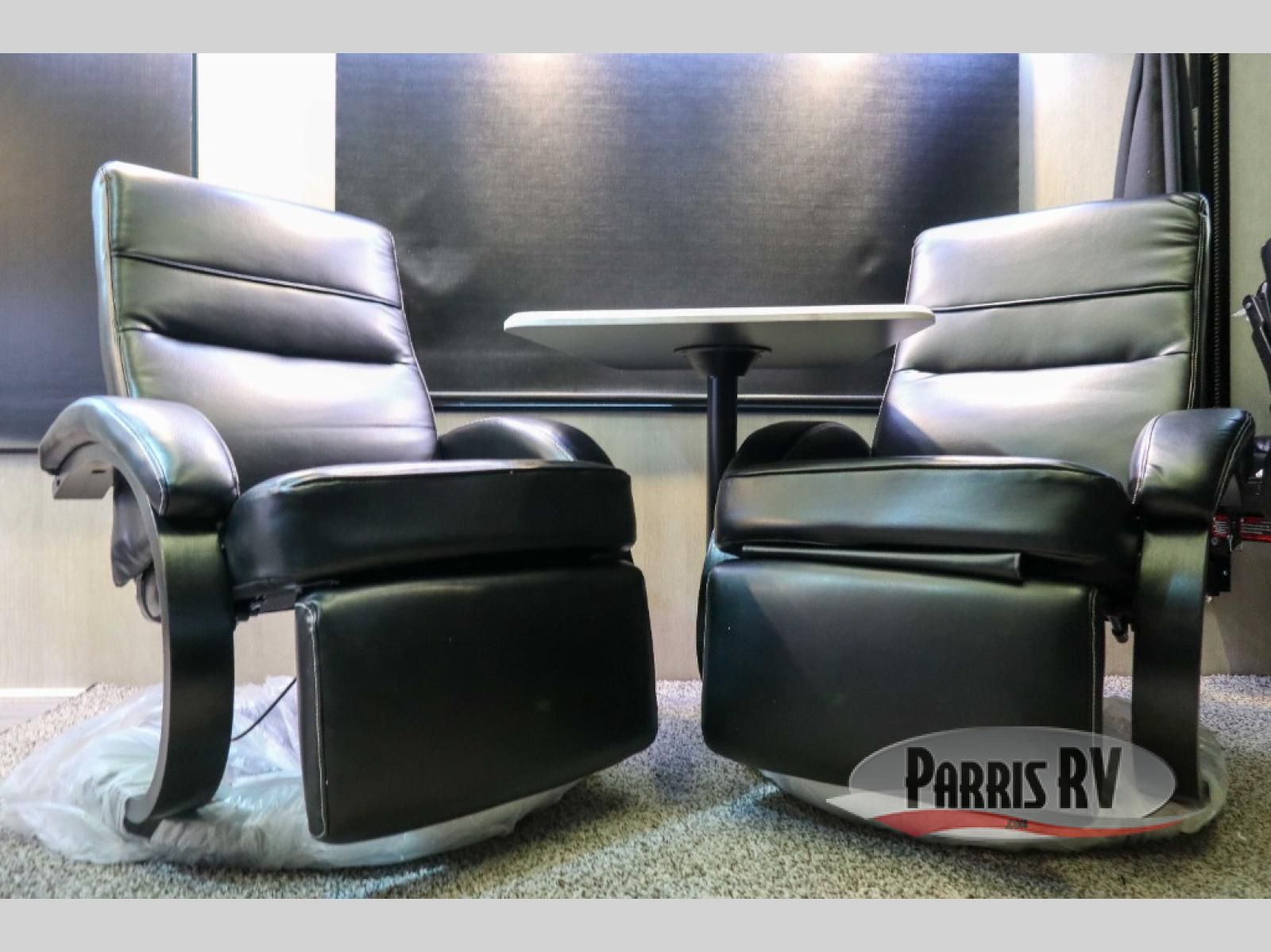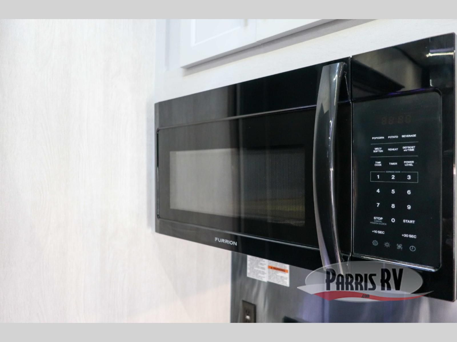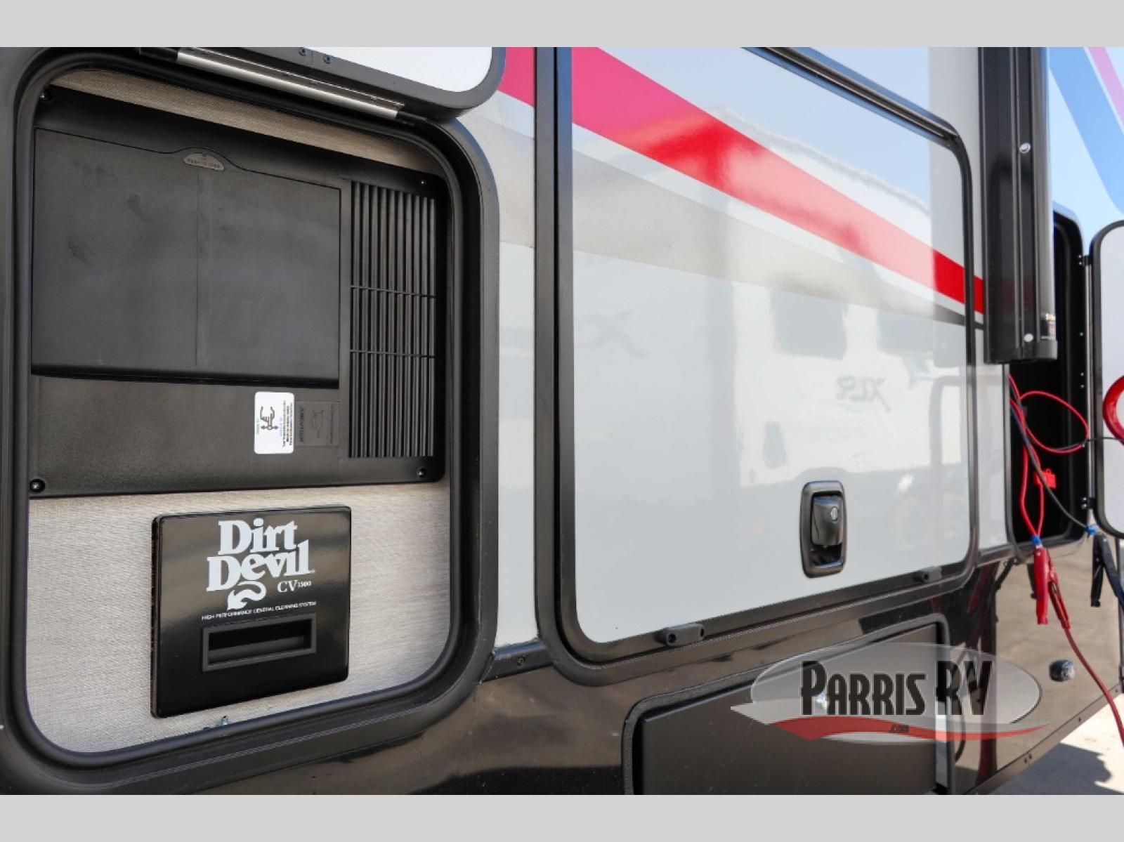 Stand out from the crowd with this Vortex toy hauler! You can enjoy a comfortable night of rest on your very own king-size bed in the front master suite. This space has a wardrobe slide for storing your sweaters, a nightstand to place your alarm clock on, and a countertop on the other side of the bed that you can place décor on. The kitchen is equipped with great tools, like the three-burner range that you can use to fry up some eggs and bacon, and you'll also be able to take a load off in the two lounge chairs.