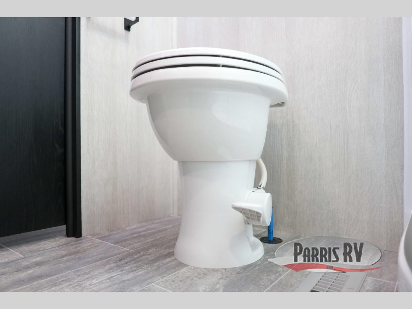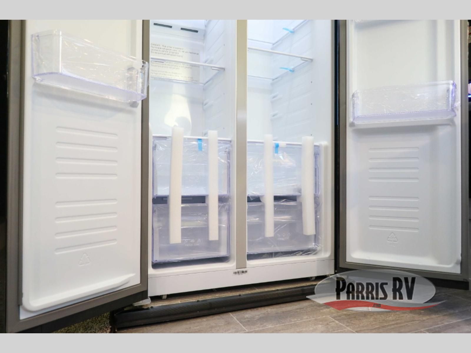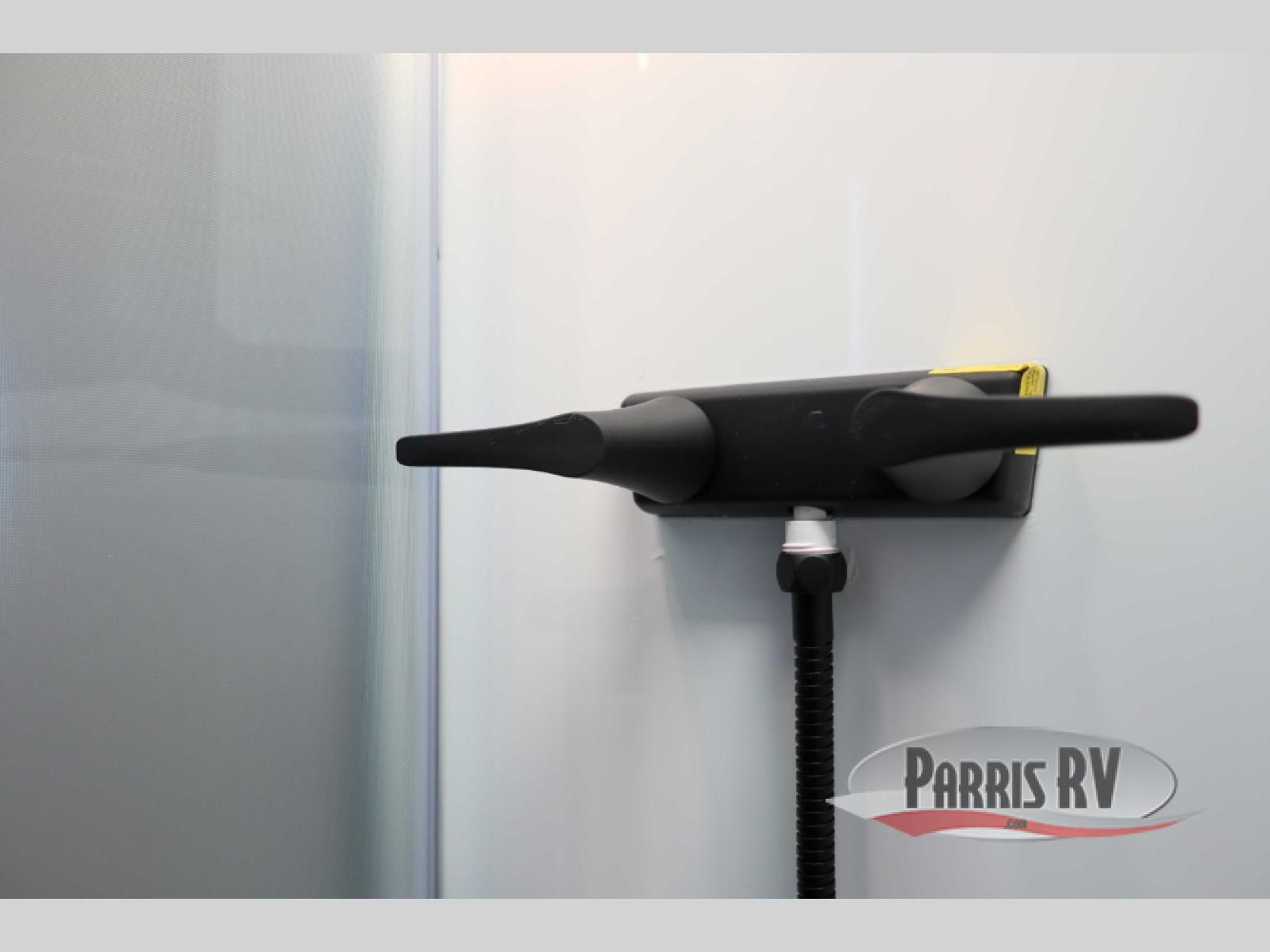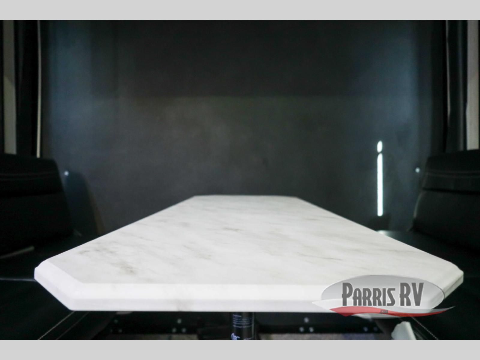 Stand out from the crowd with this Vortex toy hauler! You can enjoy a comfortable night of rest on your very own king-size bed in the front master suite. This space has a wardrobe slide for storing your sweaters, a nightstand to place your alarm clock on, and a countertop on the other side of the bed that you can place décor on. The kitchen is equipped with great tools, like the three-burner range that you can use to fry up some eggs and bacon, and you'll also be able to take a load off in the two lounge chairs.