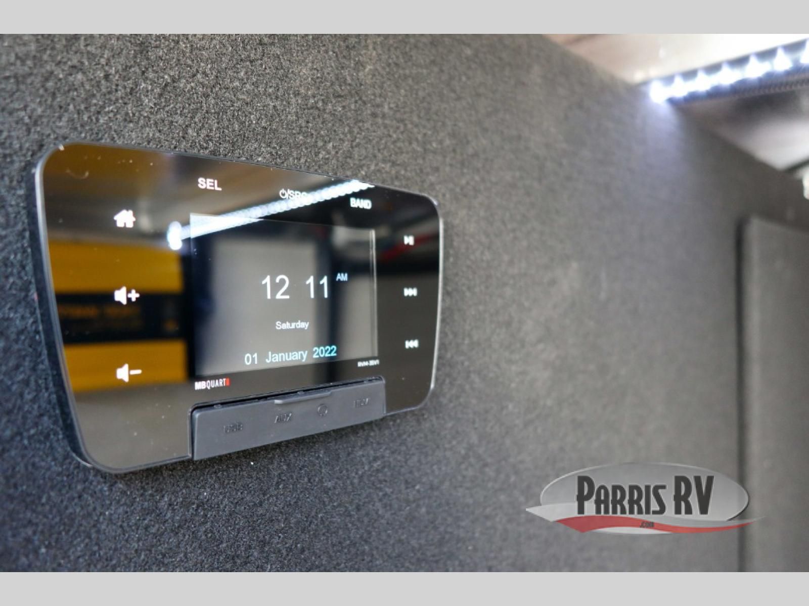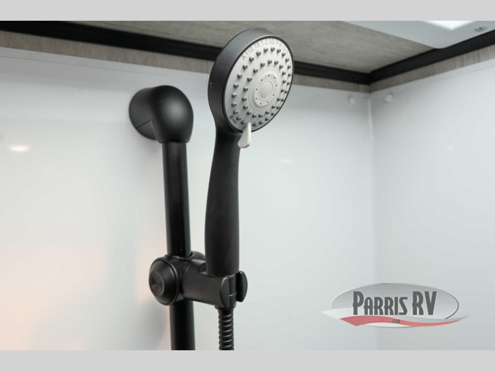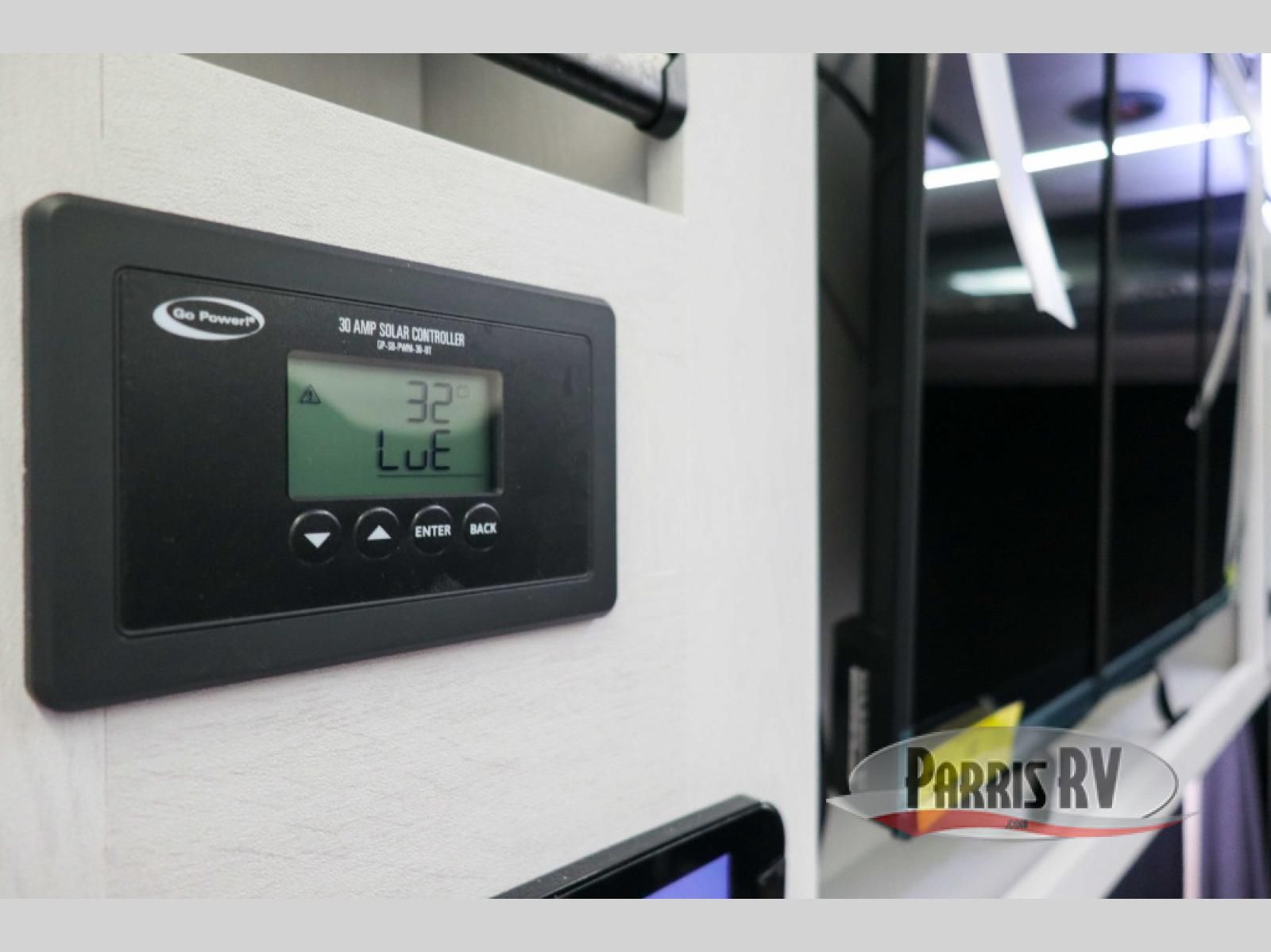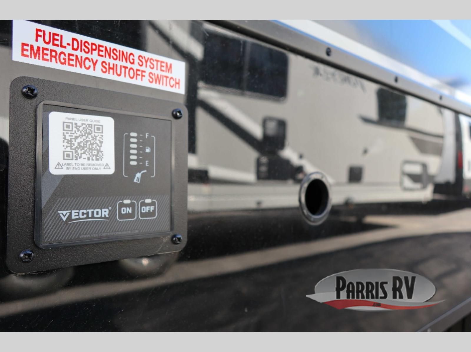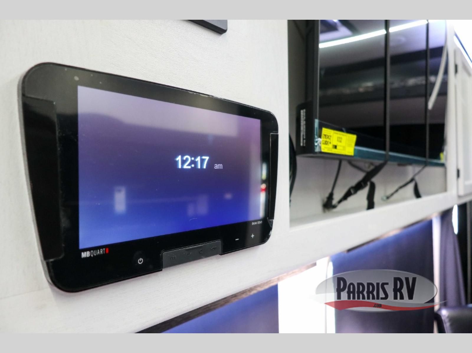 Stand out from the crowd with this Vortex toy hauler! You can enjoy a comfortable night of rest on your very own king-size bed in the front master suite. This space has a wardrobe slide for storing your sweaters, a nightstand to place your alarm clock on, and a countertop on the other side of the bed that you can place décor on. The kitchen is equipped with great tools, like the three-burner range that you can use to fry up some eggs and bacon, and you'll also be able to take a load off in the two lounge chairs.