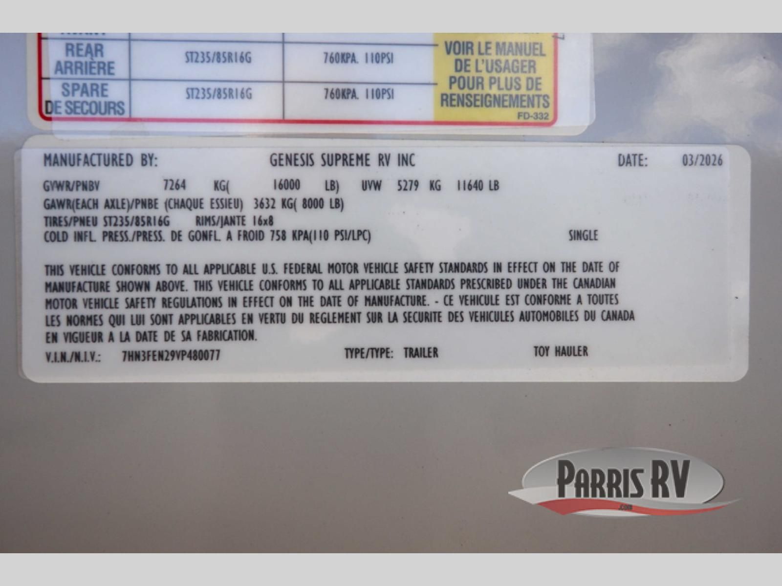 Genesis Supreme Vortex toy hauler 2814IKS highlights:
