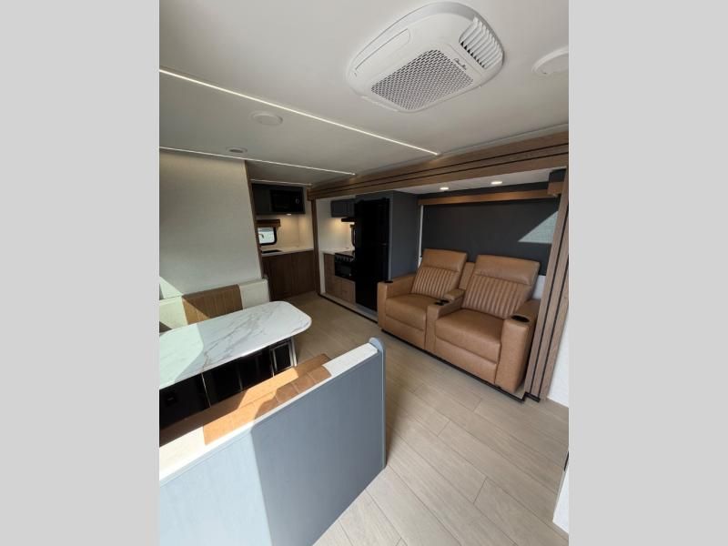 Slideout: Massive roadside slideout housing the theater seats for maximum floor space