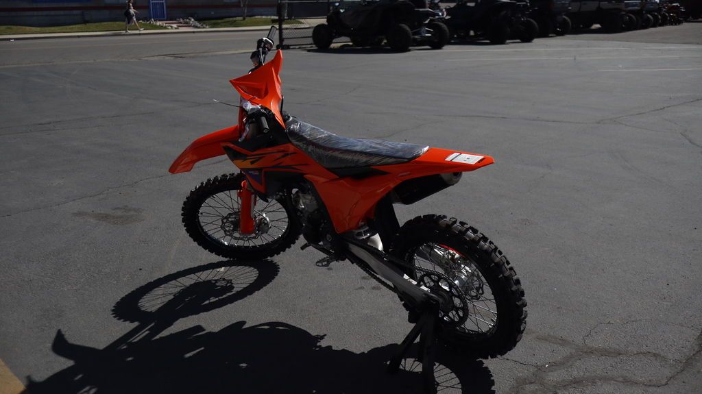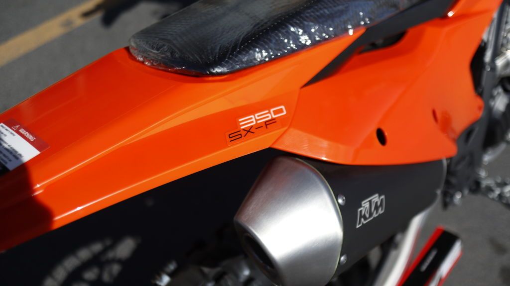 2026 KTM 350 SX-F MIDDLE-GROUND MASTERCLASS With over a decade of racing - and winning - under its seat, the KTM 350 SX-F has long shed its underdog label and proven itself a worthy adversary. Delivering usable power throughout the rev range, unwavering stability at speed, and true championship-winning credentials, the KTM 350 SX-F is once again READY TO RACE. Features may include: Before The Gate Easy Suspension Adjustment As always, the suspension boasts an easy tool-free setup at both ends, ensuring you chase down the podium in total control. On the rear, a hand-adjustable dual compression option allows riders to adjust high- and low-speed settings in a matter of seconds. The forks on the front end are also easily modified thanks to hand-adjustable clickers on the bottom of the fork shoe and top cap. Start Strong More Usable Power Perfectly filling the gap with the KTM 250 SX-F and the powerhouse KTM 450 SX-F, the lightweight KTM 350 SX-F powerplant weighs in at only 60.6lb (27.5 kg). This makes it the ultimate weapon and the easiest choice for power to weight options. Calm Under Fire Absolute Control Get ready for a full-on berm assault. The KTM SX and SX-F machines received major frame updates directly from KTM Factory Racing efforts. For starters, the area around the rear shock mount is streamlined, with engine mounts and cut-outs for improved chassis flex. The front area of the frame has an optimum wall thickness with renewed engine mounts. Hit The Big Stuff WP XACT Fork Let's get the technical parts out of the way first; the 48 mm WP XACT AER forks fitted to the KTM SX and SX-F line-up features a capsulated air spring and pressurized oil chamber for progressive and consistent damping, while oil and air bypasses reduce pressure peaks. In combination with the mid-valve damping system, all this provides exceptional feedback and rider comfort. The fork also has settings which not only compliment the frame and rear linkage, but ensures stellar performance at all levels. Speaking of settings, these are easily adjusted via a single air pressure pre-load valve, as well as easy-access click adjusters for compression and rebound. Additionally, the WP air pump needed to adjust the fork's air pressure is provided as standard in the buy-pack. Maintaining Momentum Ground clearance The shock absorber geometry on the KTM SX and SX-F machines gives decent ground clearance for the linkage, with the topology-optimized die-cast footpegs being less susceptible to hooking on deep ruts, and take-offs when scrubbing.