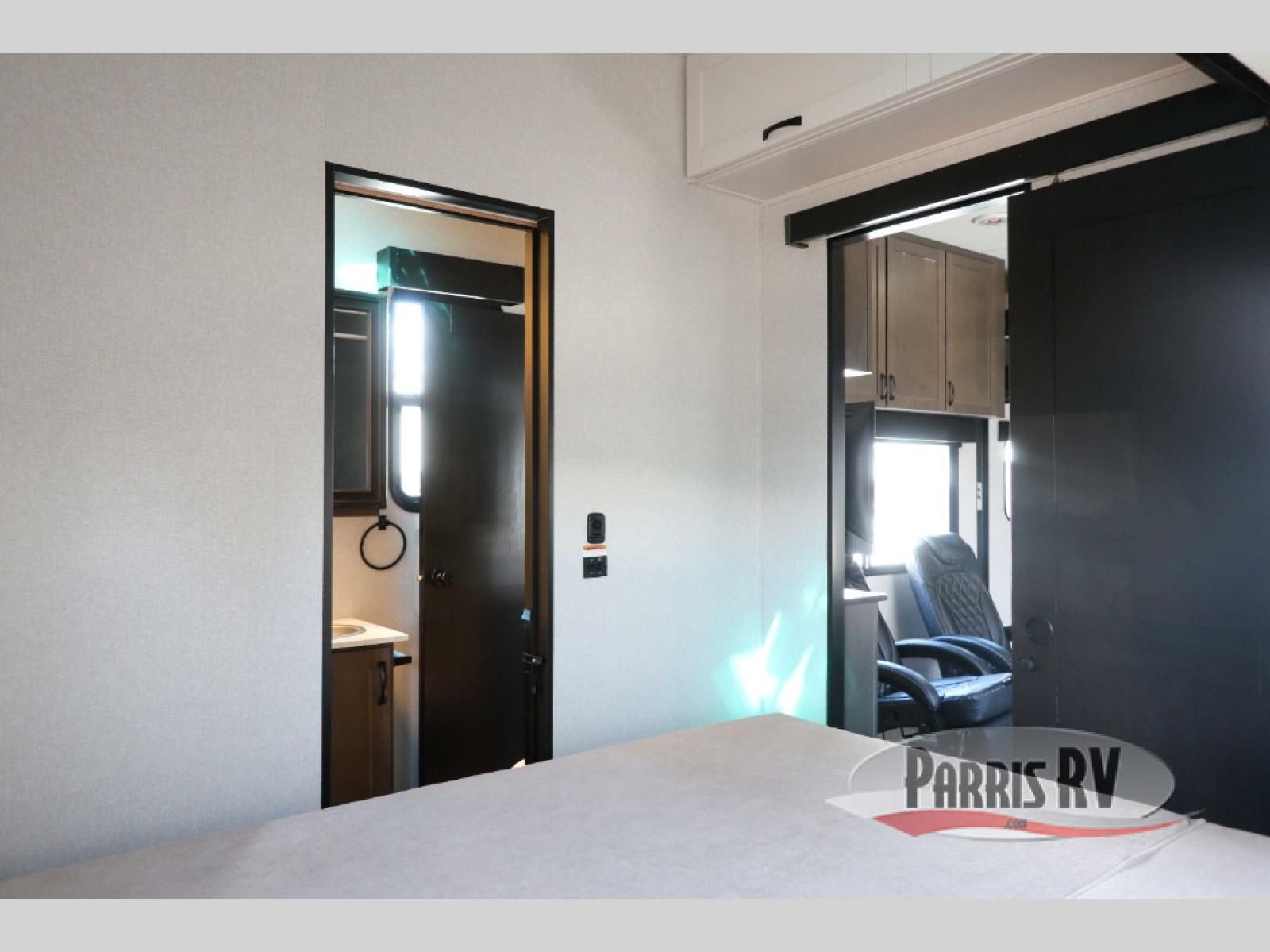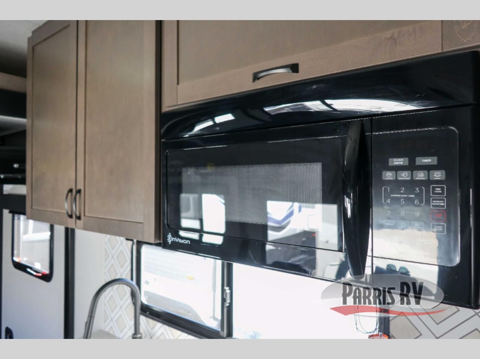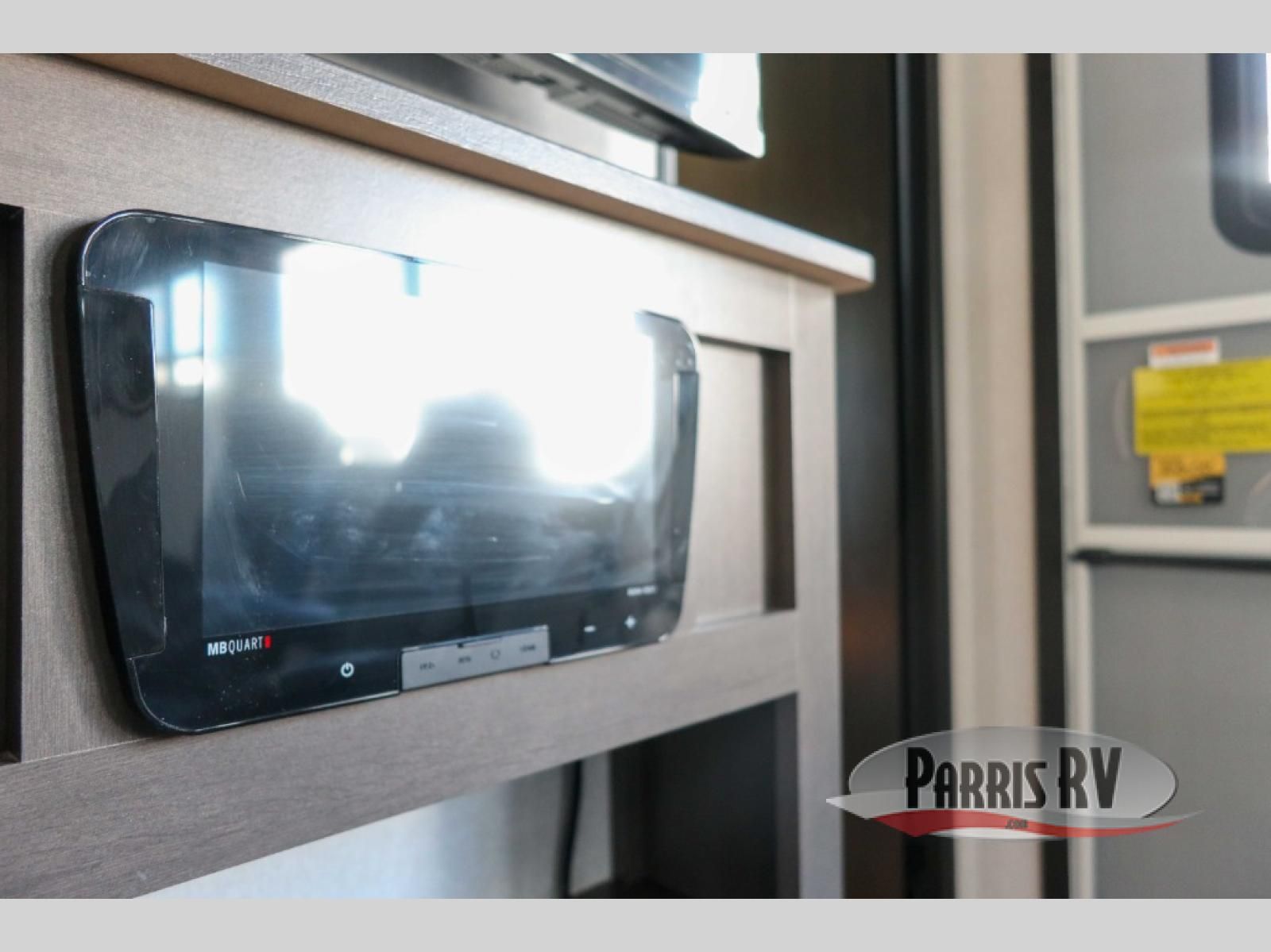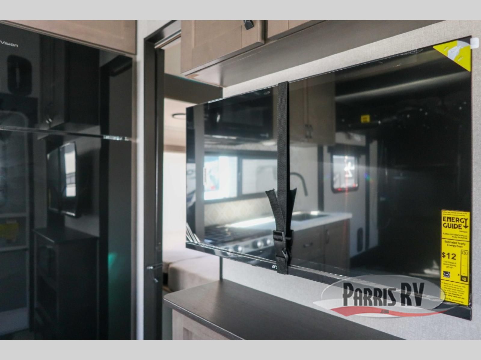 This toy hauler features 14' total garage space when you utilize the space all the way up to the master bedroom. The front is also shared with the dual entry bath for added convenience, and you'll enjoy a king bed in the bedroom for added comfort. A three-burner cooktop and space-saver microwave will let you make meals each day, and a 12V refrigerator will keep your cold items fresh. The Euro chairs and dual sofas provide comfy seating spaces, and the drop-down electric queen bed gives your guests a place to sleep.