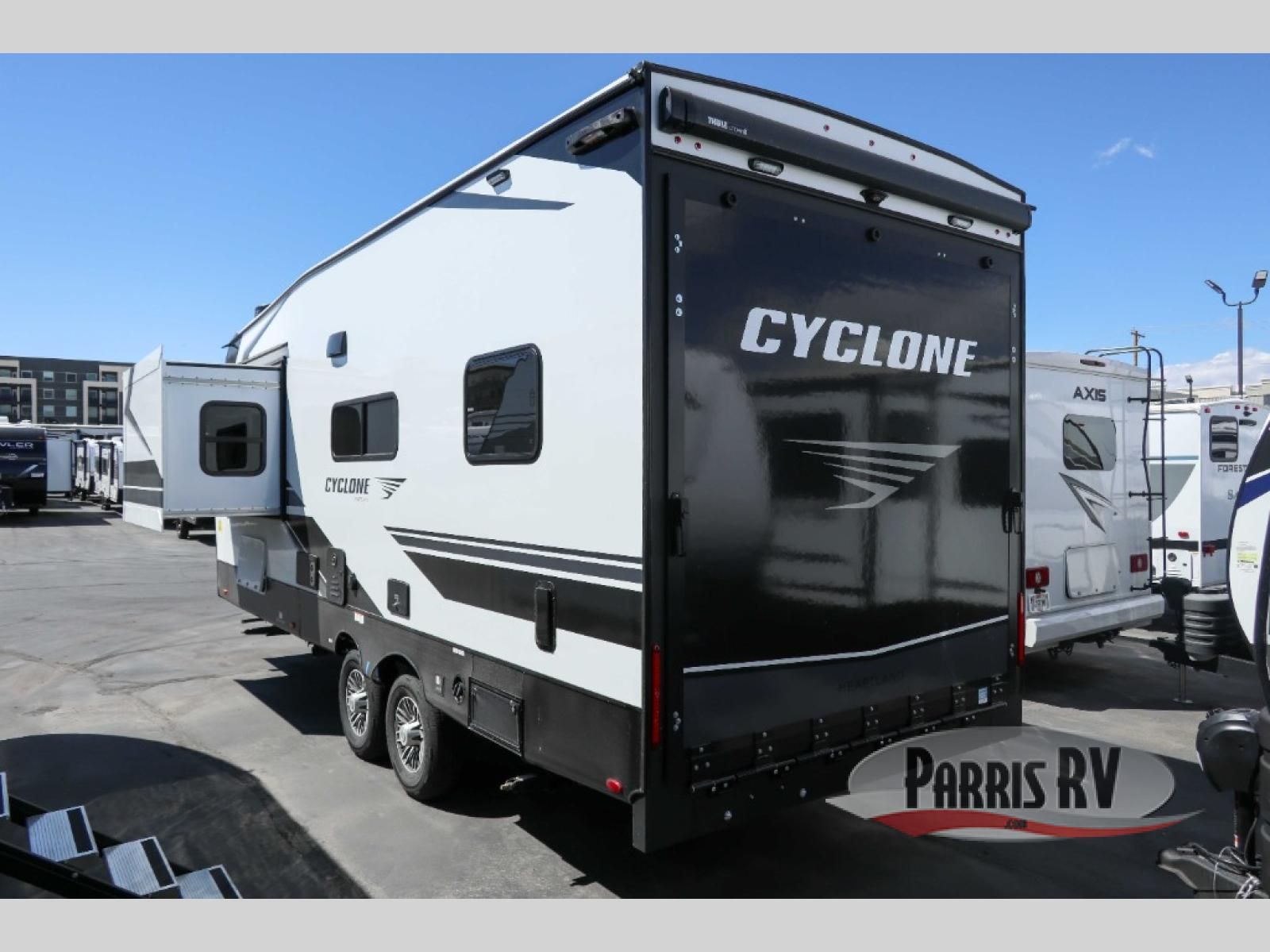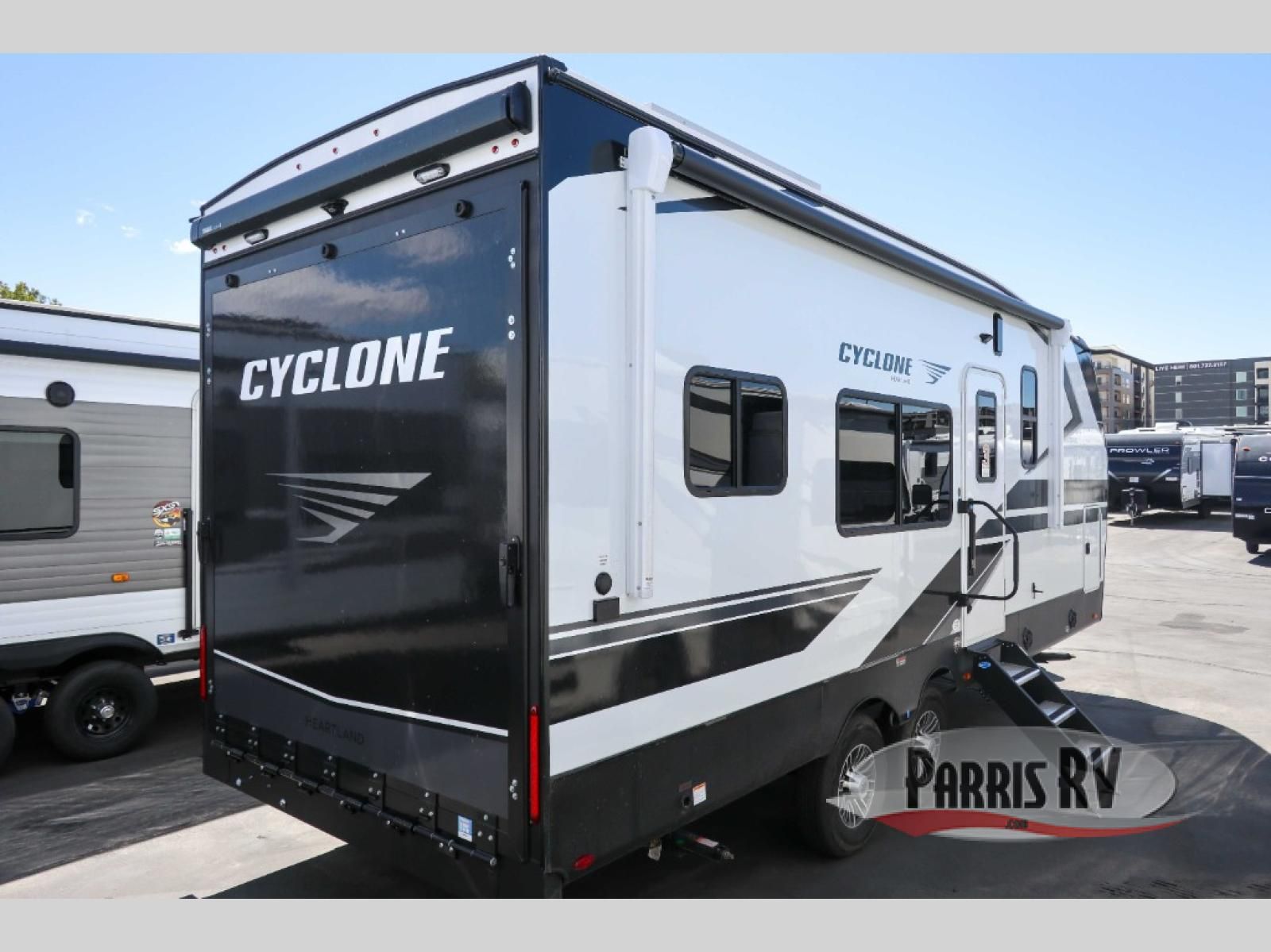 Satisfy your wanderlust with a Heartland Cyclone travel trailer toy hauler! You won't have to sacrifice any luxury either, with indulgent features like the ducted, fully enclosed, and heated underbelly that provides added protection and warmth. Inside, the LED interior lighting throughout ensures that every corner of your RV is bright and inviting, and the bathroom skylight brings in natural light and fresh air, creating a welcoming and refreshing space. Plus, the central command center with built-in tank monitoring keeps you informed and in control, making it easy to manage your resources. Also, the Endurance Handling Package includes diverse features such as Dexter axles with ABS and tow assist with sway mitigation, and the Keyed-Alike lock system ensures that all your locks are keyed the same, providing added security and convenience. Come find the perfect model for you today!